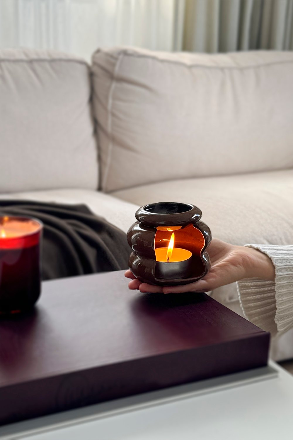 Bee buhurdanlıkların açık kahverengi, terakota ve gri renklerinin yüzeylerinde çatlak sır görünümü ürüne benzersiz bir şıklık katar. Antrasit ve siyah renklerinde bulunan doğal yüzey sofistike bir his uyandırır. Ürünün, alt kısmı tea light mum konulan, üst kısmı ise aromaterapi yağlarıyla veya kokulu tablet mumlarıyla karıştırılan suyun bulunduğu bir kaseden oluşur. Meditasyon ve yoga seanslarınızı, modern buhurdanlık ürünü eşliğinde huzur veren bir atmosfere dönüştürebilirsiniz.