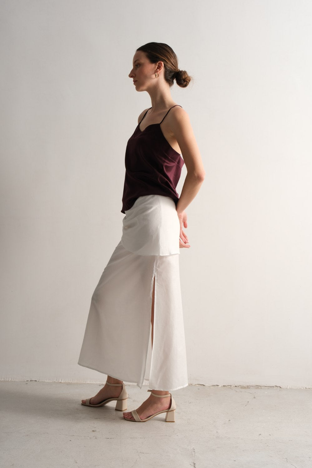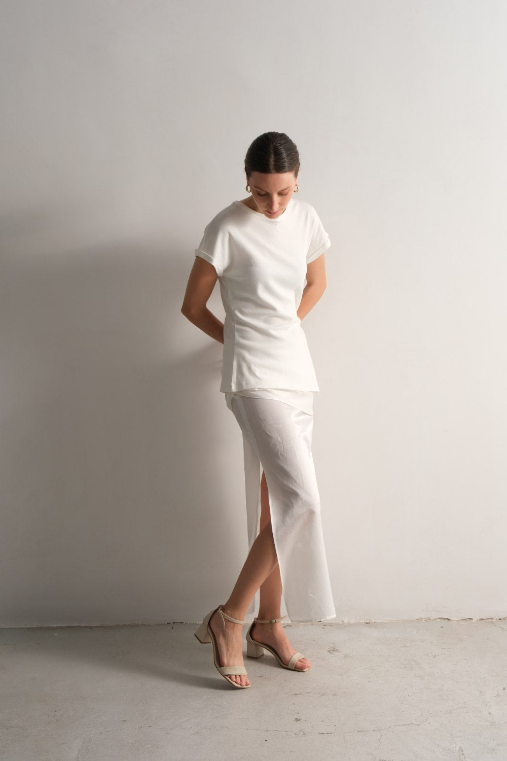 Derin yan yırtmaçlar ile zarif hareket özgürlüğü sağlar.
