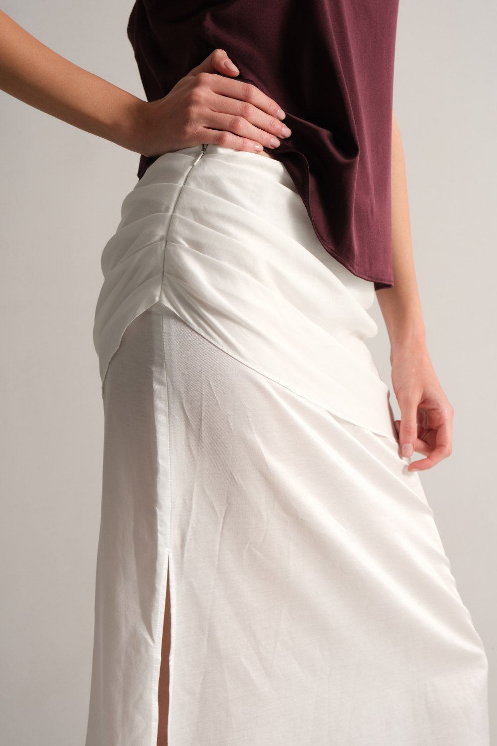 Gizli yan fermuar ile temiz bir kapanışı vardır.