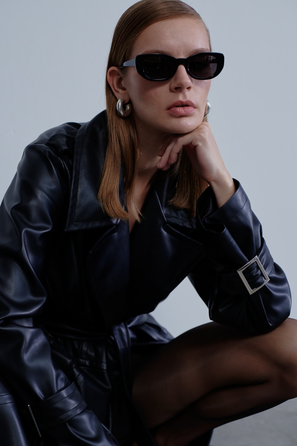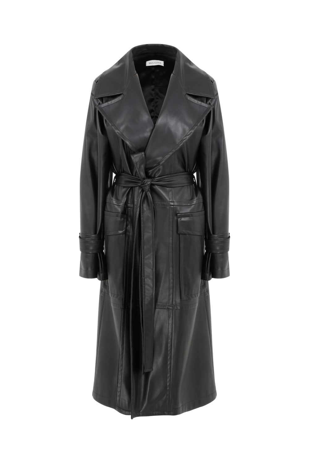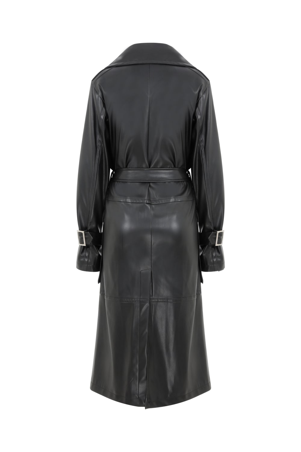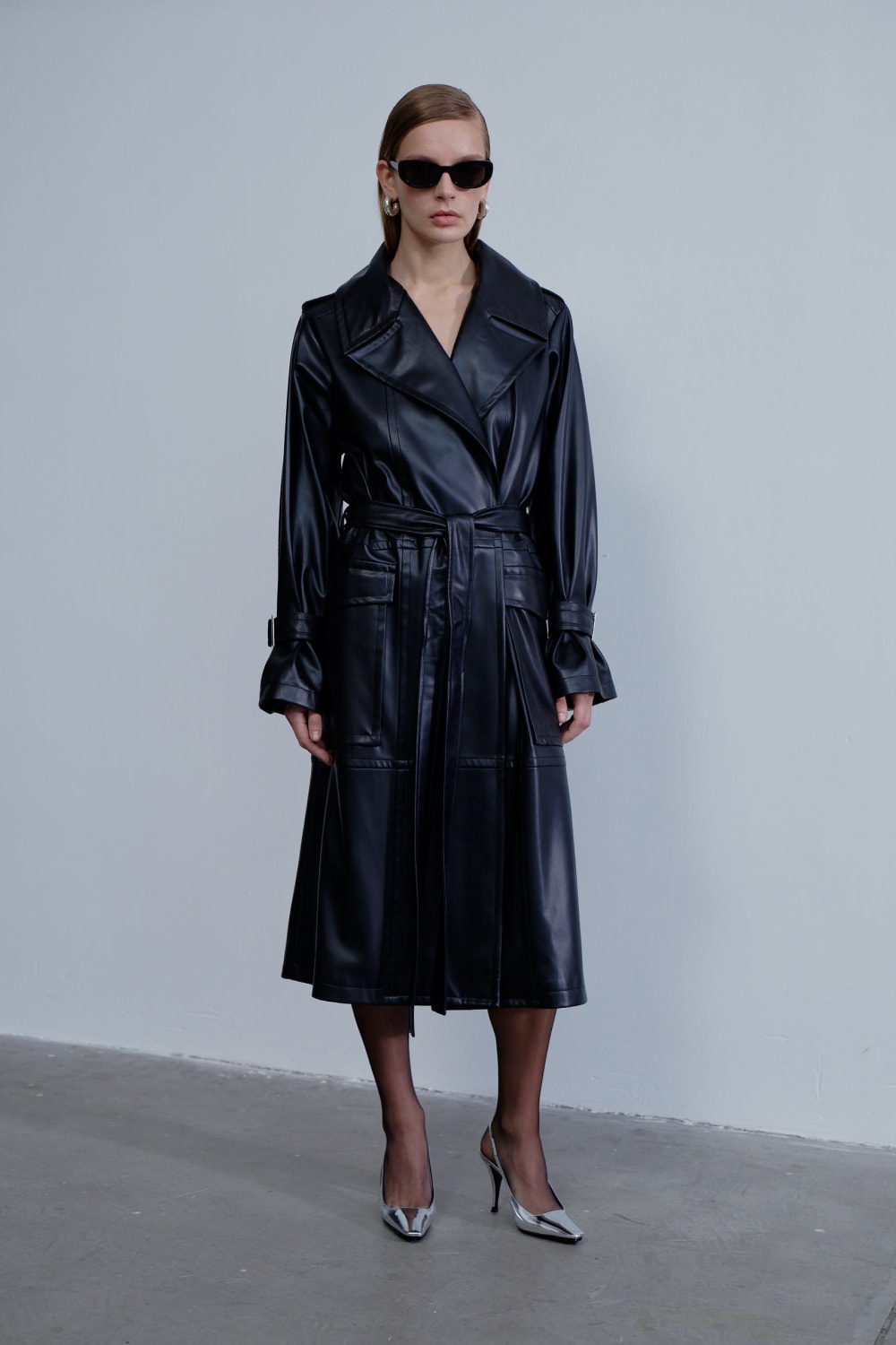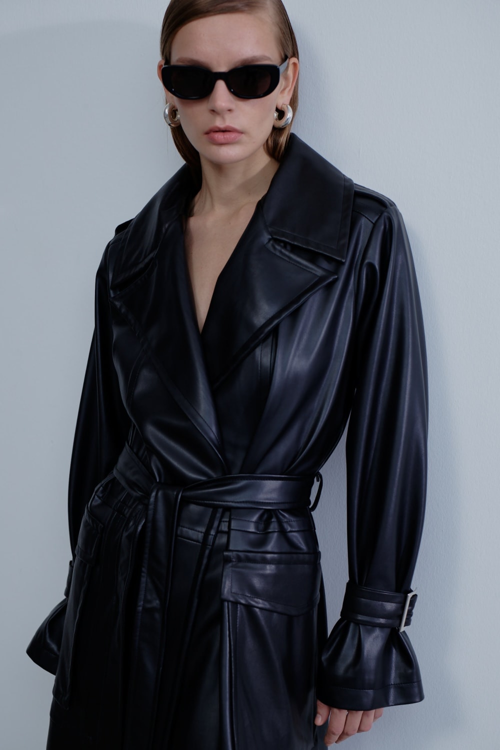 Nazlı Ceren's trenchcoat is crafted from a vegan leather. It's designed with a relaxed shape that's enhanced by wide sleeves.Cecile trenchcoat embodies the label’s sophisticated vision.