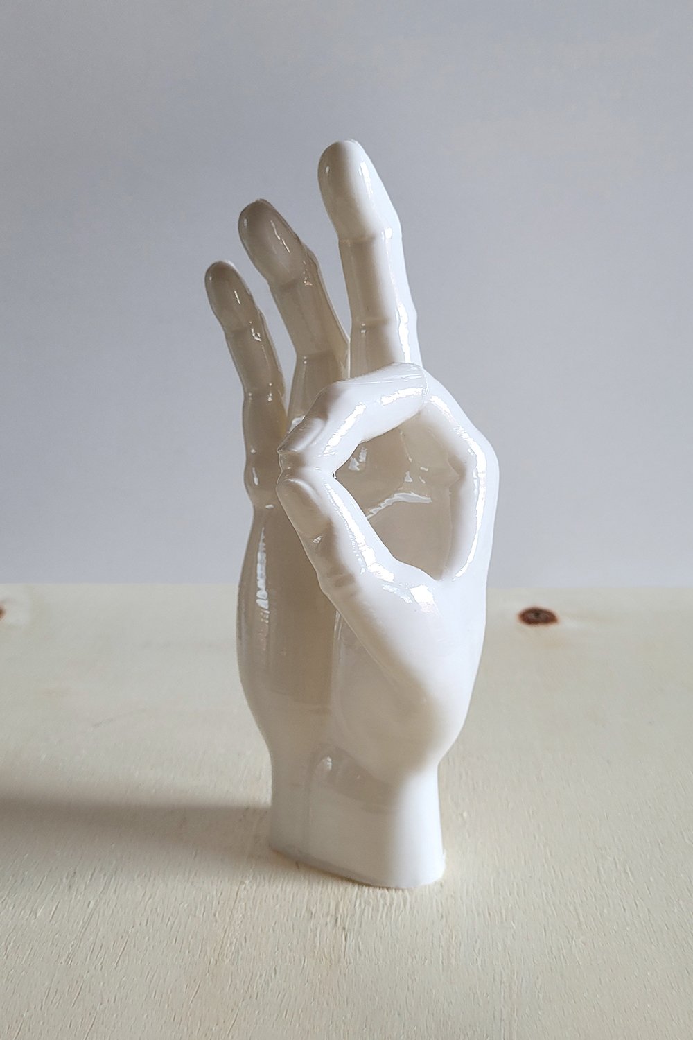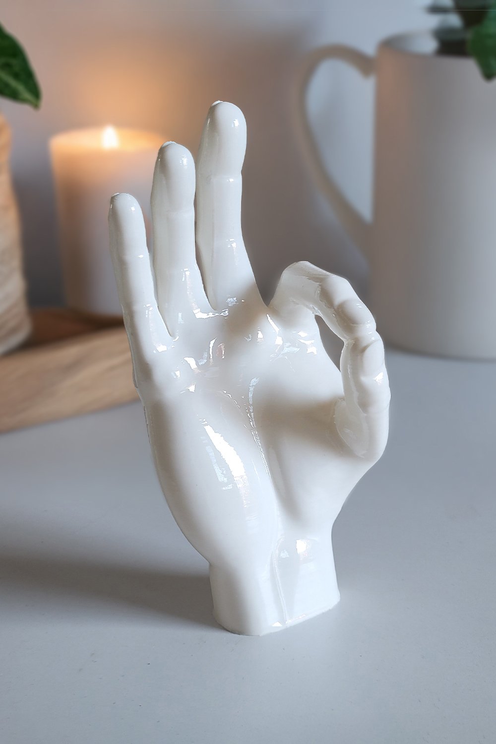Bu özel biopolimerden üretilmiş Okay el figürü, pozitif enerji ve onayın sembolü olarak evinize anlam katıyor. 20 cm yüksekliğindeki bu heykel, çevre dostu malzemesi ve modern tasarımıyla, dekorasyonunda farklılık ve pozitif bir dokunuş arayanlar için ideal bir parça. Hem şık hem de anlam dolu bu aksesuarla evinizi süsleyin