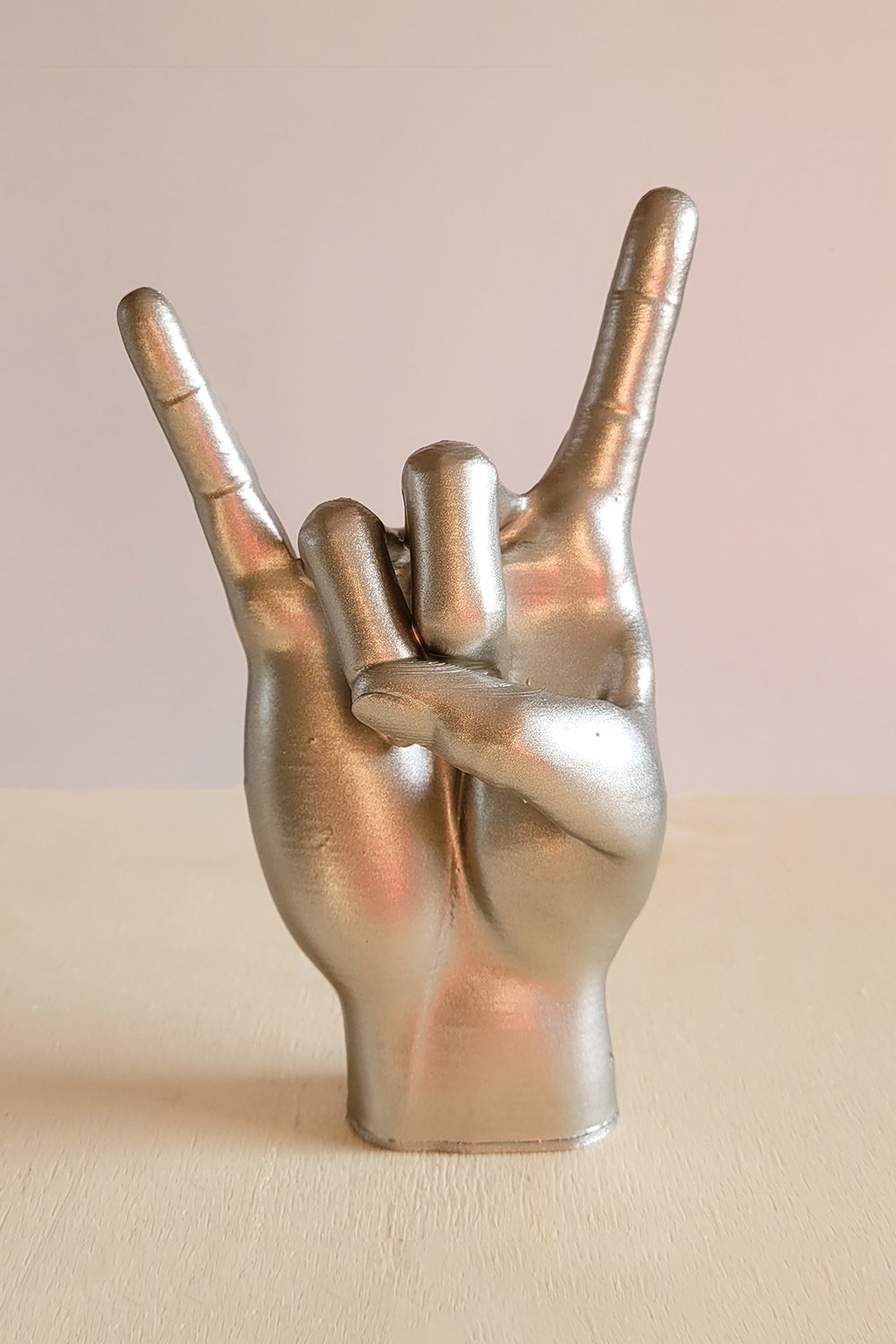 Bu benzersiz el figürü, rock işareti yapan ikonik tasarımıyla dikkat çekiyor. Biopolimer malzemeden üretilmiş olan bu 20 cm yüksekliğindeki heykel, müzik tutkunlarının ve farklı dekoratif unsurlar arayanların vazgeçilmezi olacak. Hem çevre dostu hem de eğlenceli bir dekoratif parça olarak, evinizde fark yaratın.