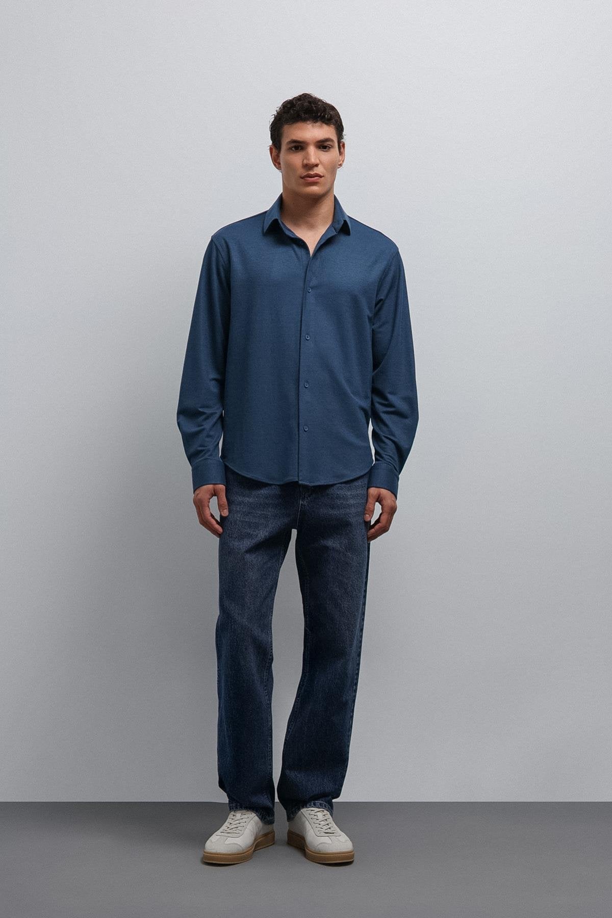 İndigo hakimiyetinde özgün duruşuyla öne çıkan Antioch Uzun Kol Gömlekkarakteristik silüet yansıtan lüks tasarımıyla göz dolduruyor.Uzun Kol tasarım Düğme kapamasıyla tamamlanıyor. Lüks dokusu ve kalıbıyla son derece konforlu hissetmenizi sağlayacak tasarım günlük şehir stillerinizde ve ofis takımlamalarınızda kullanıma uyum sağlıyor. İsteğinize göre çeşitli pantolonlarınızla beraber kullanabileceğiniz tasarım şık ve iddialı görünüm kazanmanızı sağlıyor ve stilinizi bir adım öne taşıyor.
