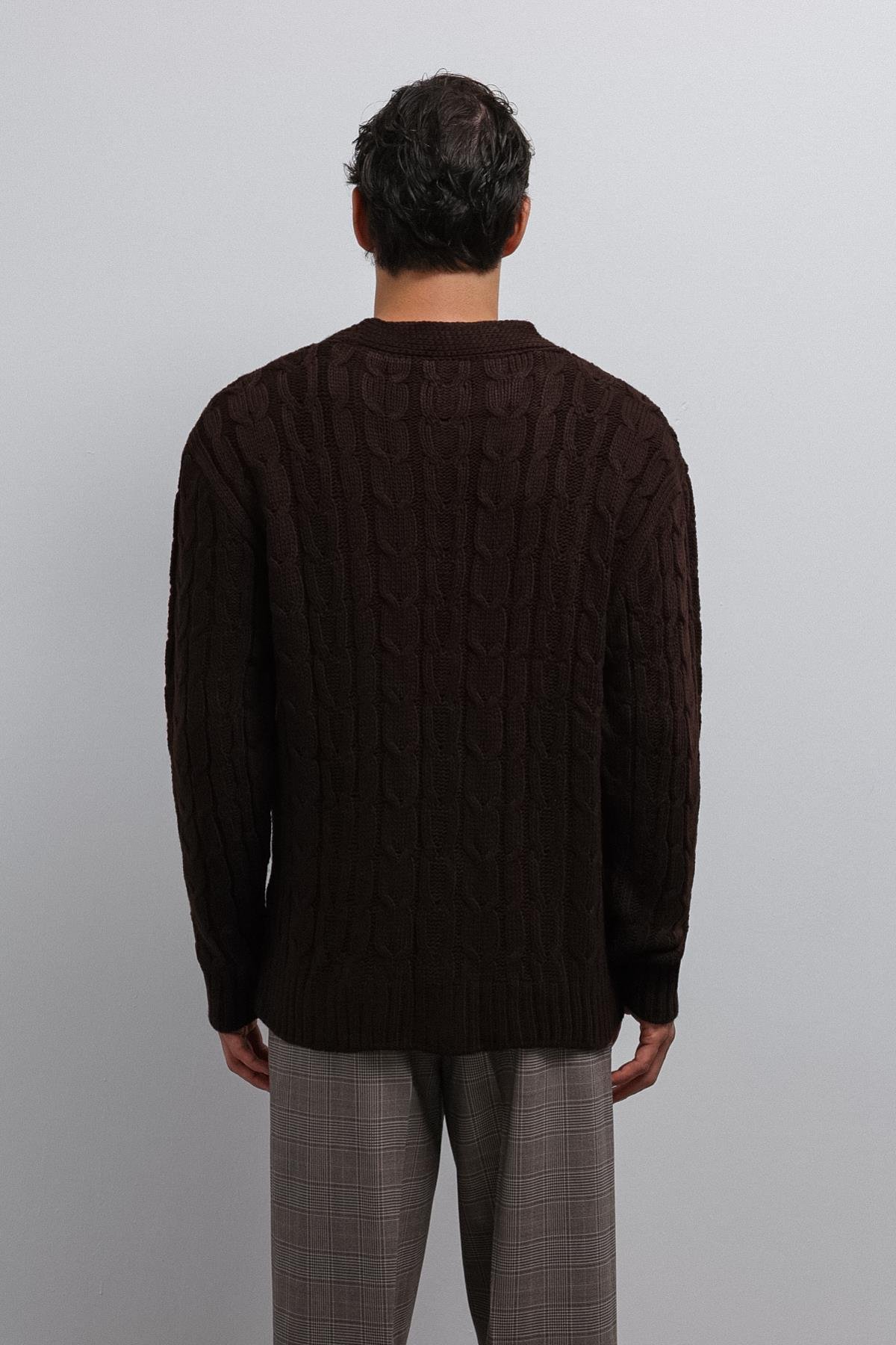 Kahve Saç Örgülü Dokulu Erkek Hırka