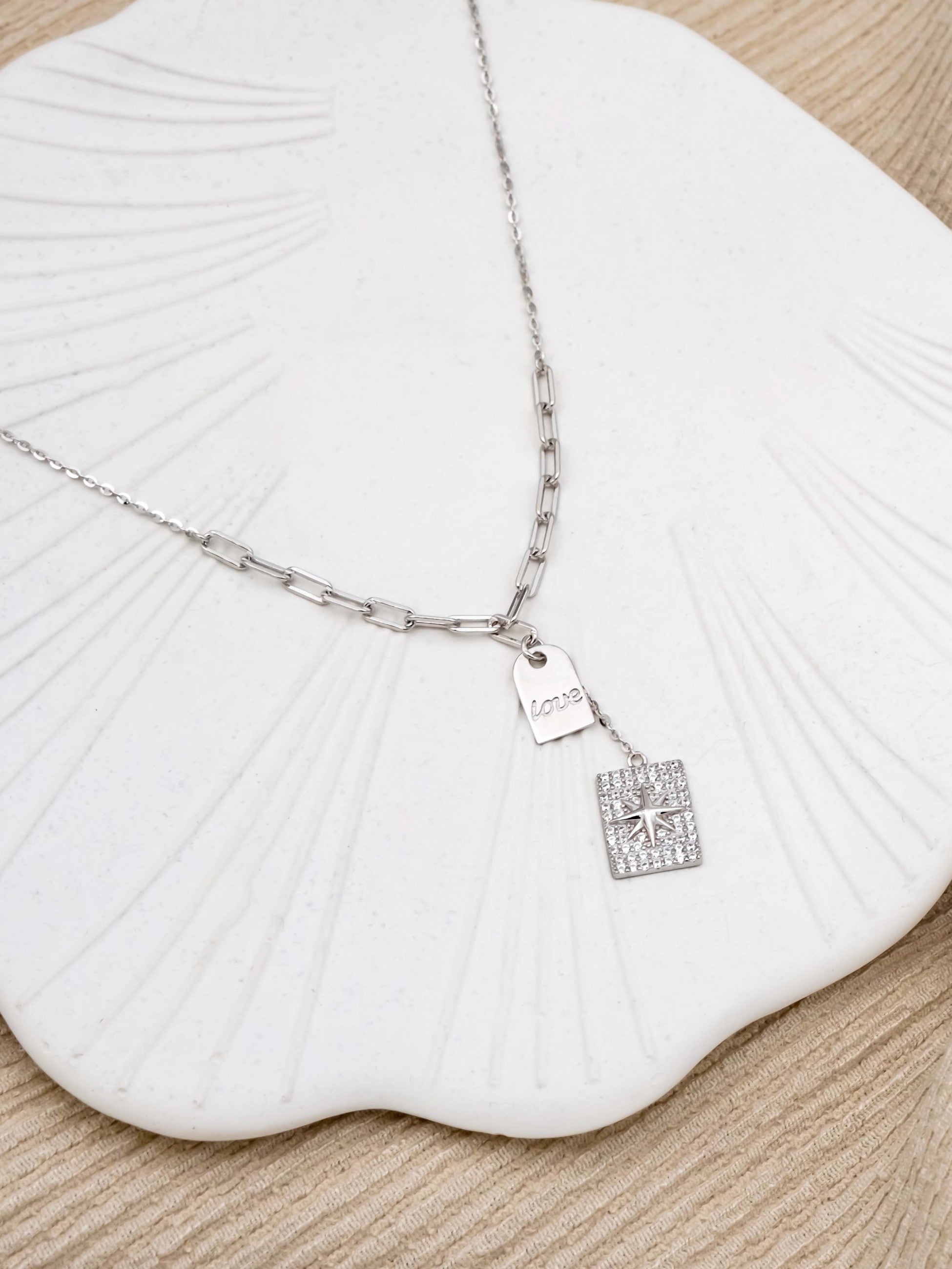 Love 925 Ayar Gümüş Zirkon Taşlı Kare Love Kolye