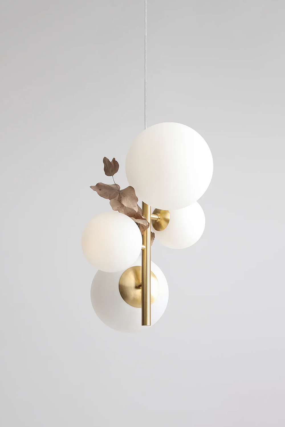 Floral Koleksiyonu, modern tasarımıyla son dönemin trendi haline gelen glop camları mükemmel bir uyumla bir araya getirerek yaşam alanlarınıza estetik bir dokunuş katıyor. Bu sarkıt avize, hoş bir ışık sağlar ve unutulmaz izlenim bırakır. Dört ışık kaynağına (iki farklı boyutta mat beyaz glop camlar: 15 cm ve 20 cm) sahip olması sayesinde mekanı etkili bir şekilde aydınlatır. Küre lambalar, kol etrafına bir çiçek demeti gibi sarılmıştır ve ışık kapalı olduğunda dahi olağanüstü, dikkat çekici bir etki sağlar. Ürün 2 milimetre kalınlığında metal ve üfleme cam gibi yüksek kaliteli malzemelerden, her ayrıntıya özenle dikkat edilerek yapılmıştır. Pirinç, siyah ve beyaz renk seçimleriyle sizlere sunulan Floral sarkıt, sade formuyla, modern ve minimalist iç tasarım sevenler için ideal bir seçimdir. Ürün, kablo yüksekliği ayarlanabilir asansörlü olarak sizlere geliyor. Yüksek kaliteli işçiliğe ve modern tasarıma değer verenler için mükemmel bir seçimdir.