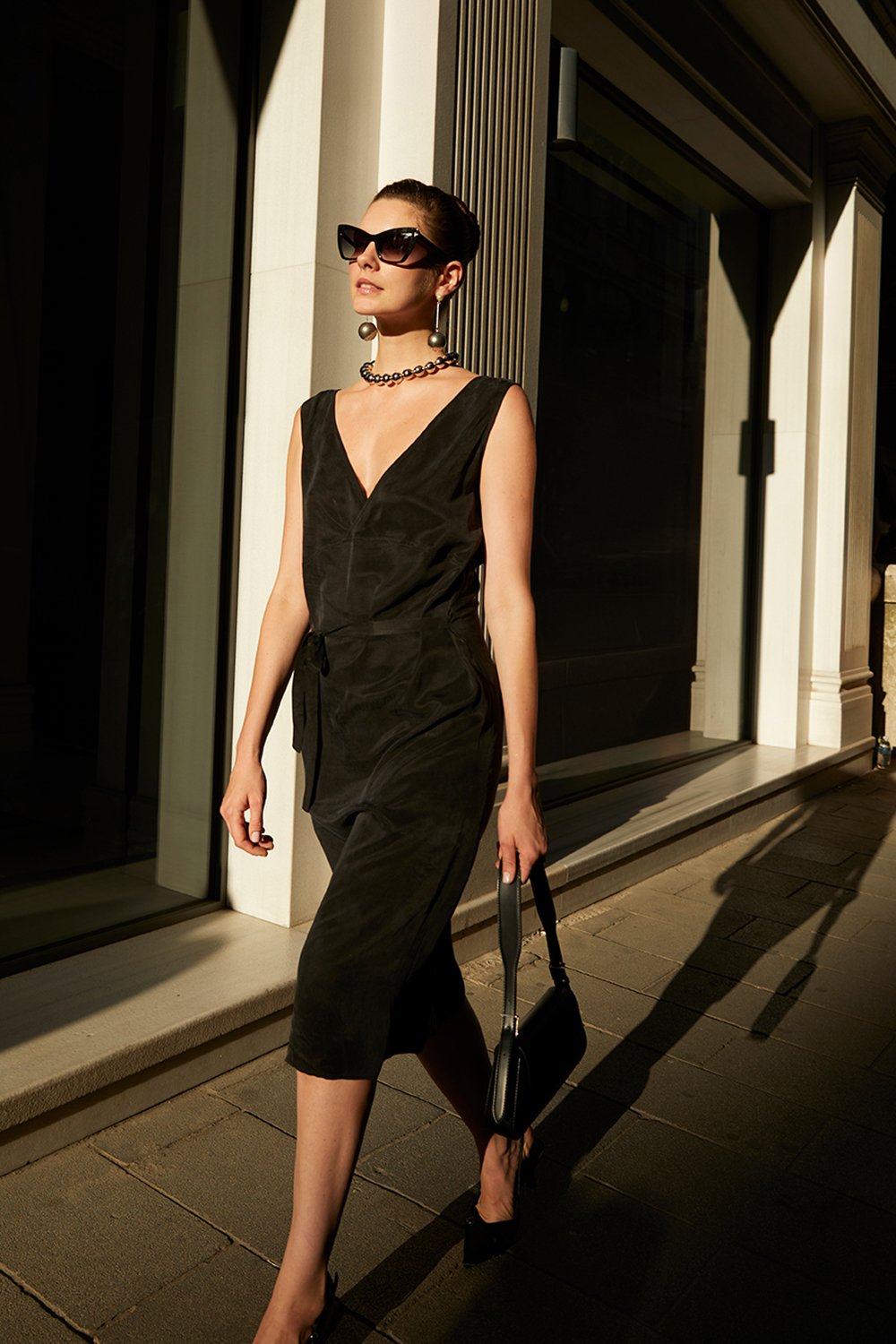 Lüks zarafeti teninizde hissedin. Lily V Yaka Elbise, yumuşak ipeksi dokusu ile giydiğiniz andan itibaren size ve cildinize hak ettiğiniz değeri verecek Vegan Cupro kumaştan dikilmiştir. Hassas ciltlere karşı nazik olmasının yanında çok gözenekli yapısı ile cildinize nefes alması için de olanak sağlar. Lily V Yaka Elbiseyi her giydiğinizde ipek zarafetini, Vegan Cupro kumaş lüksünü ve Towdoo şıklığını üzerinizde hissedecek ve yansıtacaksınız.
