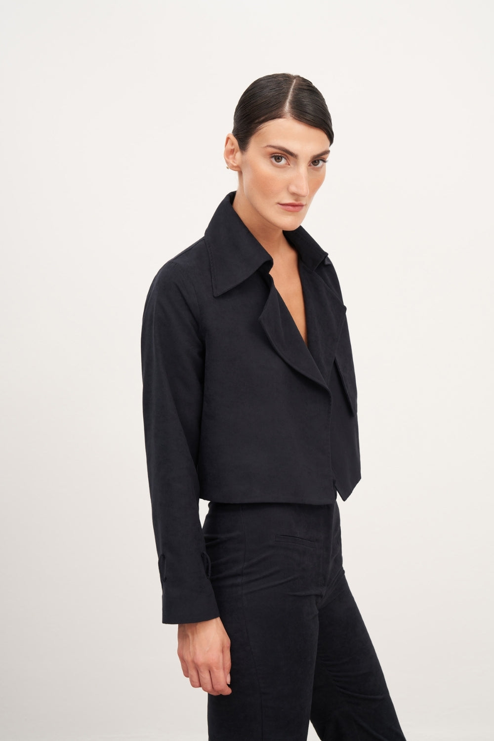 Lacivert Süet Kemerli Kısa Ceket