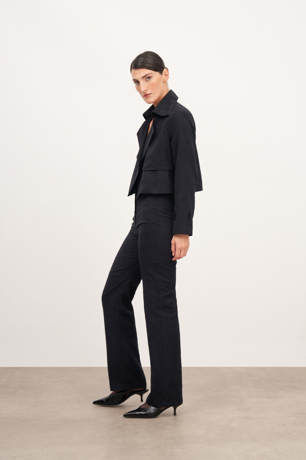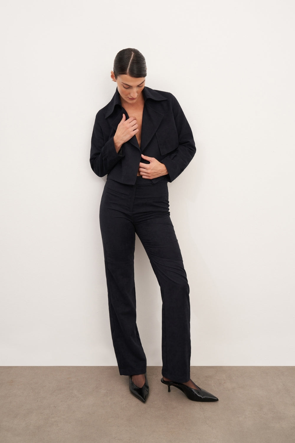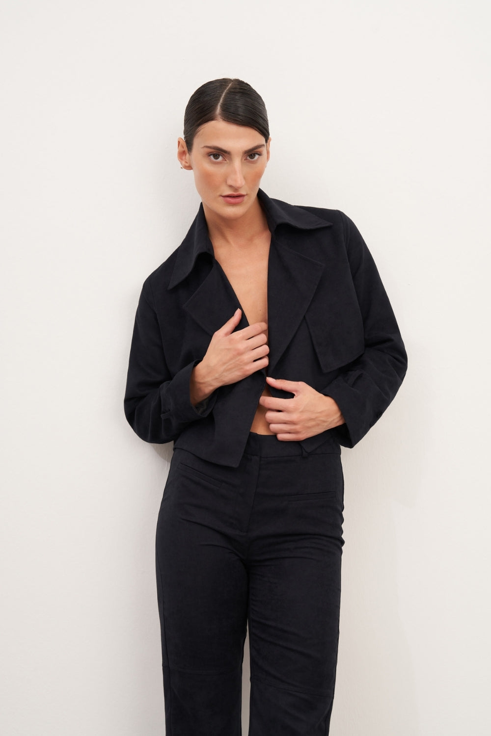 WINGCOTT Lacivert Süet Kemerli Kısa Ceket