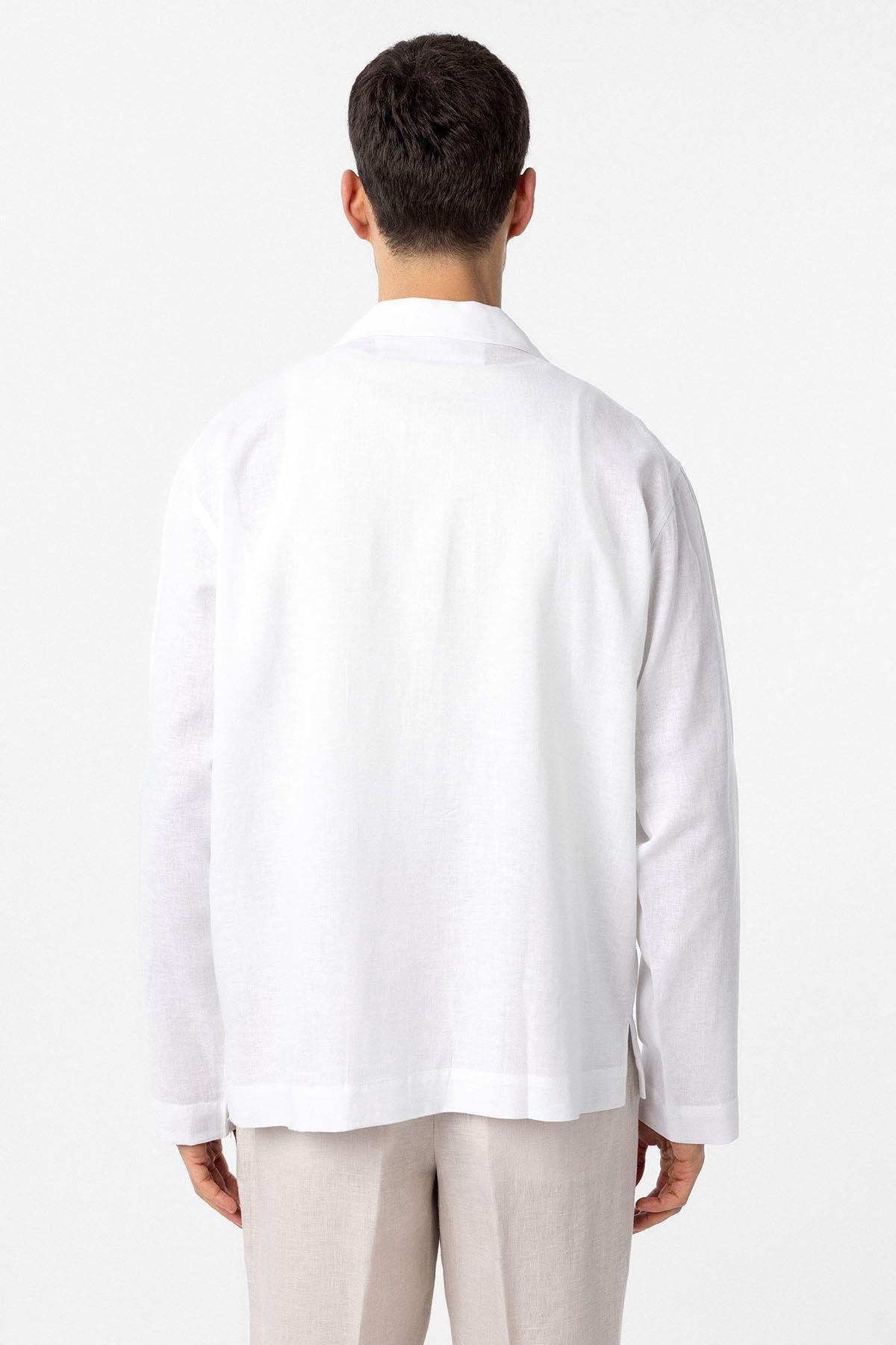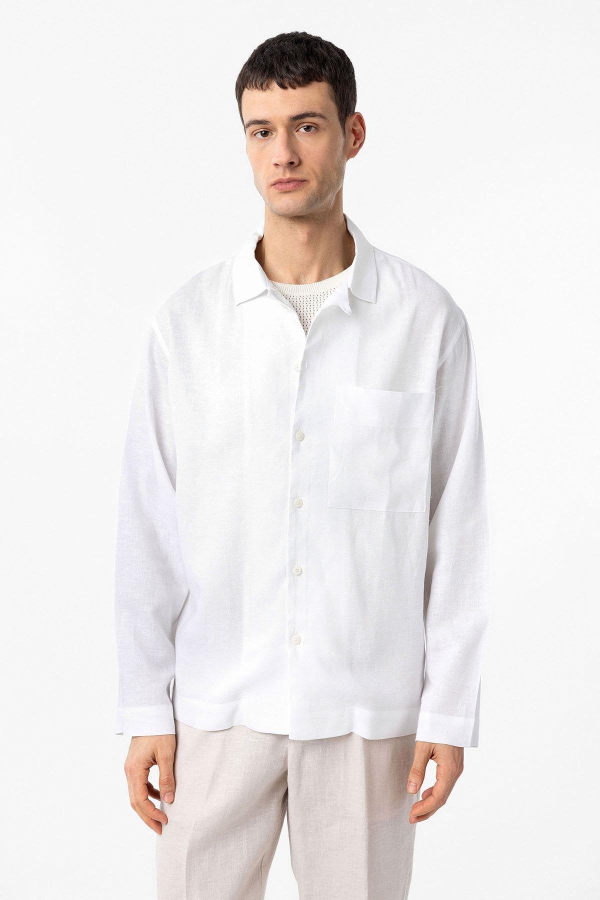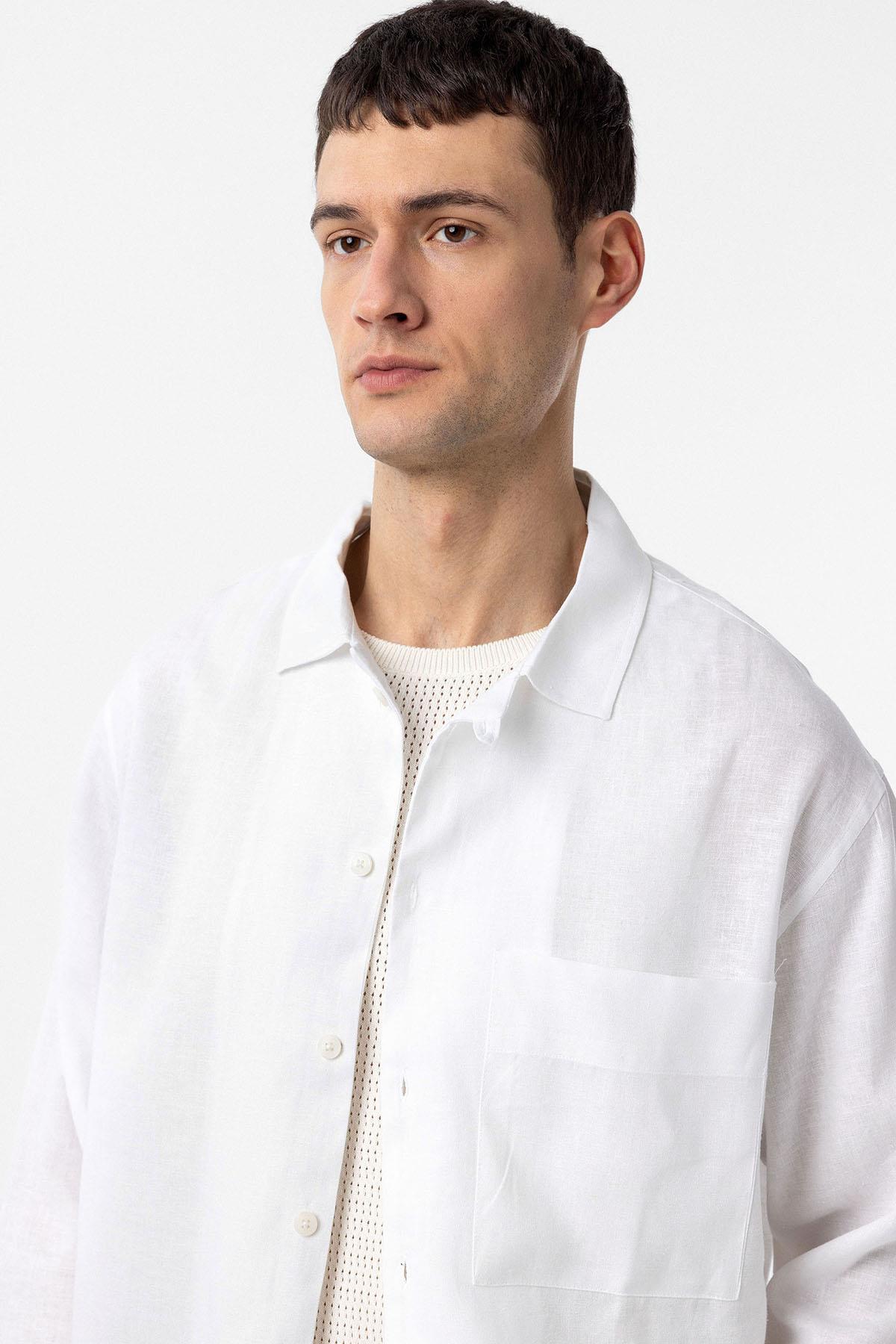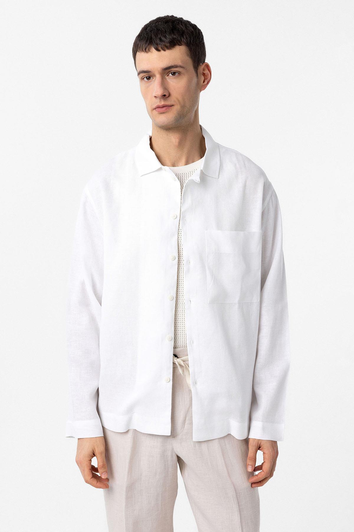 Beyaz Keten Karışımlı Relax Fit Erkek Gömlek