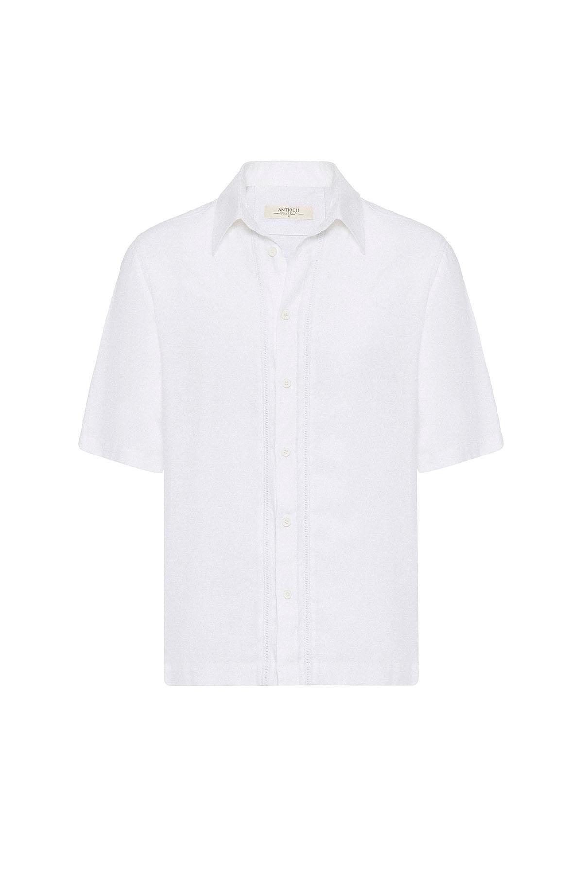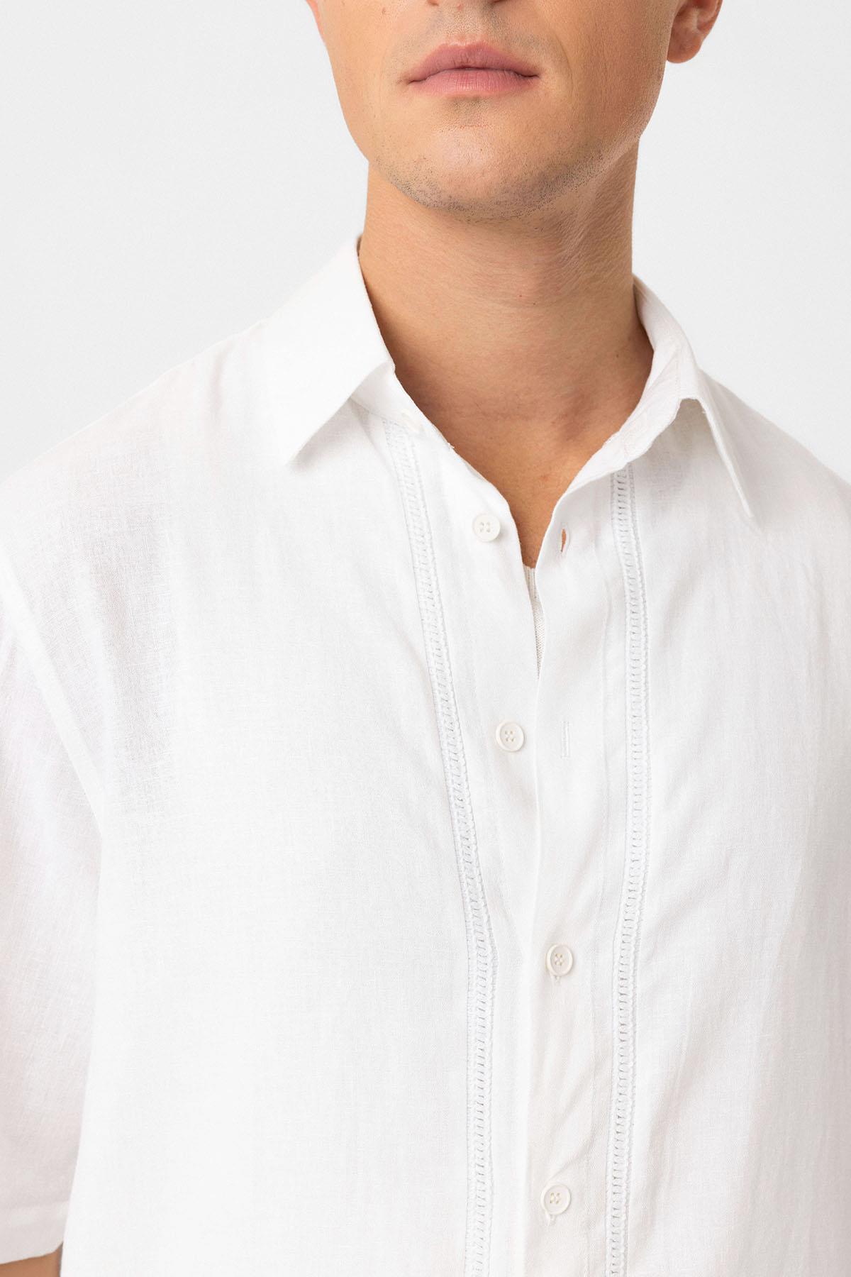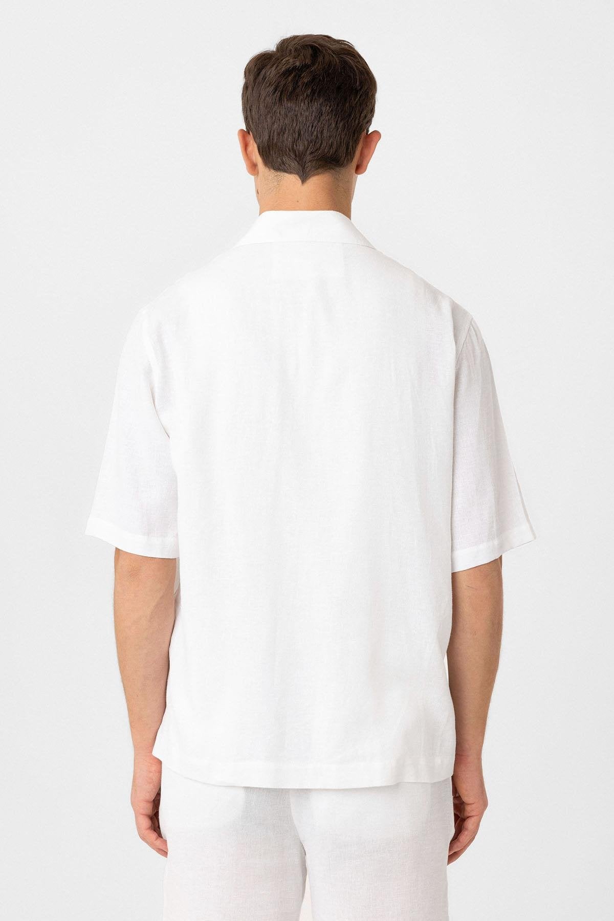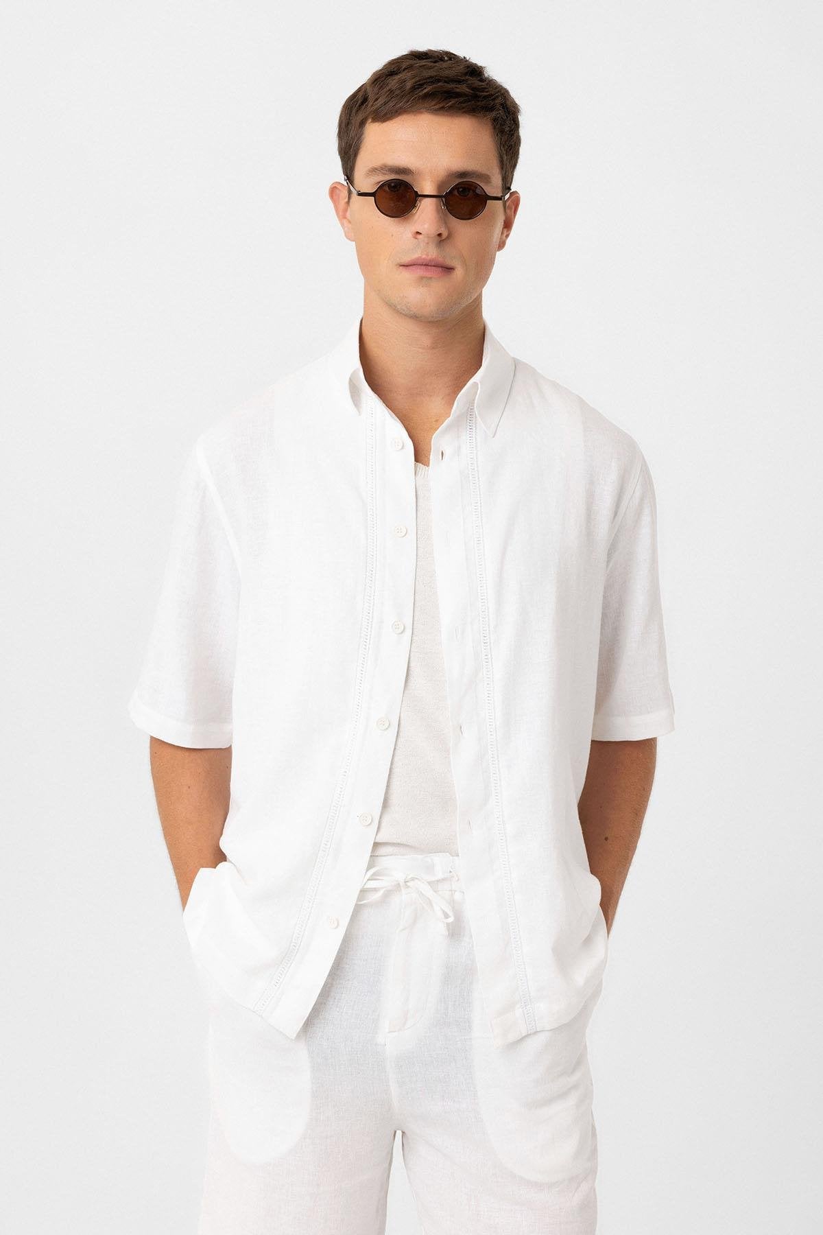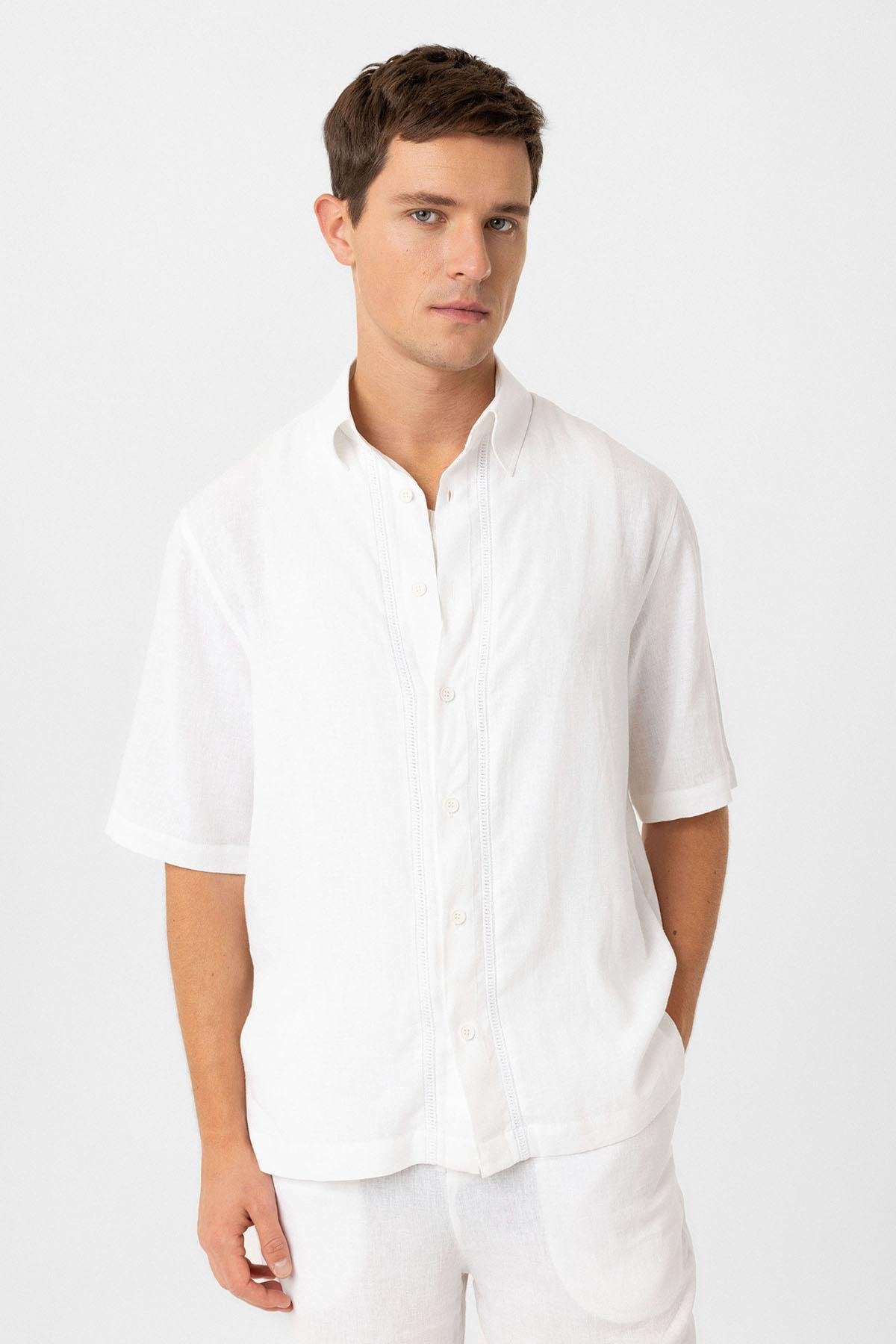Beyaz Keten Karışımlı Relaxed Erkek Gömlek