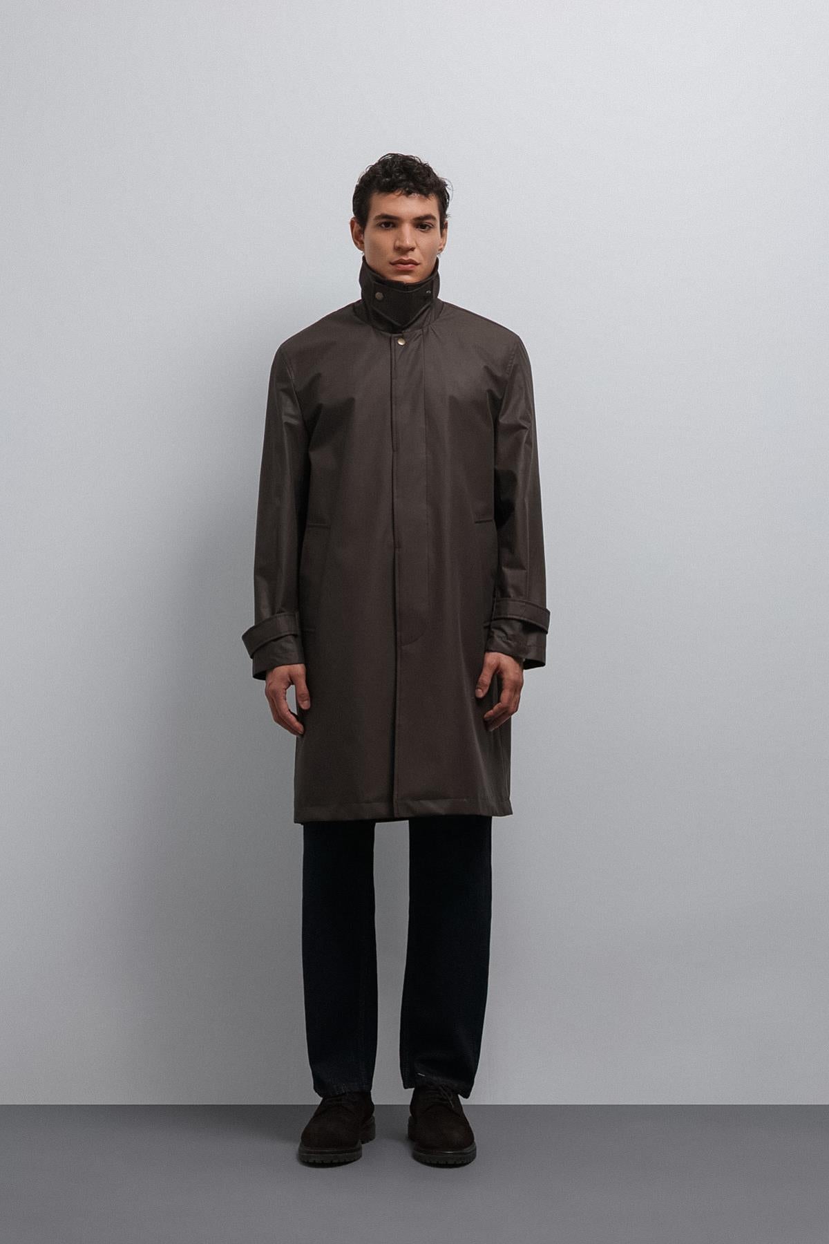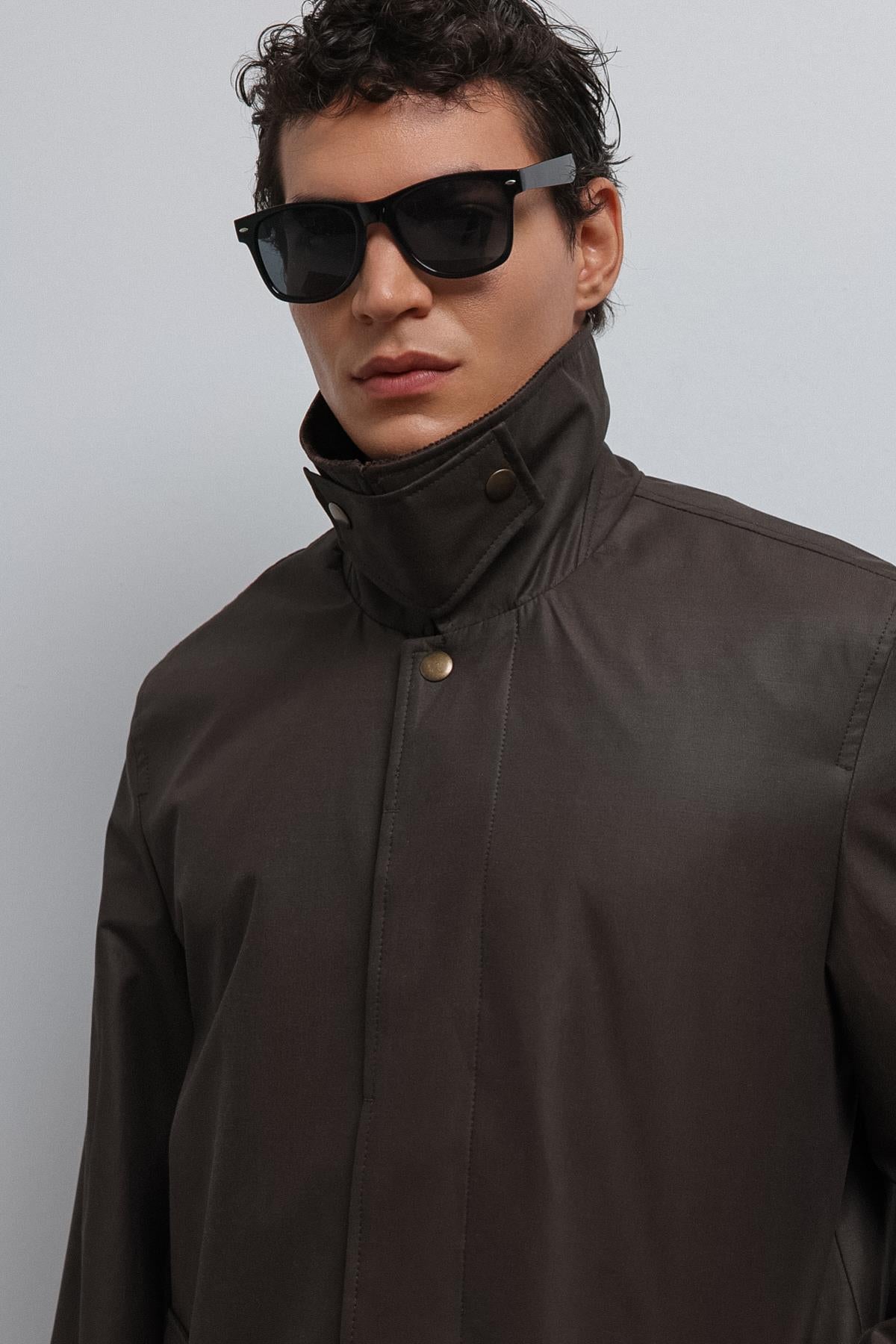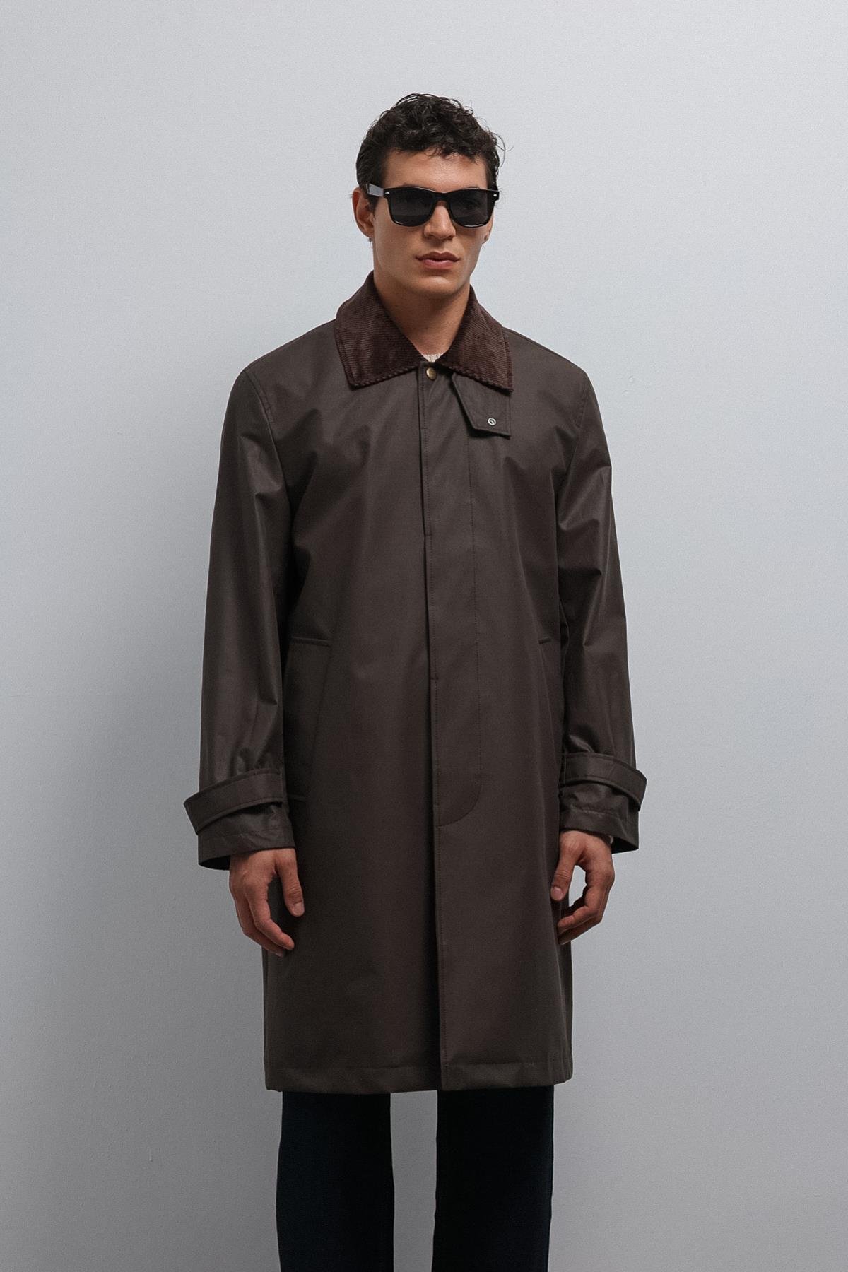 Kahve Kontrast Yaka Teknik Erkek Trençkot