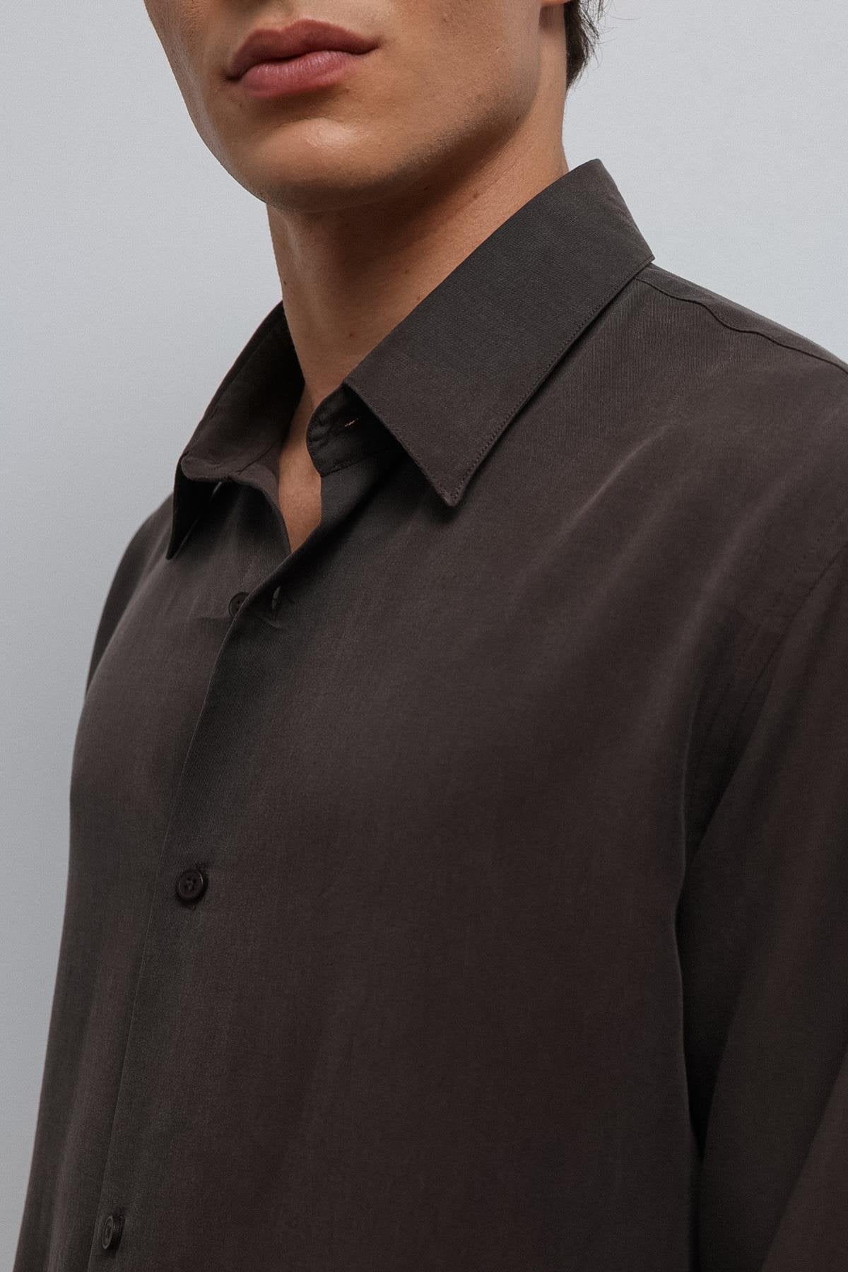 Kahve tonlarının hakimiyetinde özgün duruşuyla öne çıkan Antioch Uzun Kol Gömlek, karakteristik silüetiyle dikkat çeken lüks tasarımıyla göz doldurur. Uzun kol detayı ve düğme kapamasıyla tamamlanan tasarım, lüks dokusu ve rahat kalıbıyla gün boyu konfor sağlar. Günlük şehir stillerinizden ofis kombinlerinize kadar her ortama uyum sağlar. Farklı pantolonlarla kolayca kombinleyebileceğiniz bu parça, şık ve iddialı bir görünüm sunarak stilinizi bir adım öne taşır.