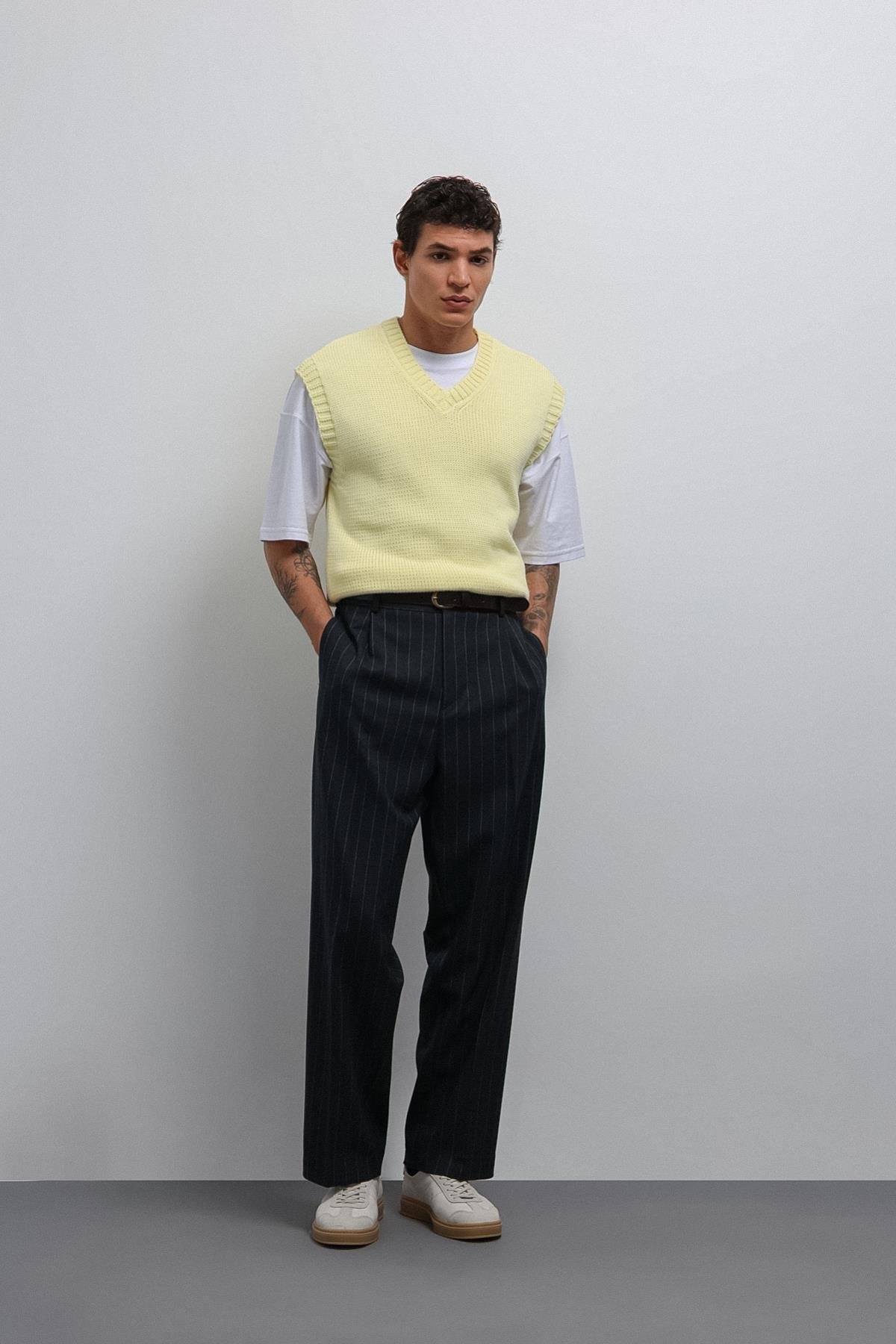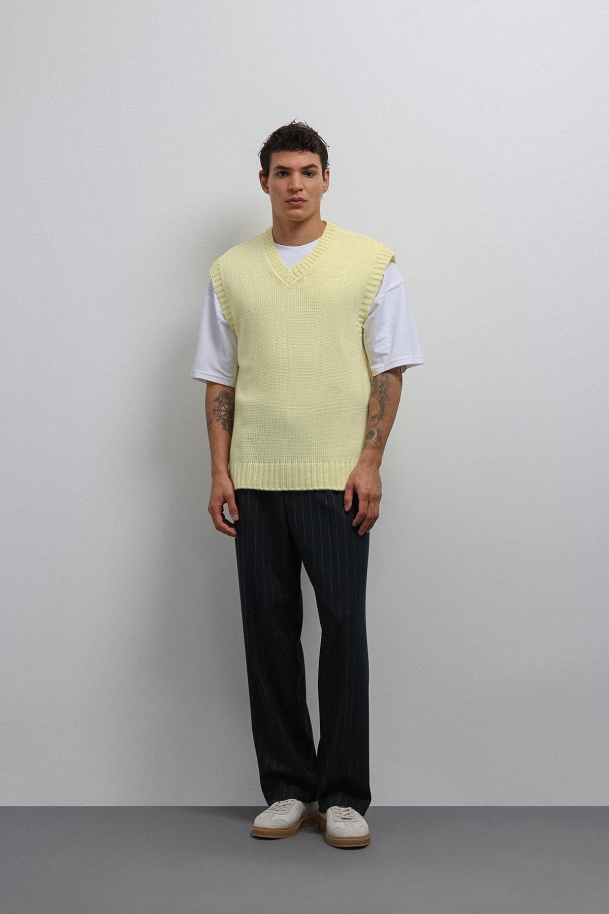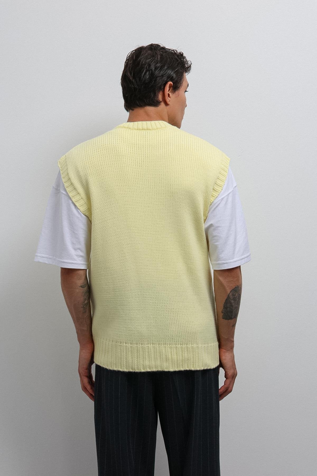 Sarı Örgü Erkek Triko Yelek