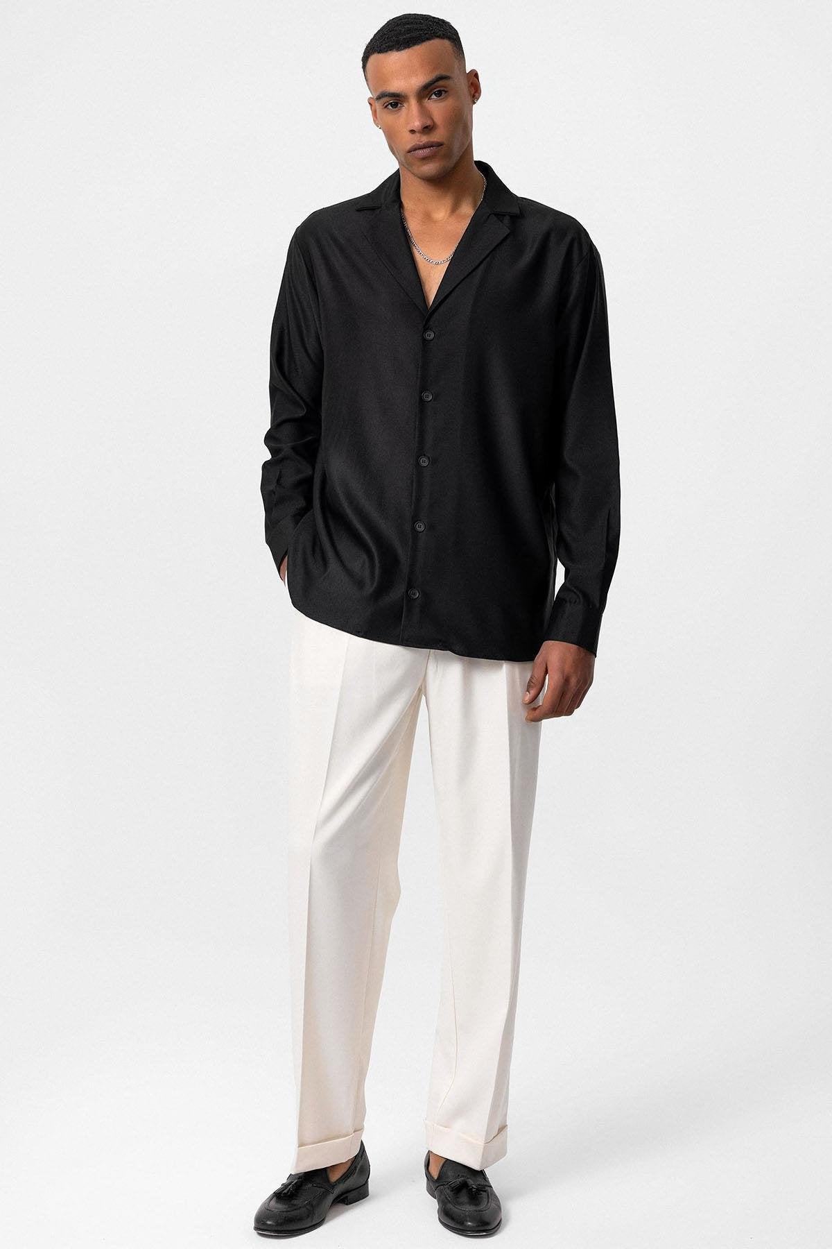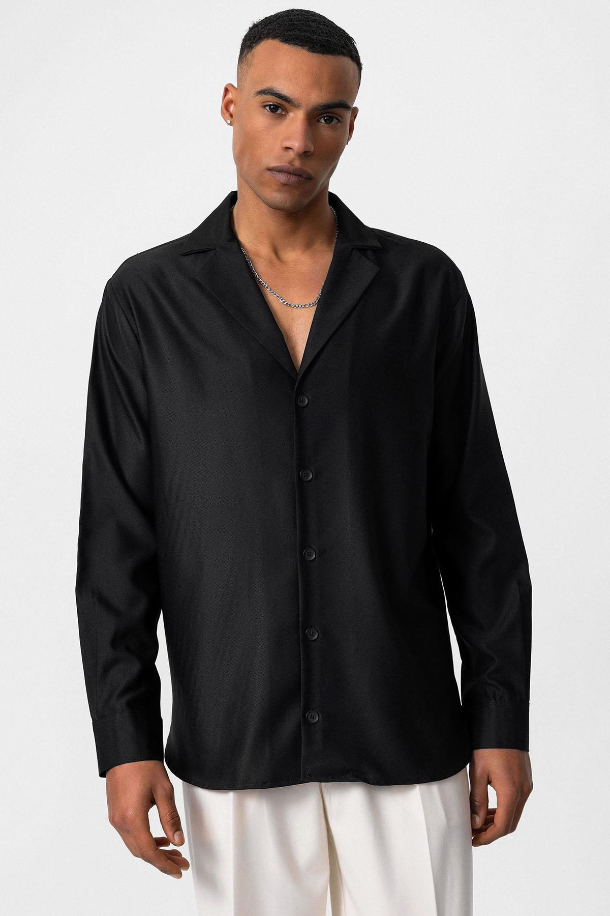 Siyah Relax Fit Erkek Gömlek