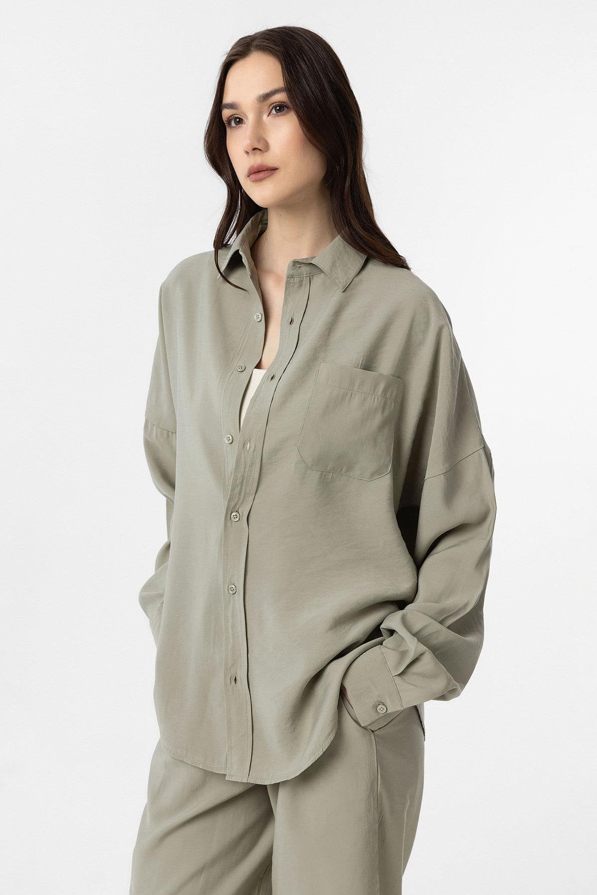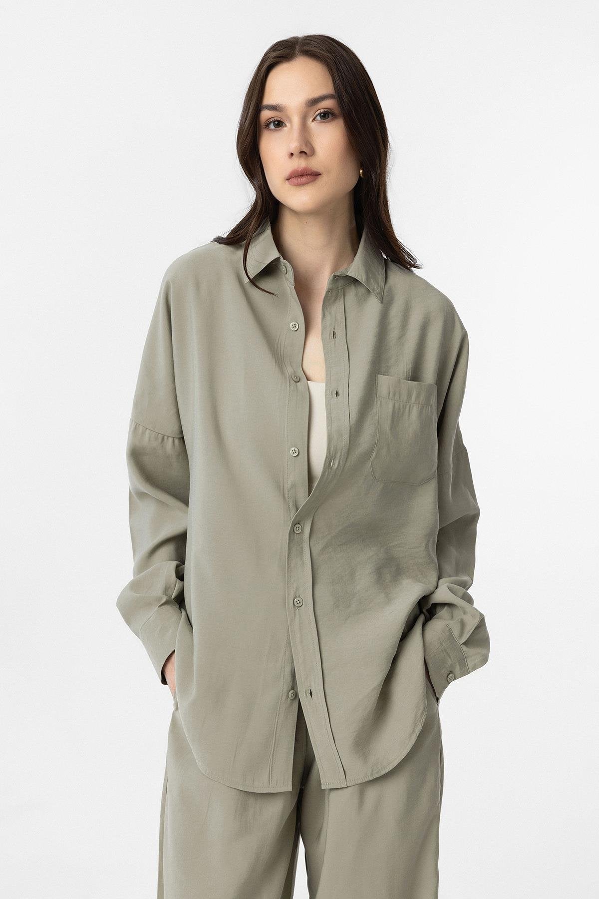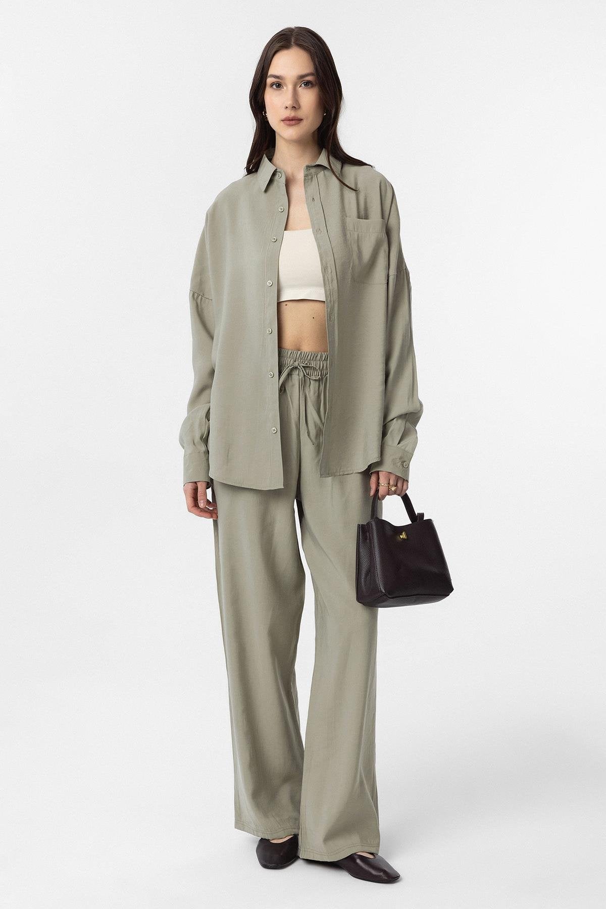 Yeşil Modal Kadın Gömlek Pantolon Takım