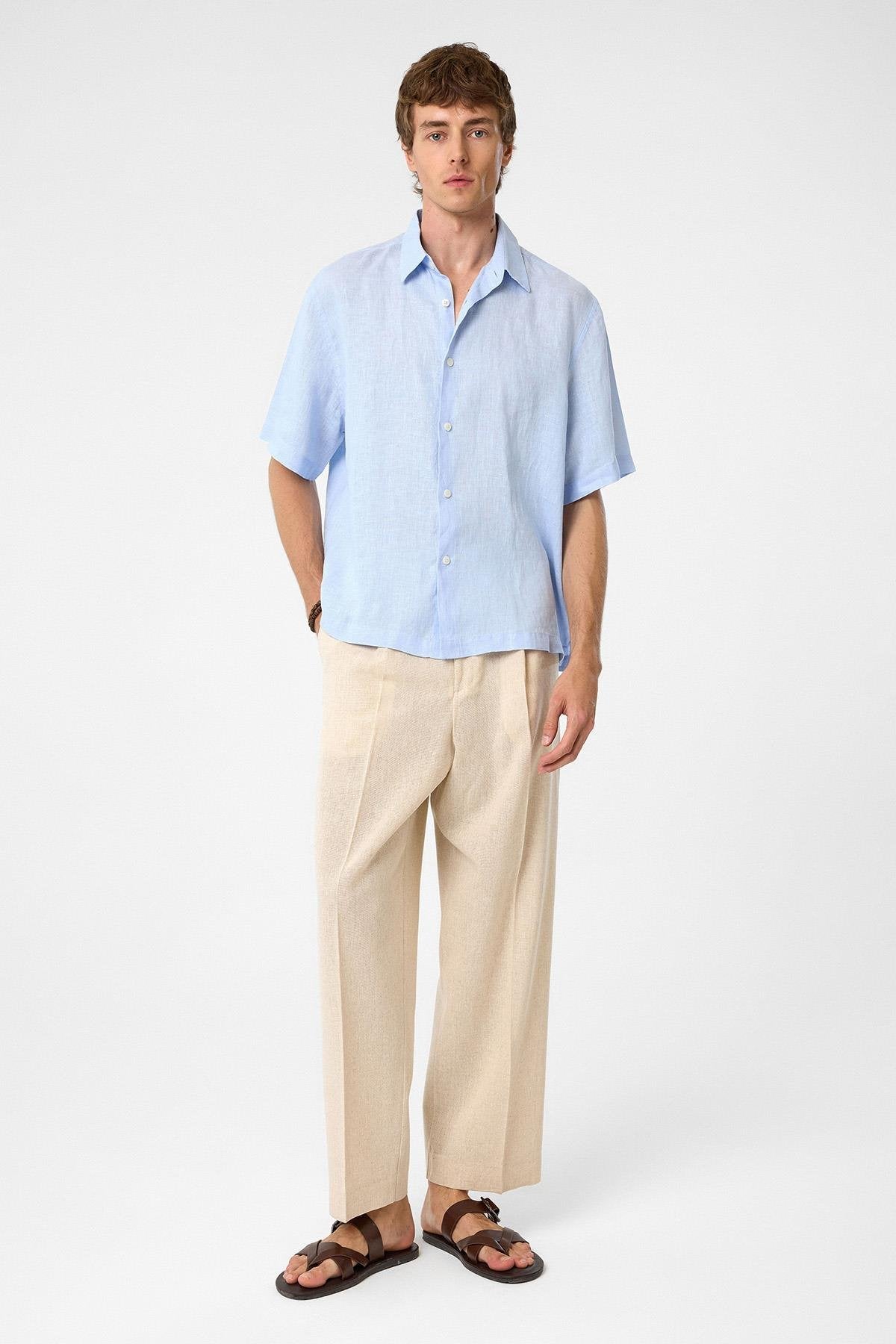 Bebe Mavi 100% Keten Relaxed Erkek Gömlek