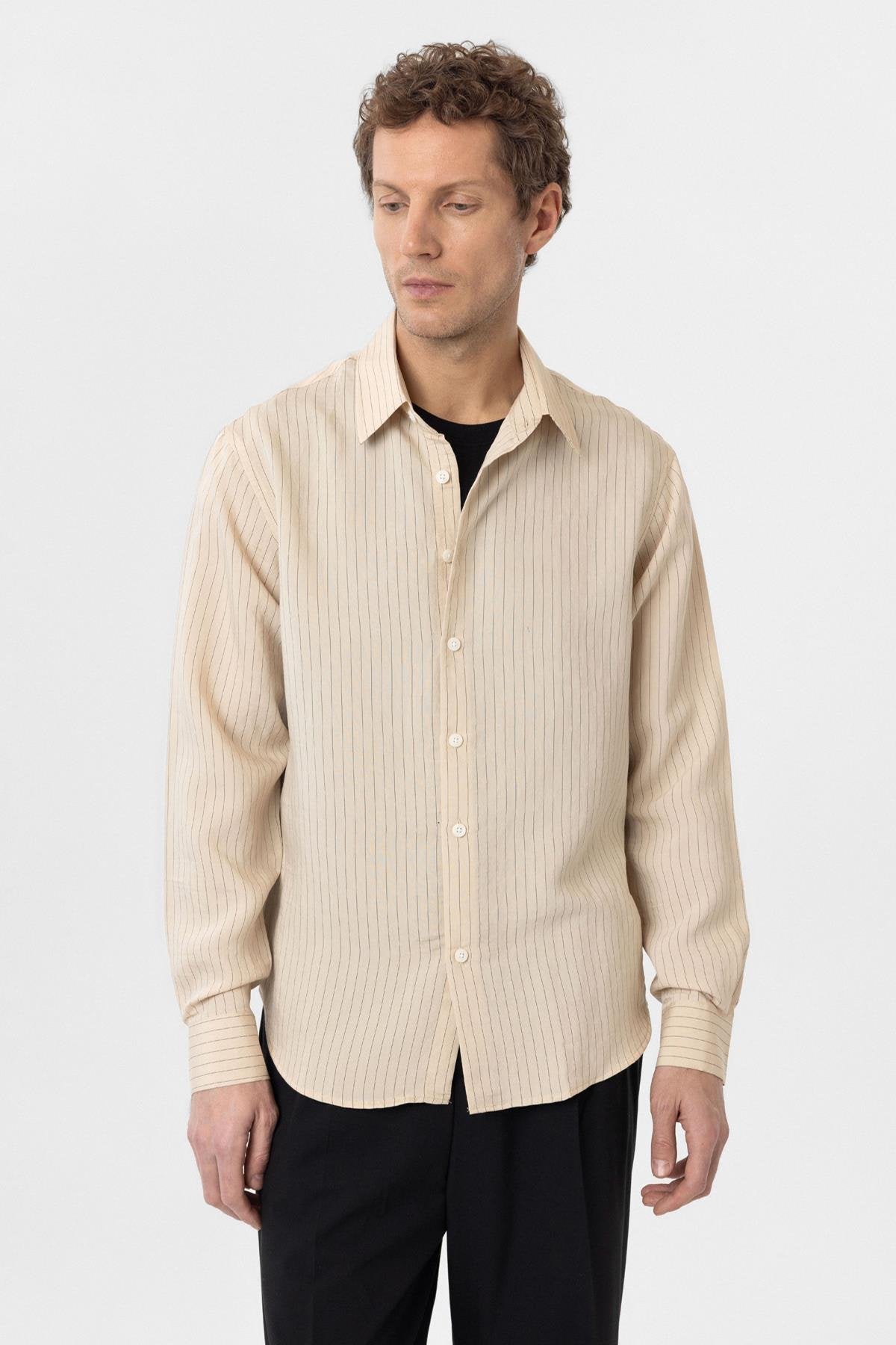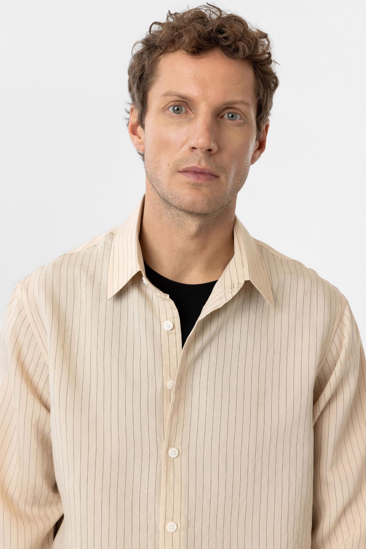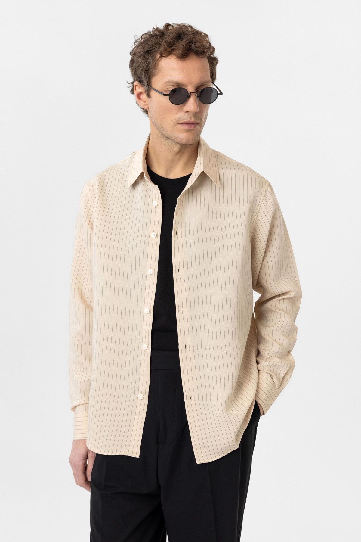 Bej Modal Kumaş Relax Fit Çizgili Erkek Gömlek