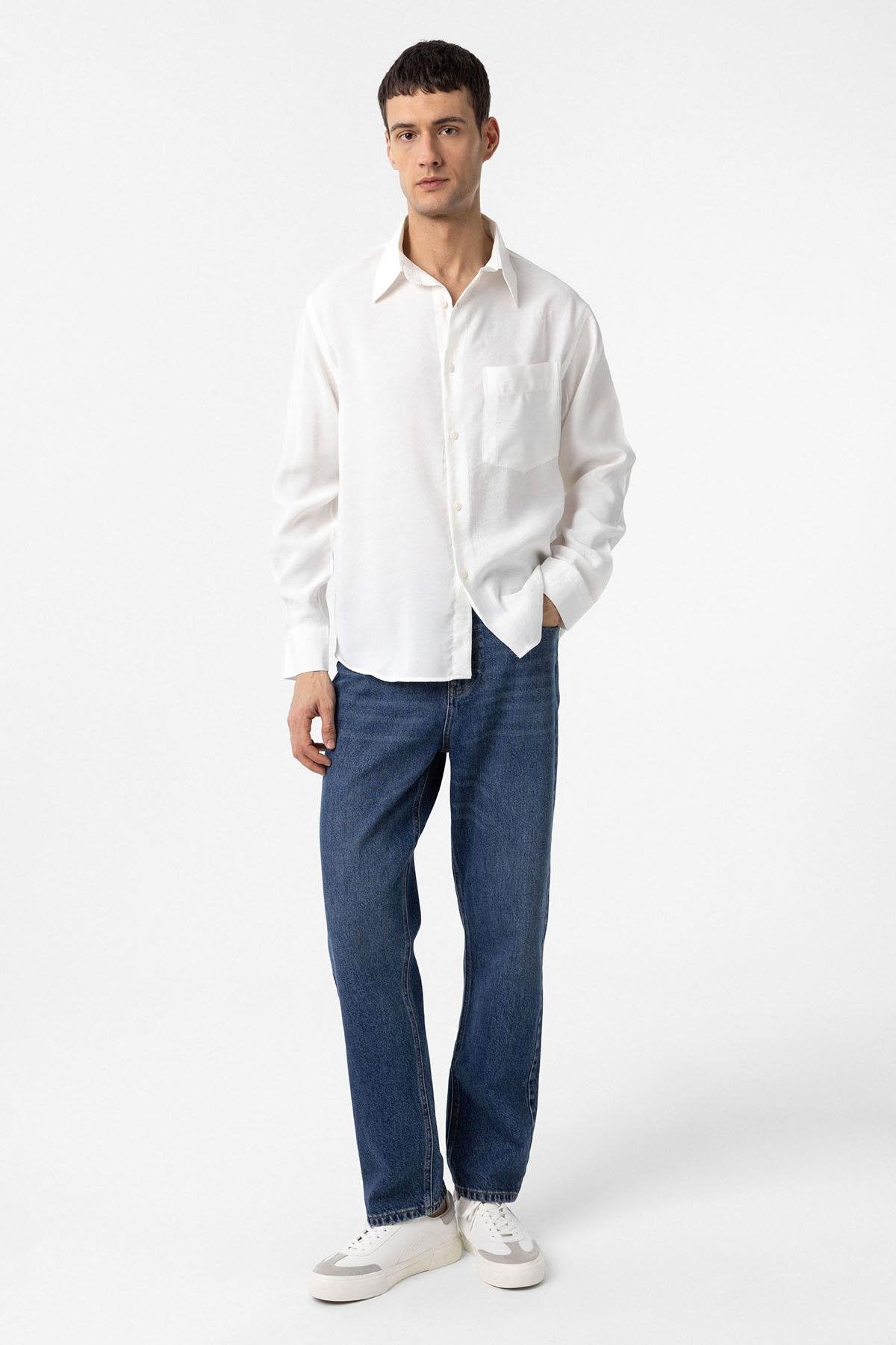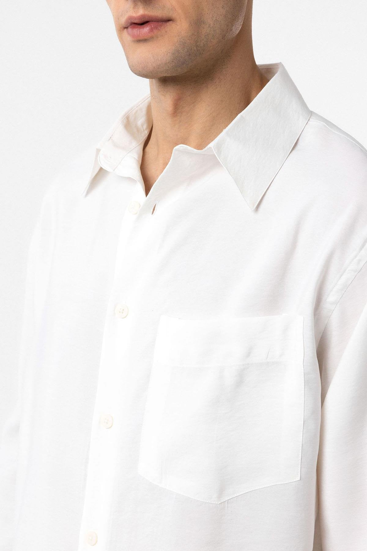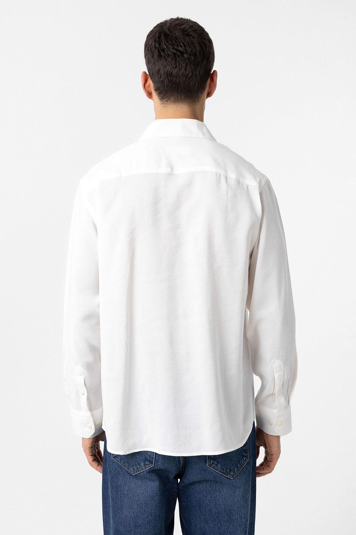 Beyaz Modal Kumaş Relax Fit Erkek Gömlek