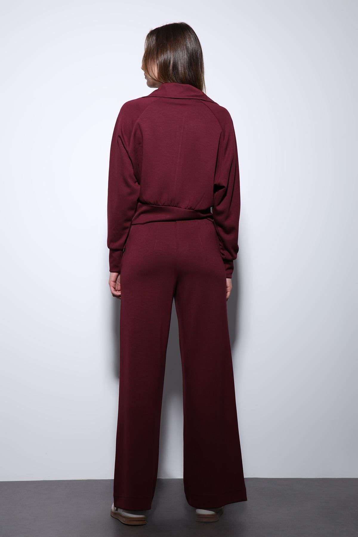Bordo renkte, fermuarlı üst ve rahat kesimli alt parçadan oluşan eşofman takımıdır. Günlük kullanım için konforlu bir yapıya sahiptir ve modern bir siluet sunar. Türkiye’de üretilmiştir.