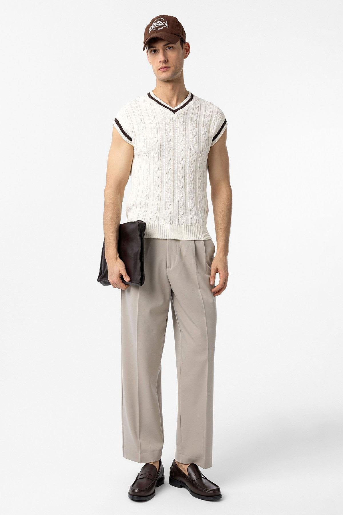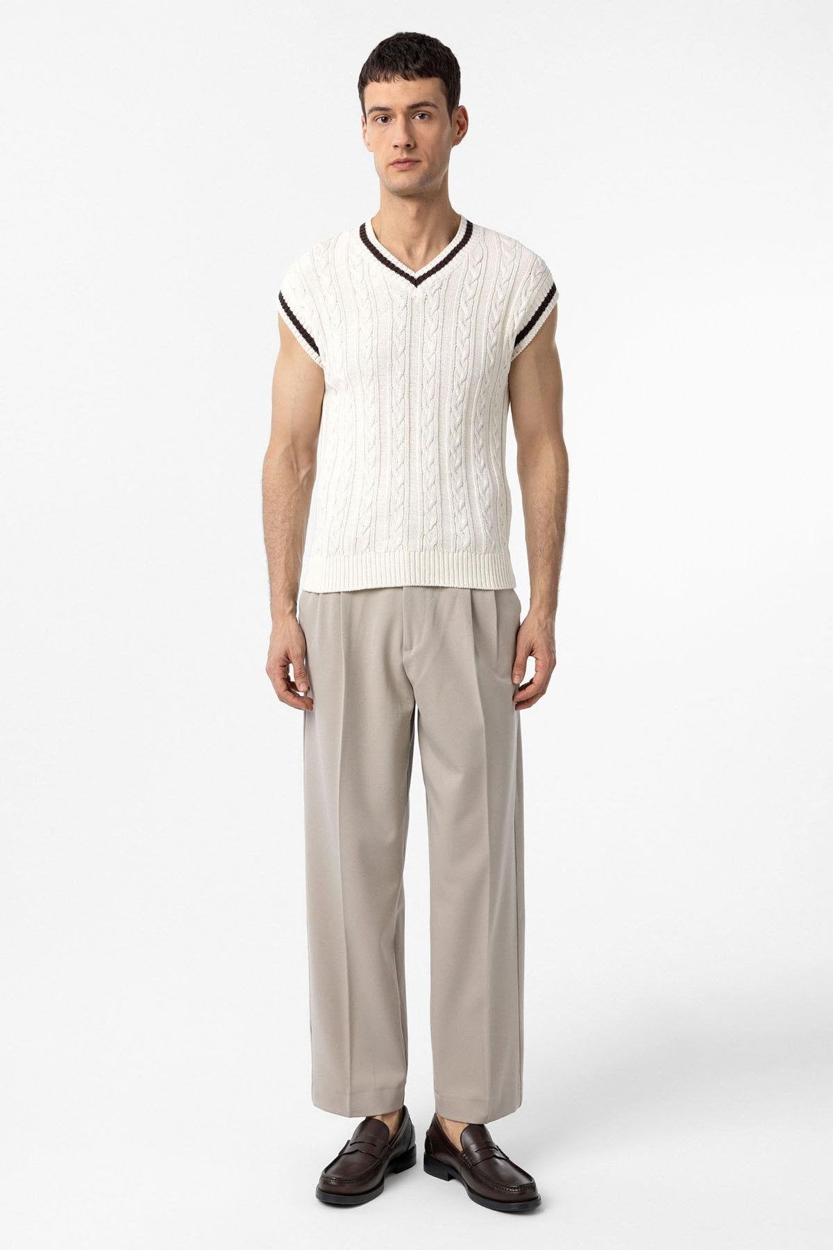 Ekru 100% Pamuk Örgü Erkek Yelek