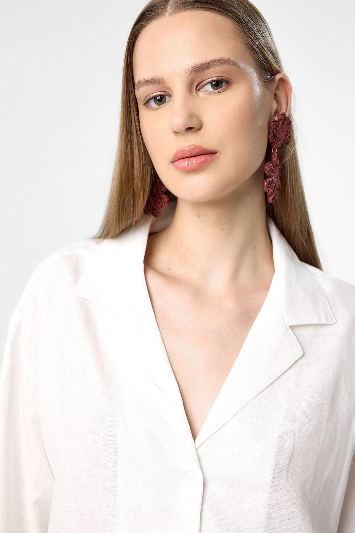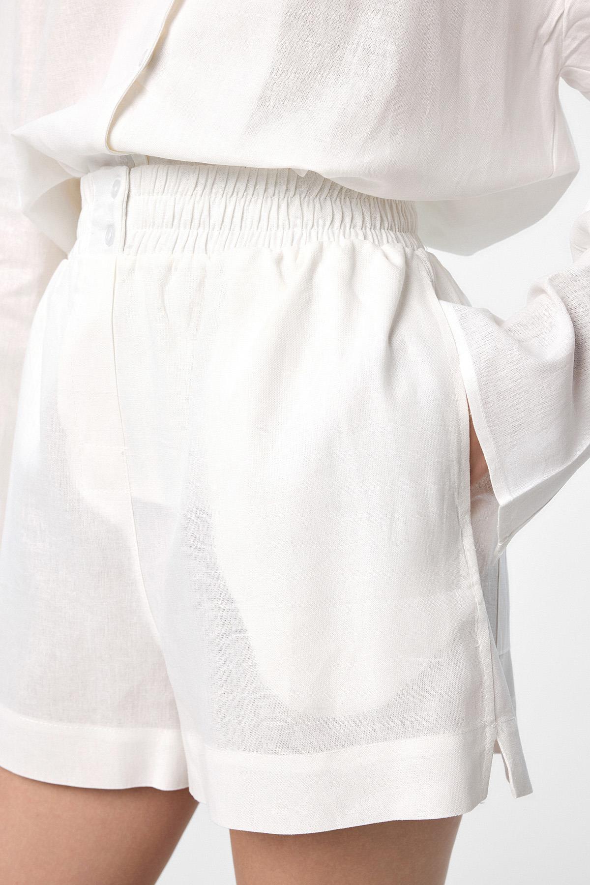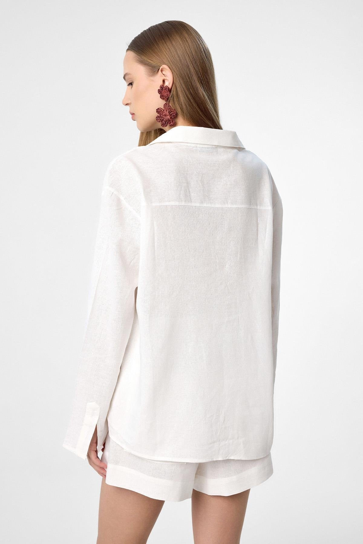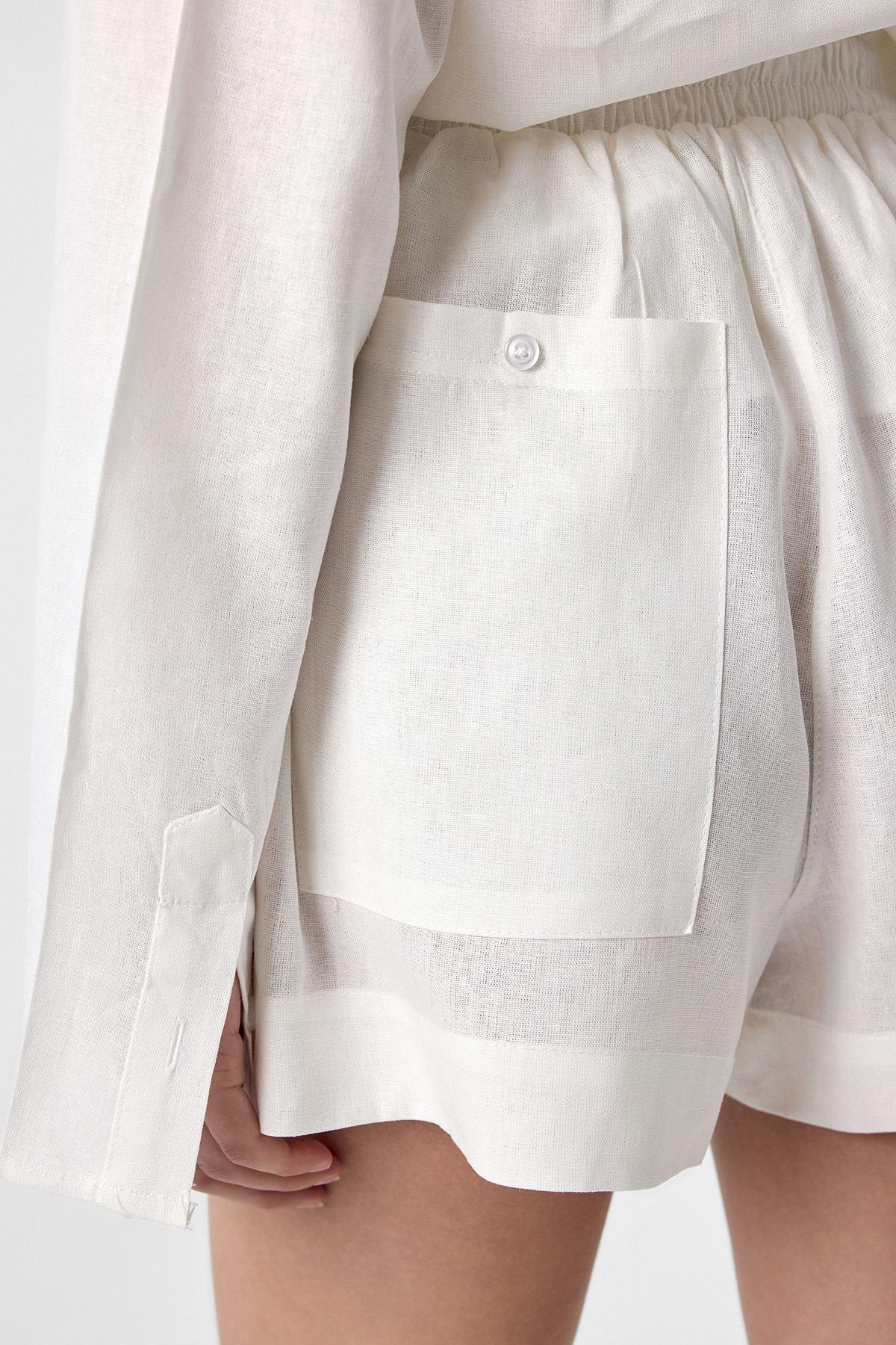 Ekru Keten Karışımlı Şort Gömlek Kadın Takım