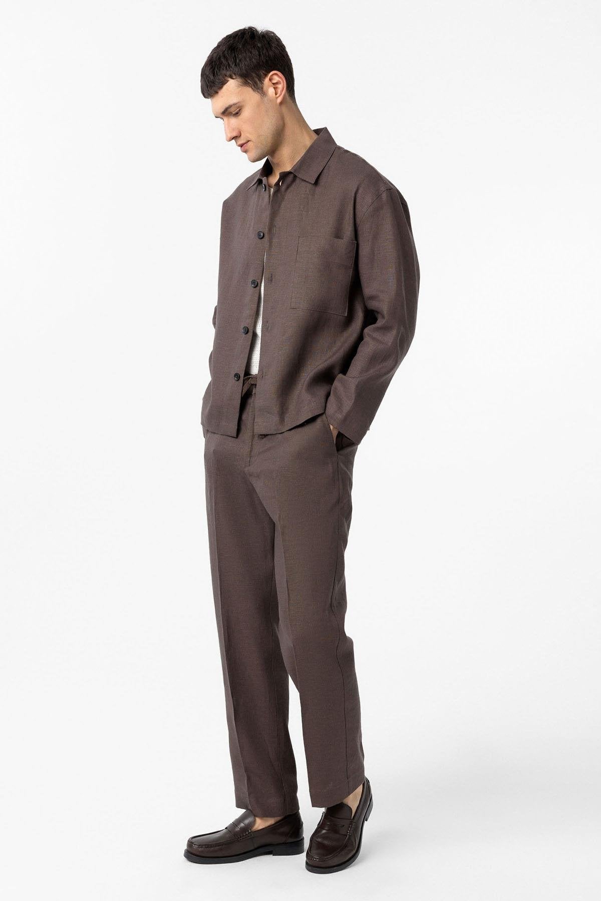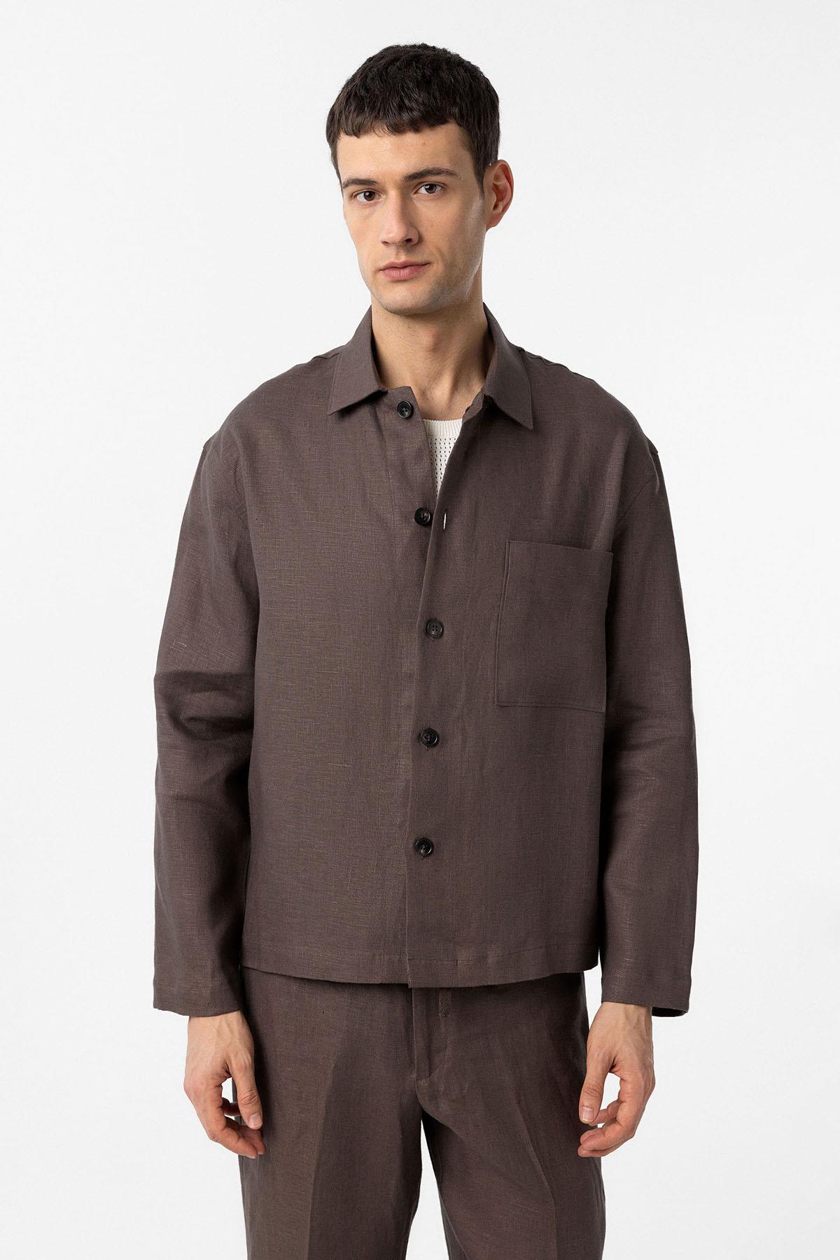 Kahve 100% Keten Relax Fit Erkek İNce Ceket