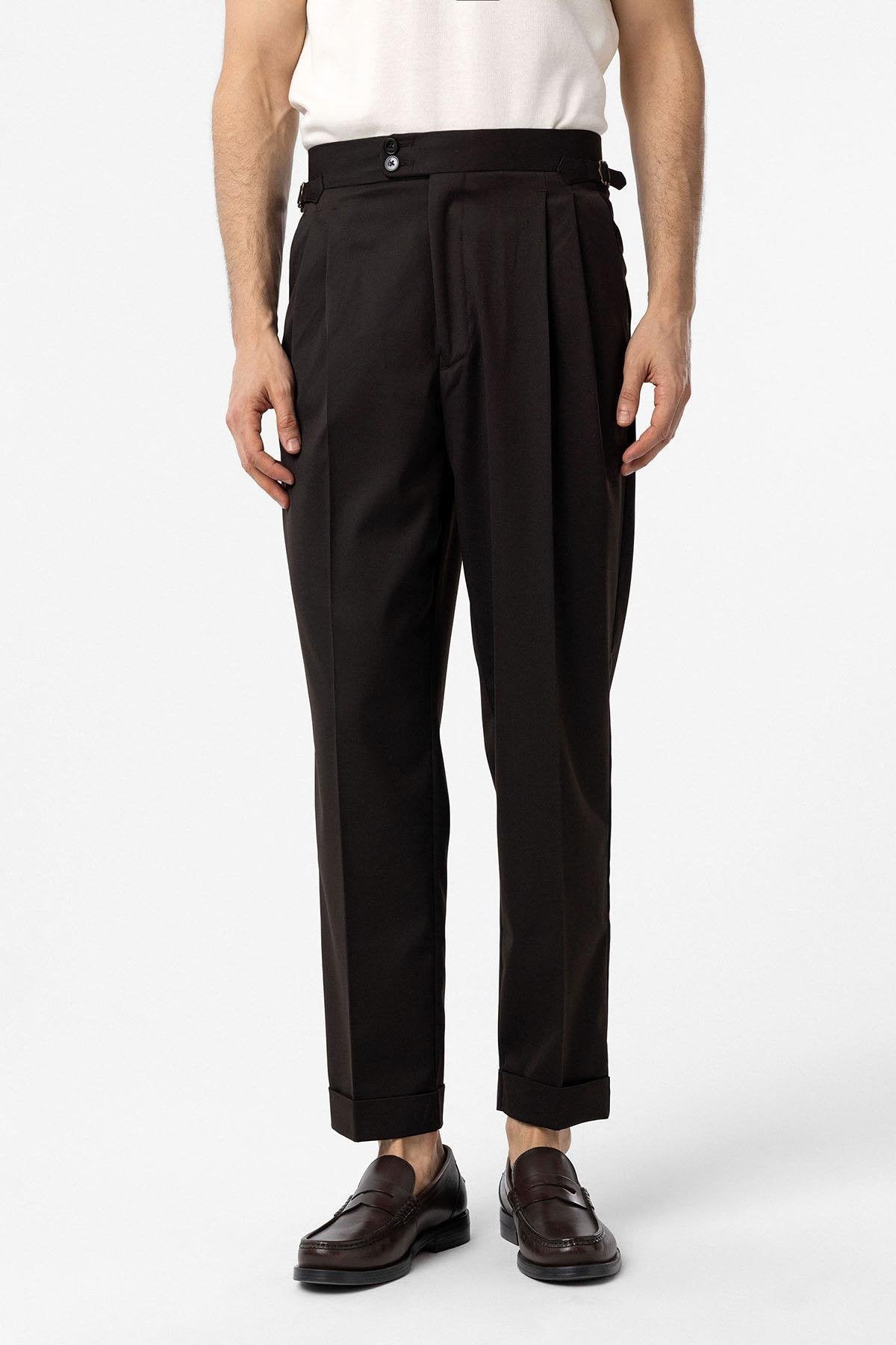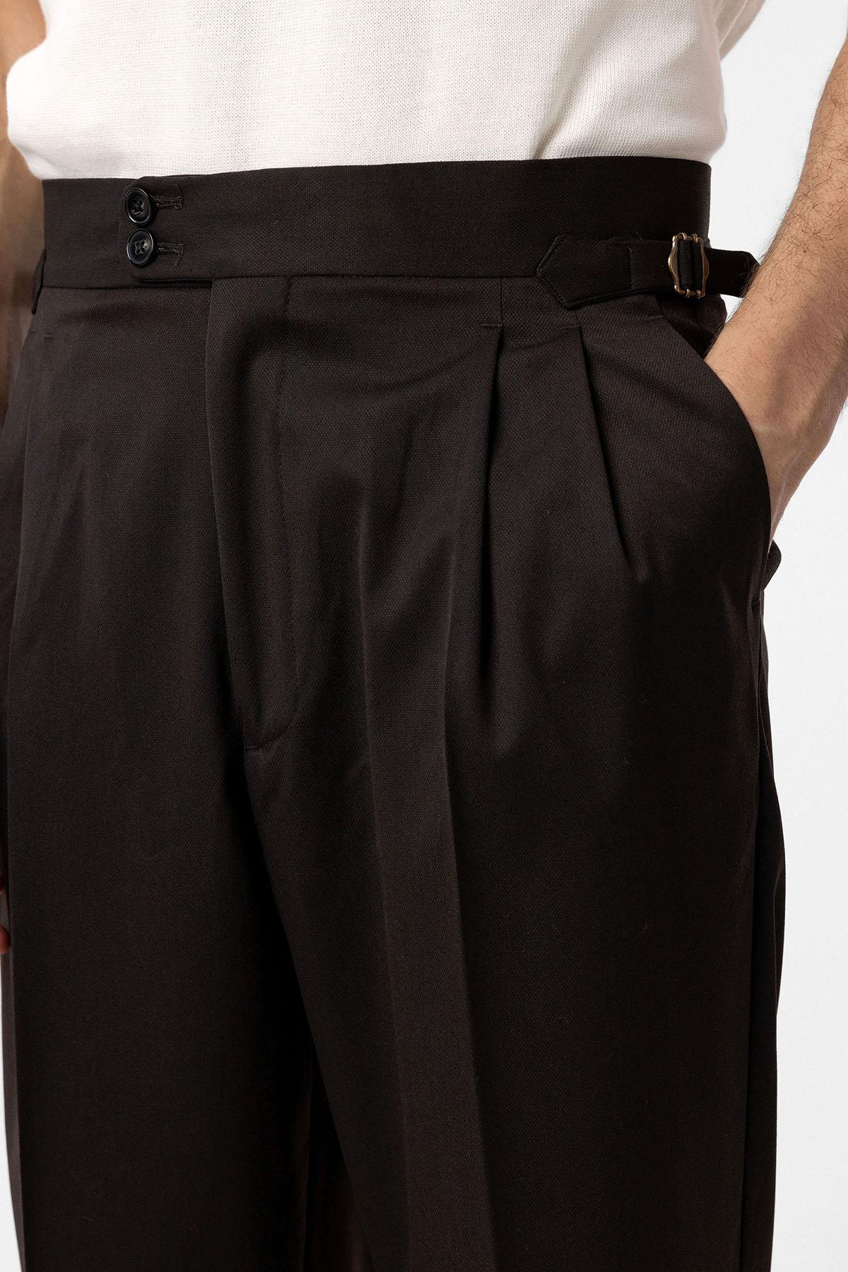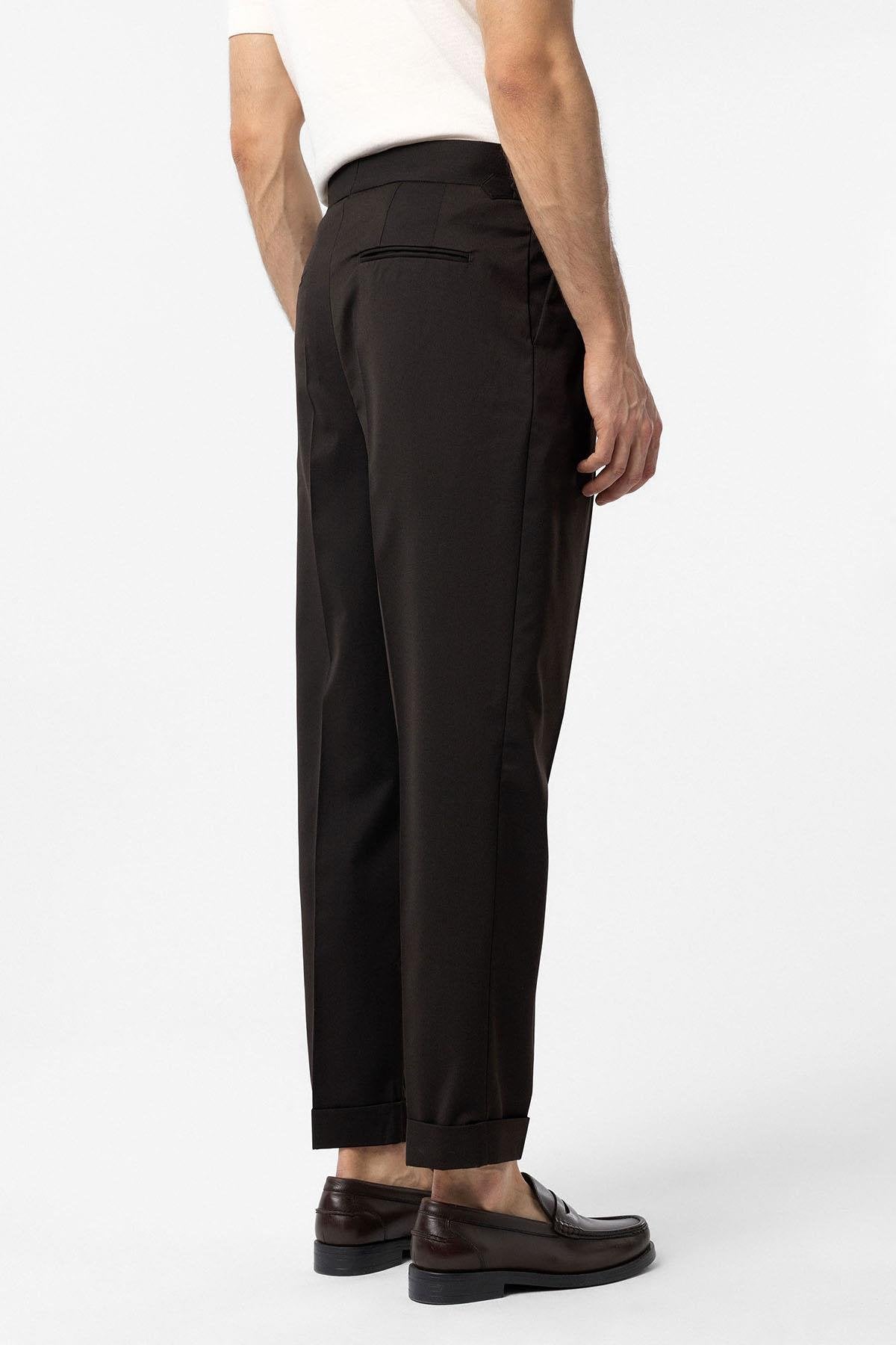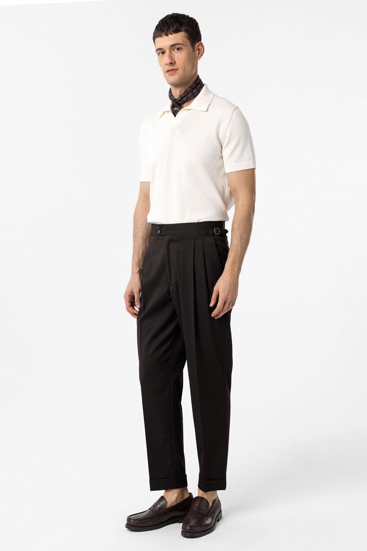 Kahve Yüksek Bel İTalyan Kalıp Pileli Erkek Pantolon