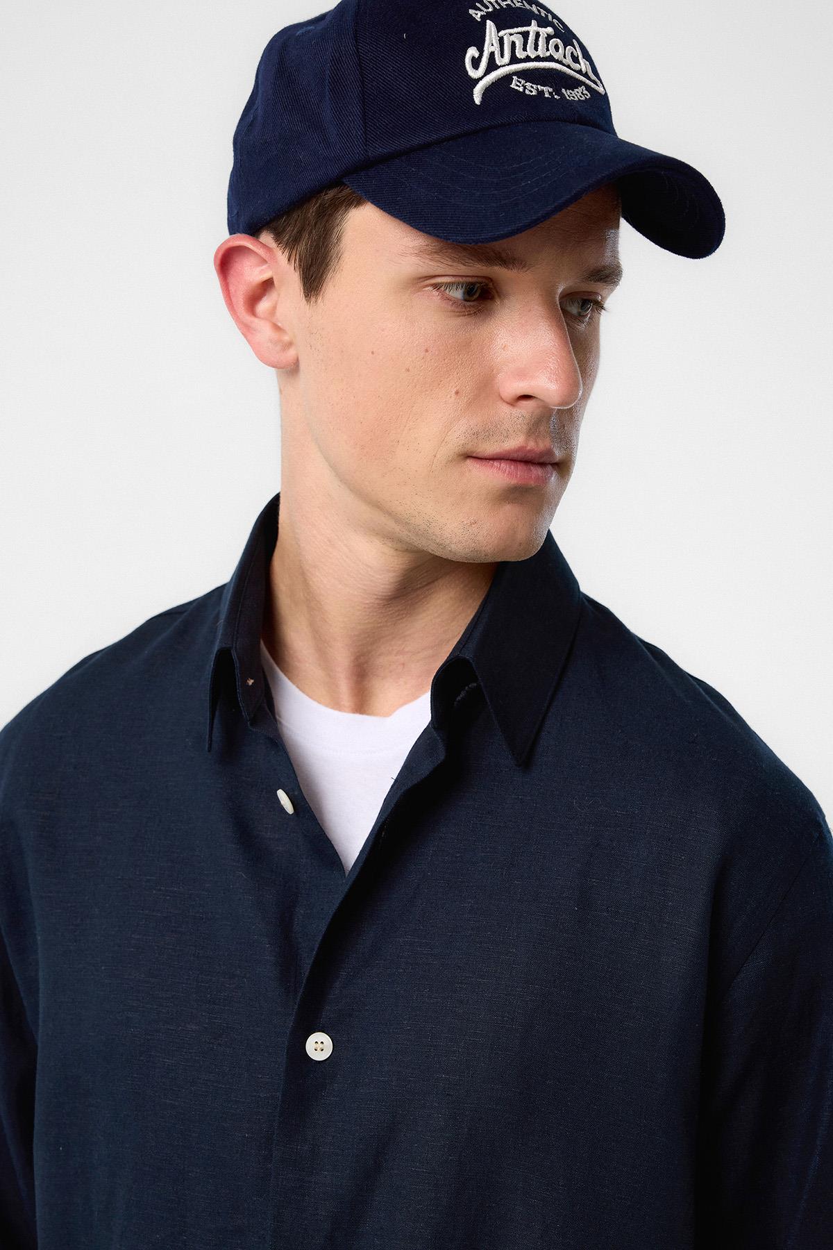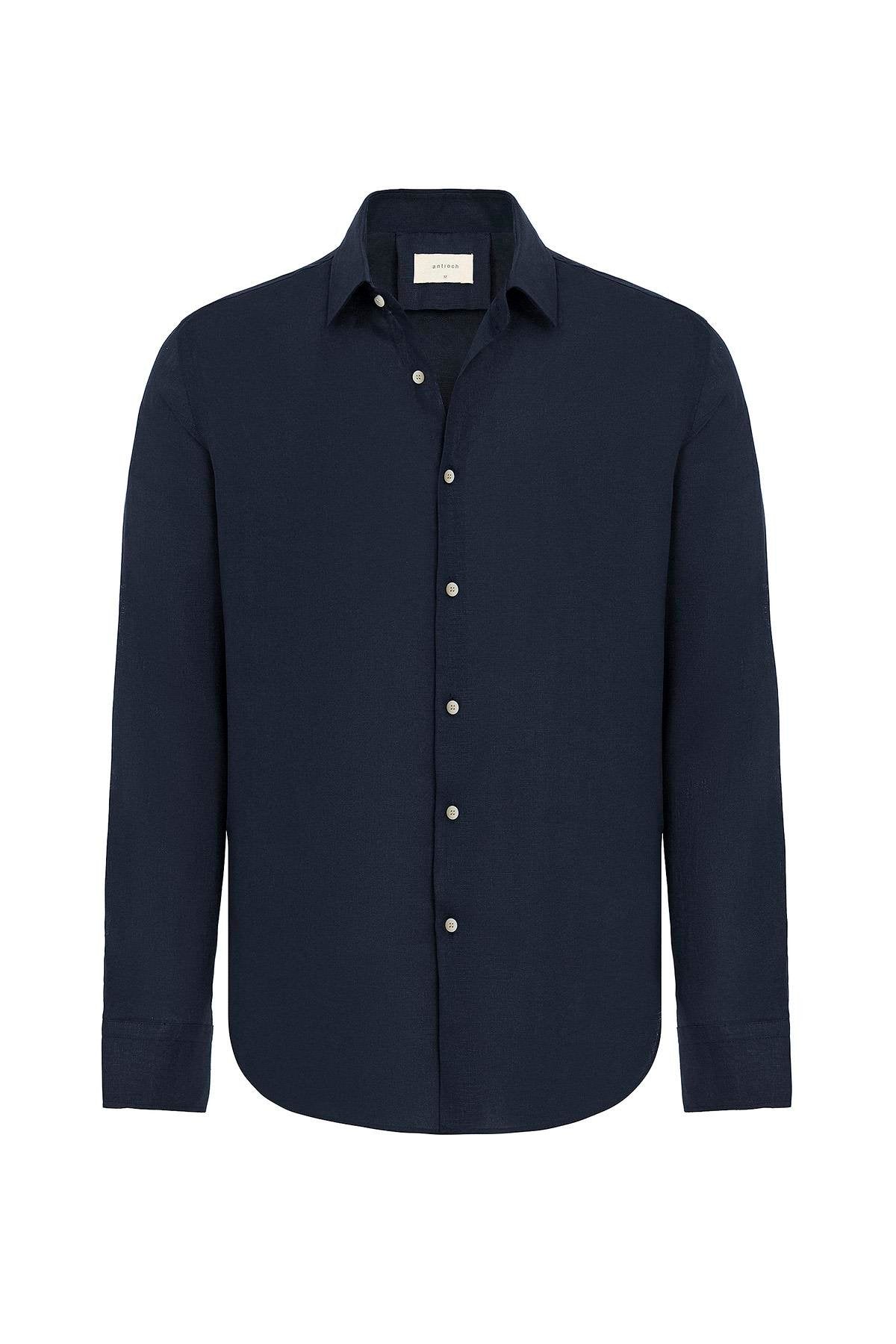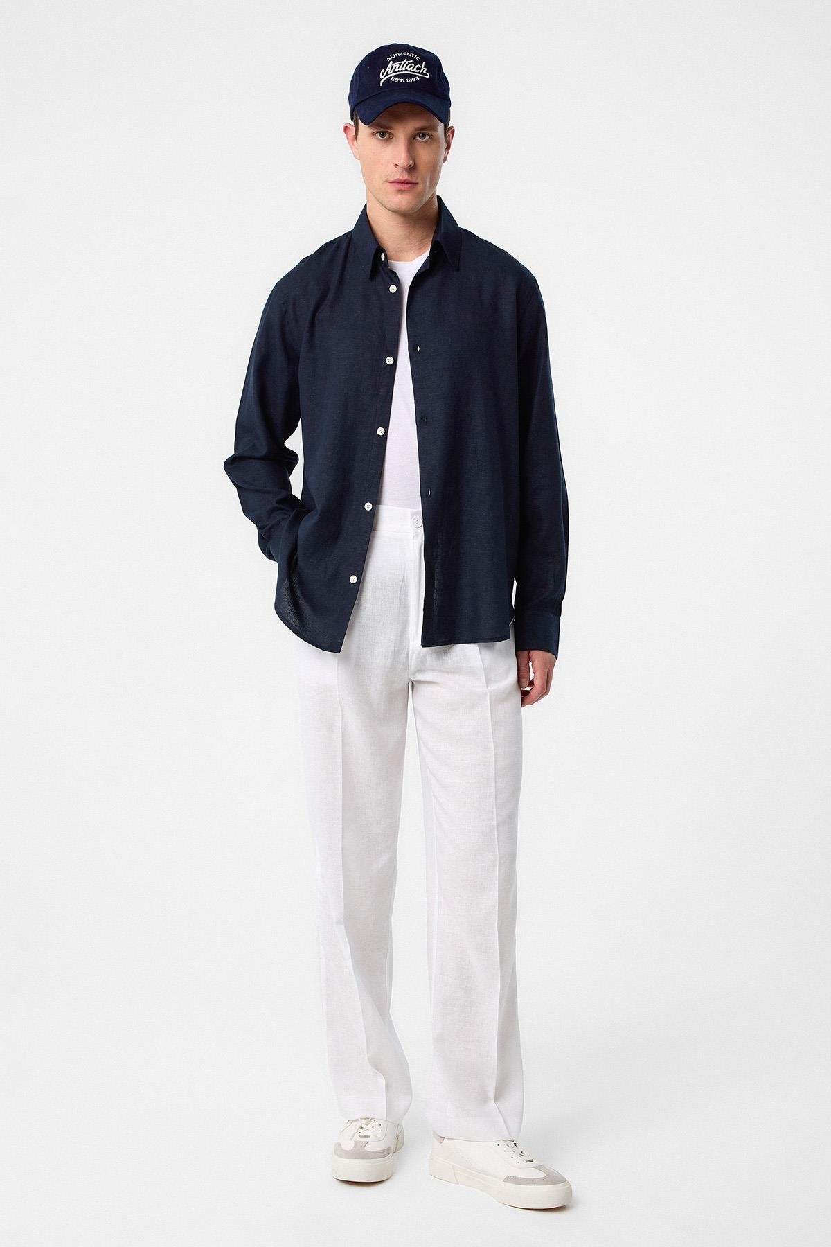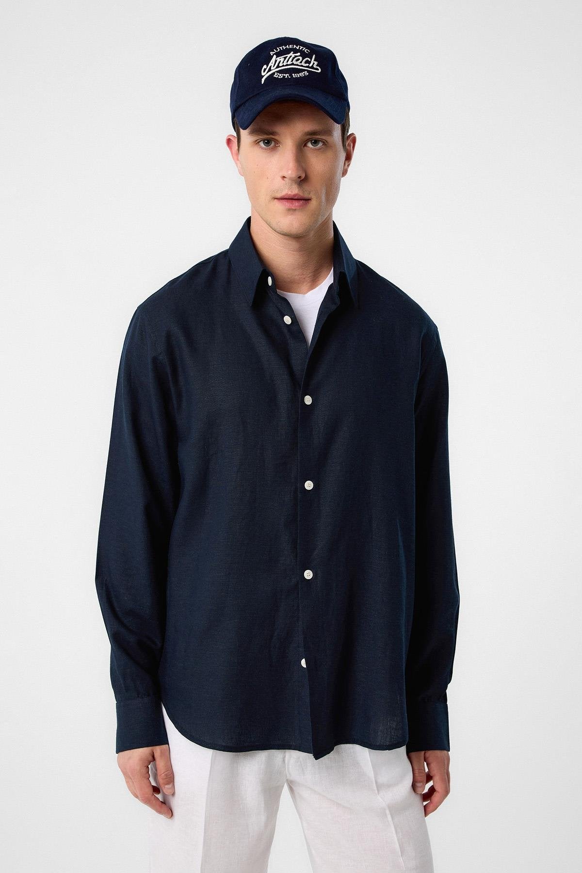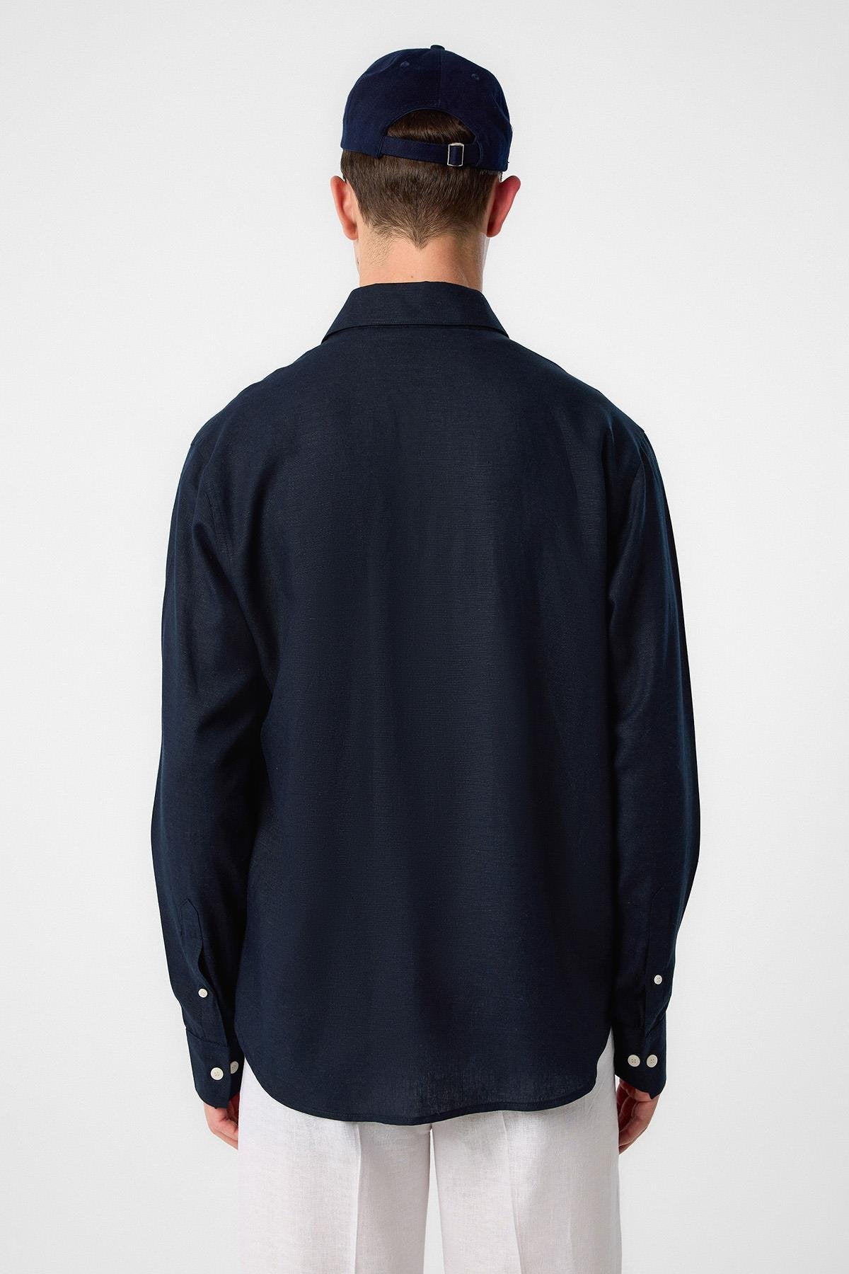 Lacivert Relax Fit Keten Karışımlı Erkek Gömlek
