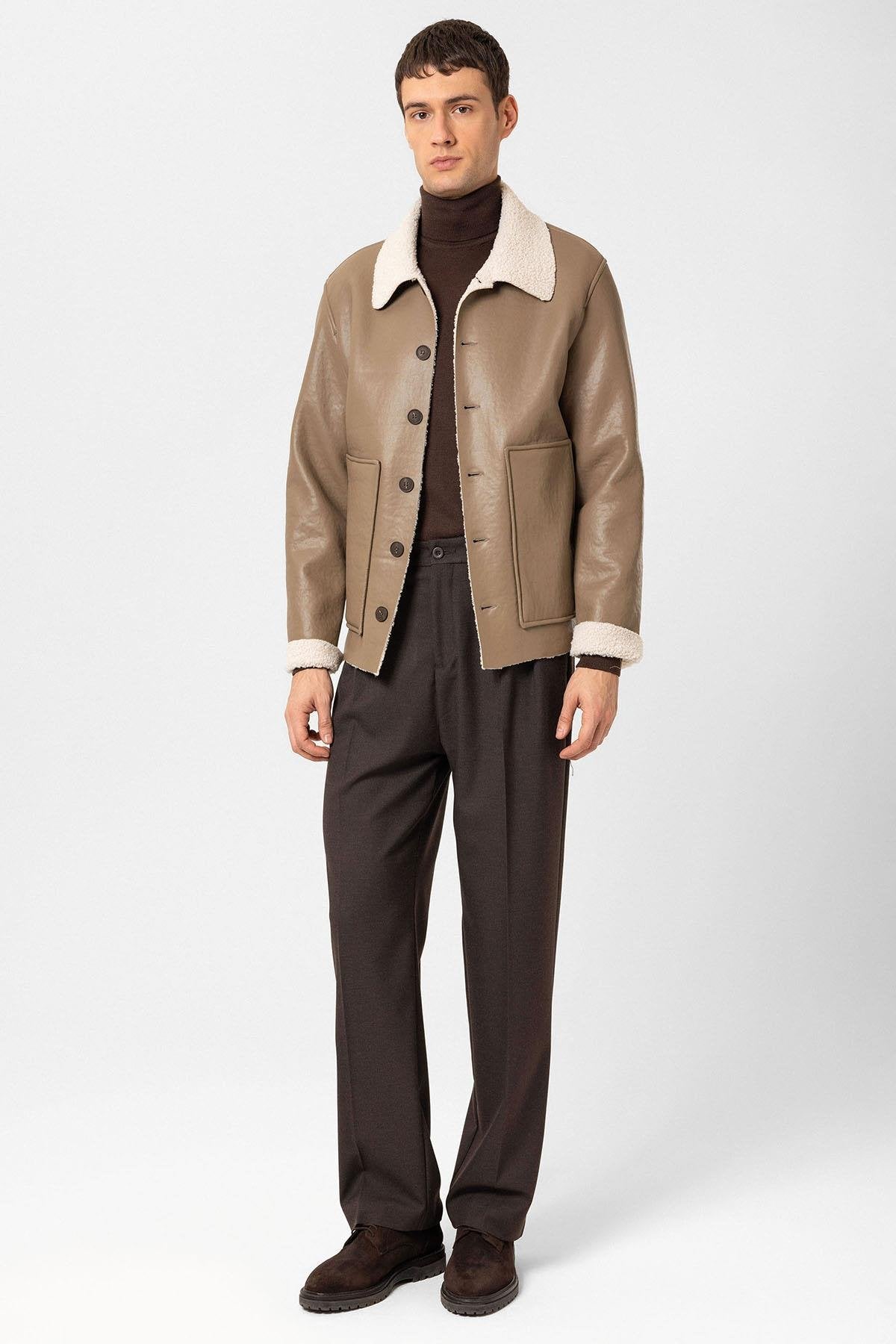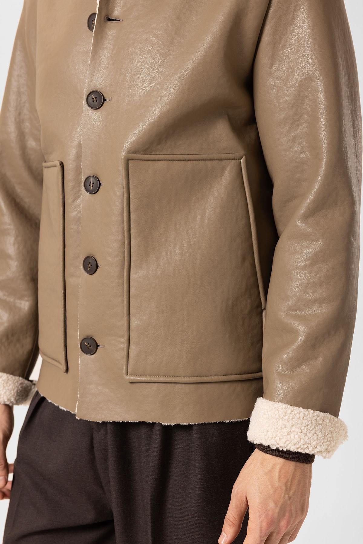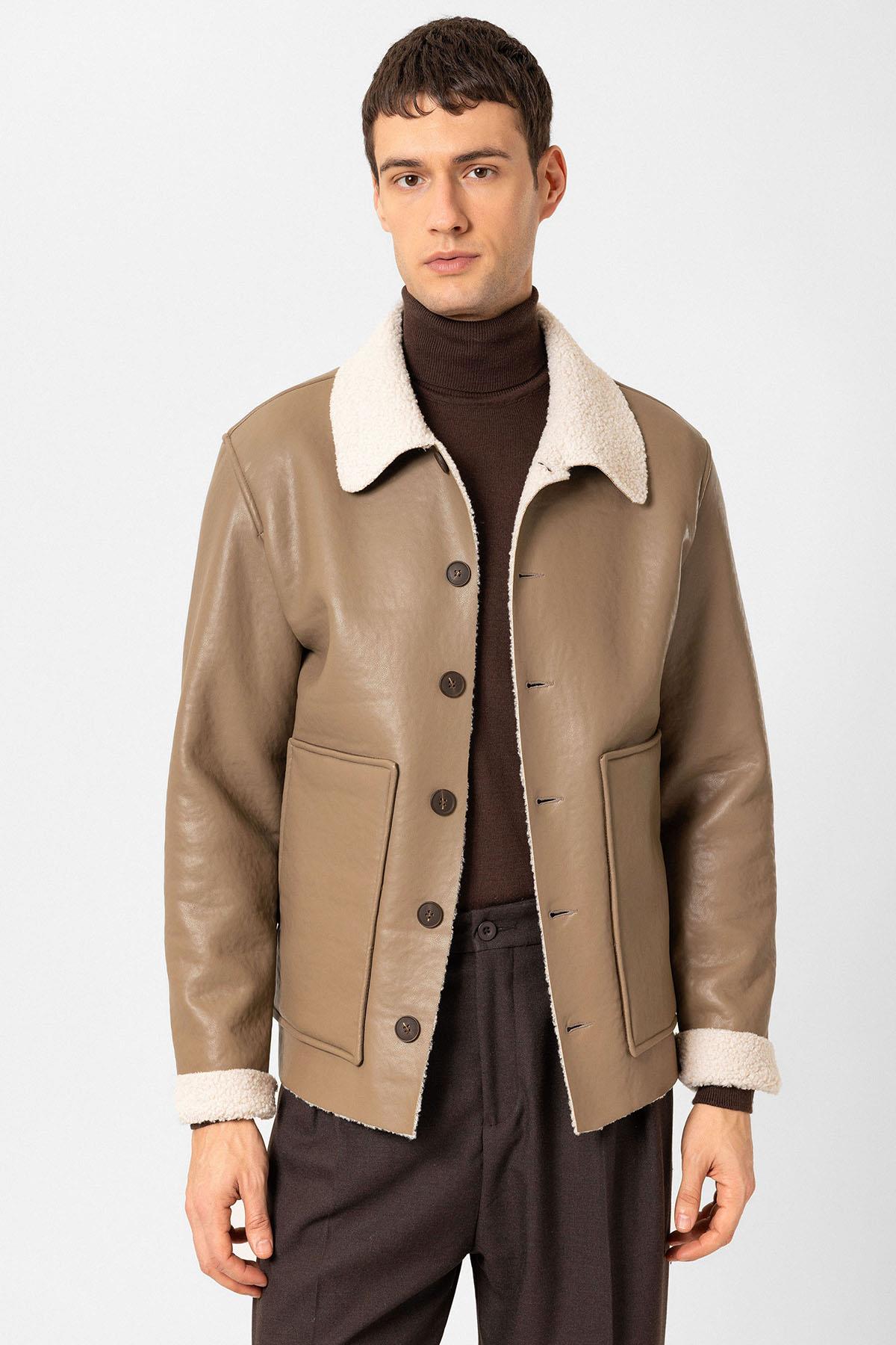 Vizon Astar Detaylı Suni Deri Erkek Mont