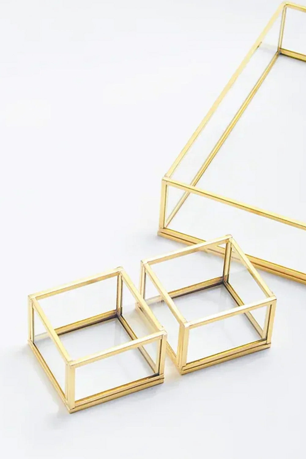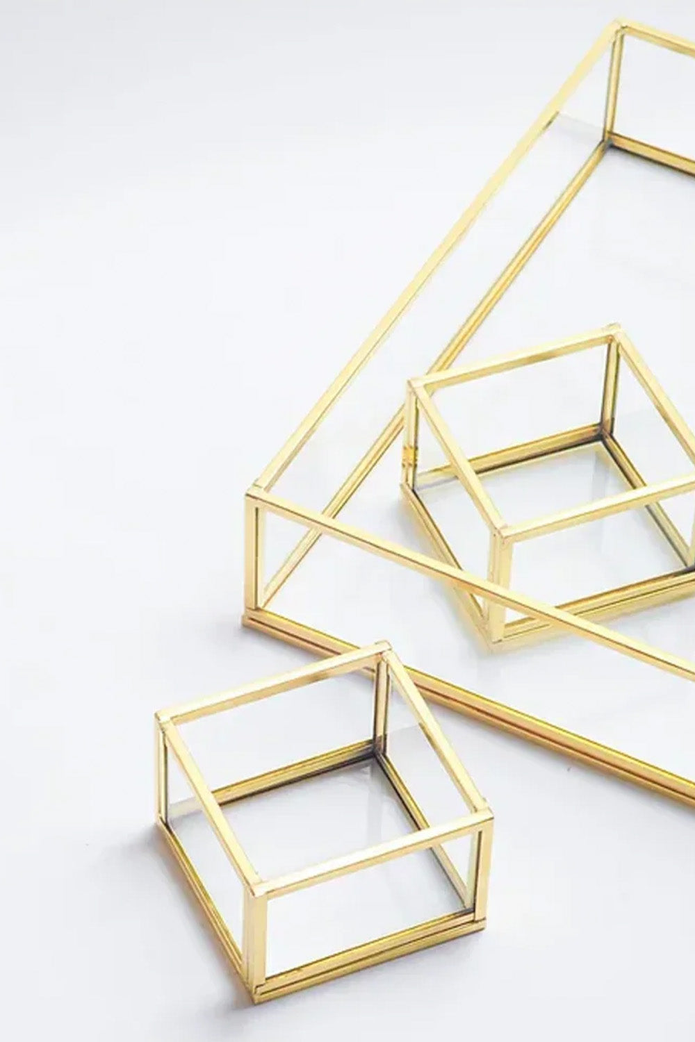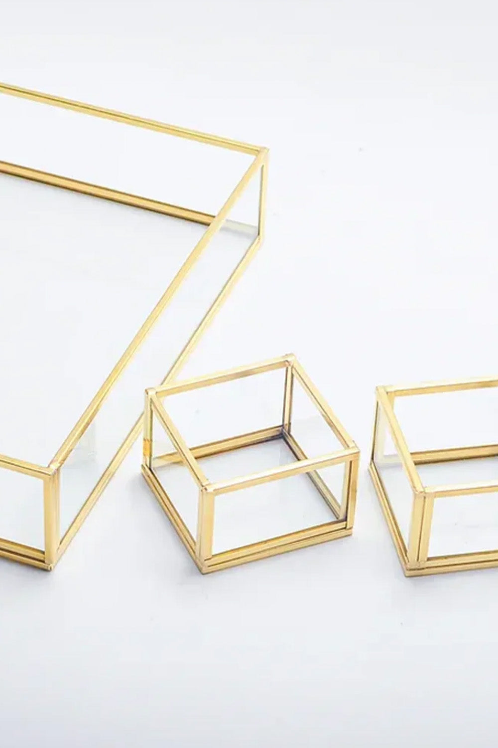 3 Parça Pirinç Gold Nişan Takımı Damat Kahvesi Sunum Tepsisi Yüzük Kutusu