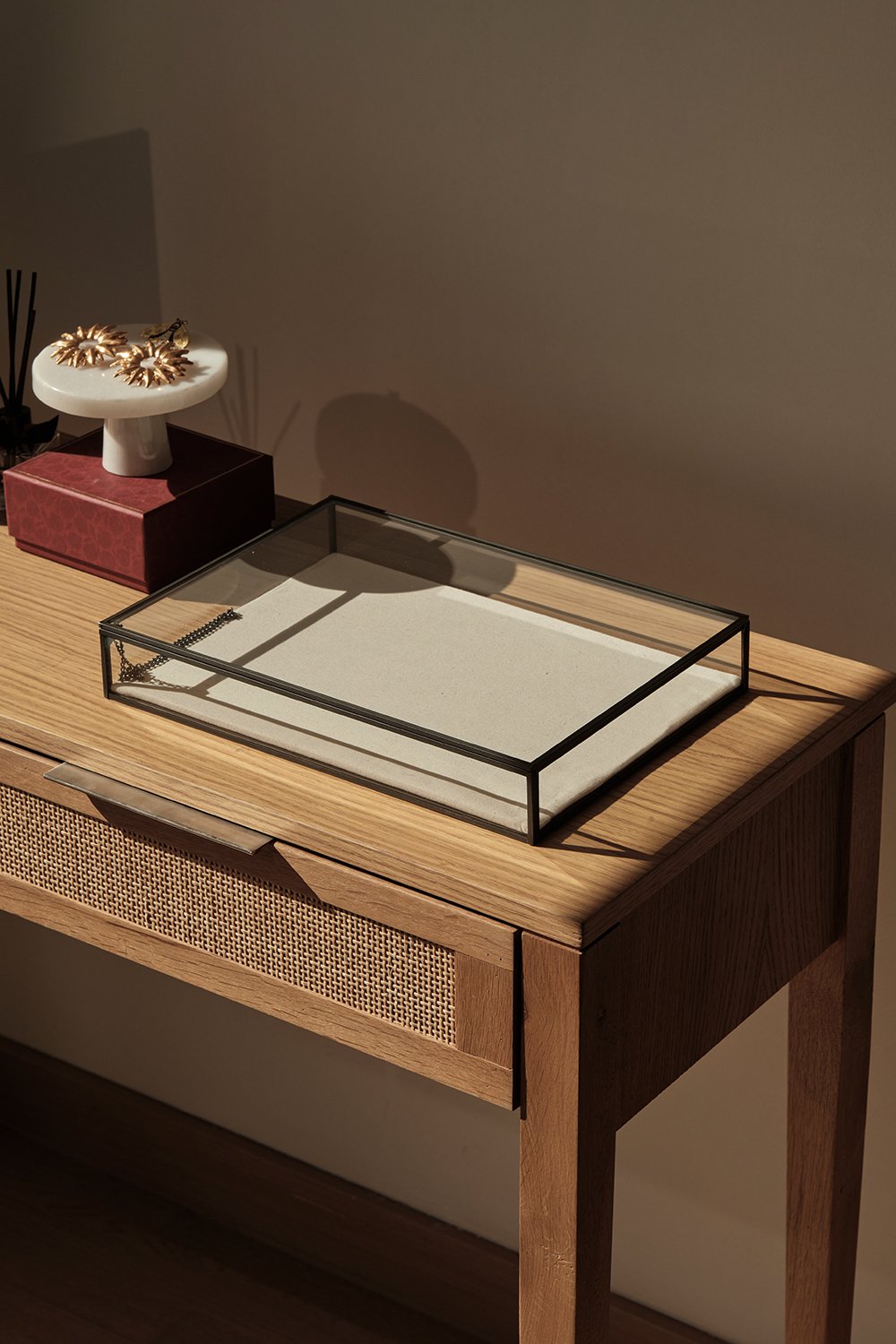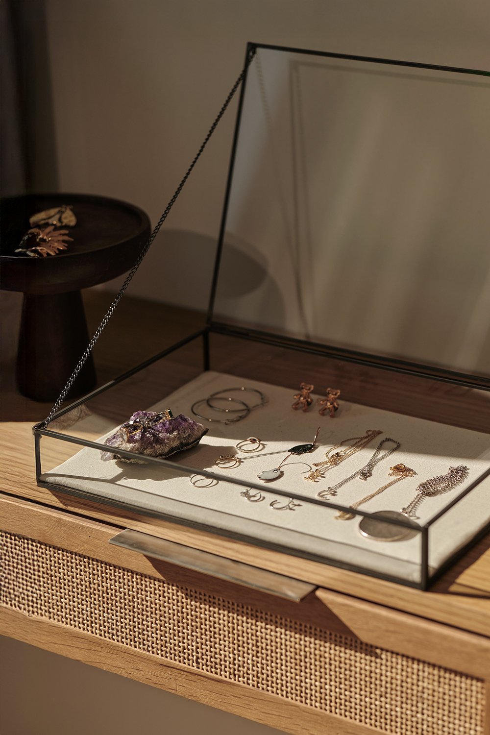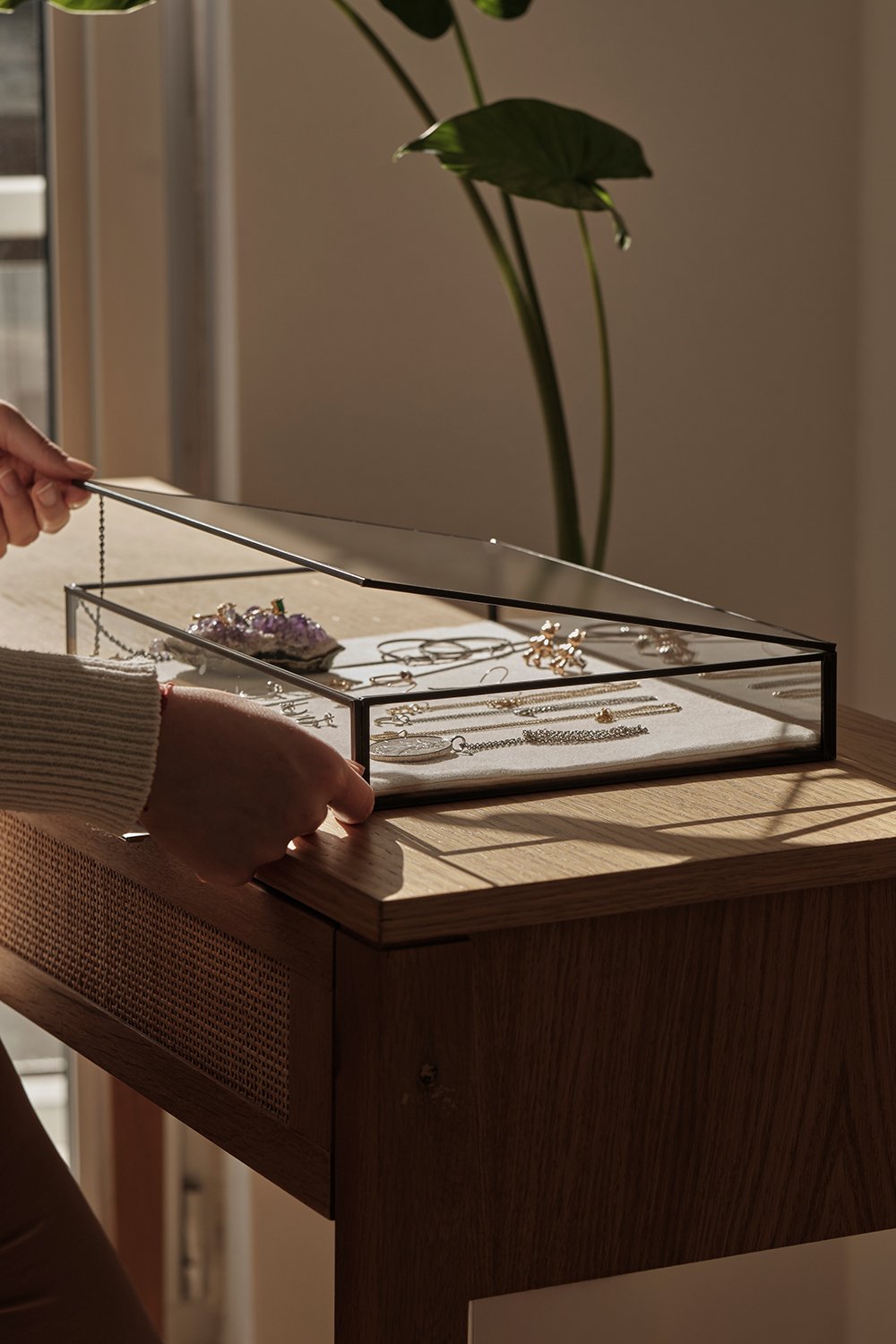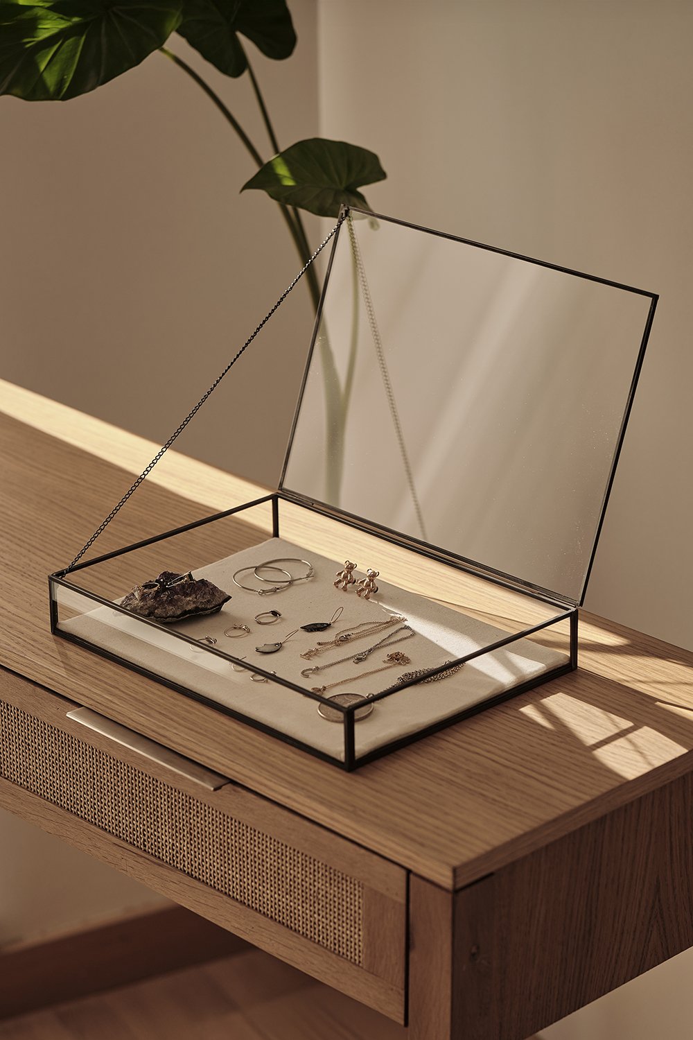 Cam Takı Ve Aksesuar Kutusu | Keten Tabanlı | Siyah | 35x25x5cm
