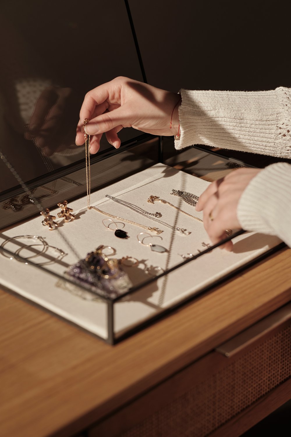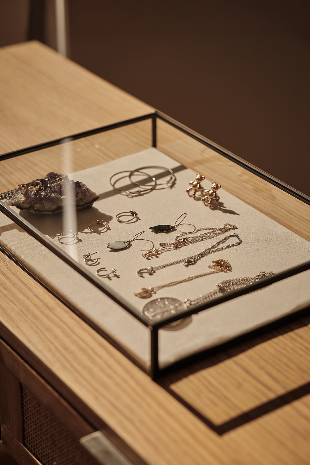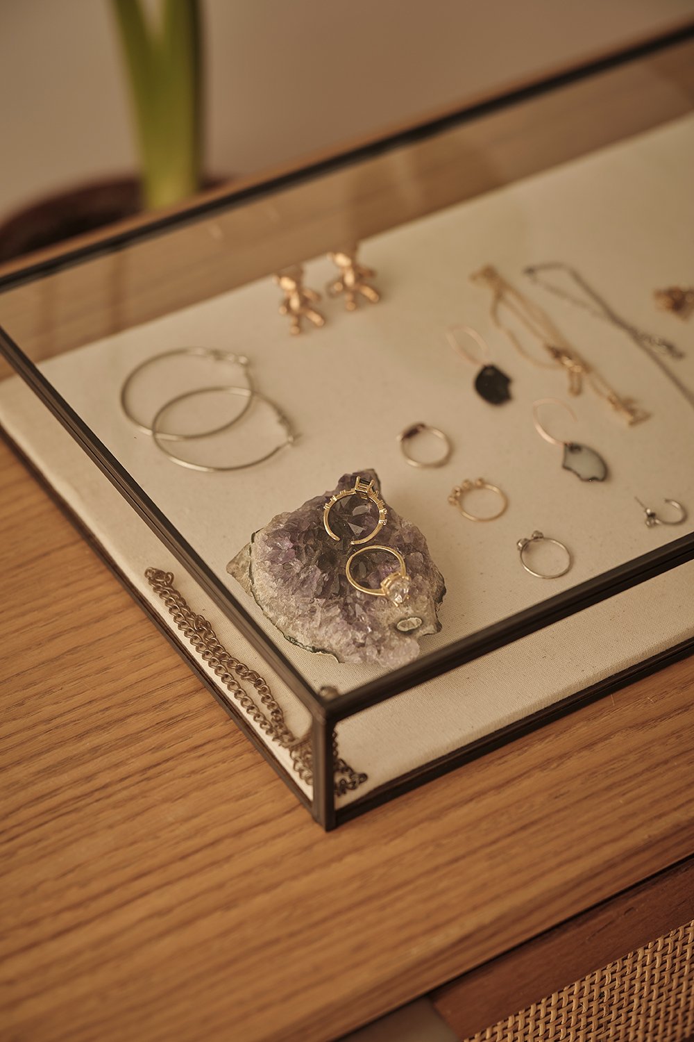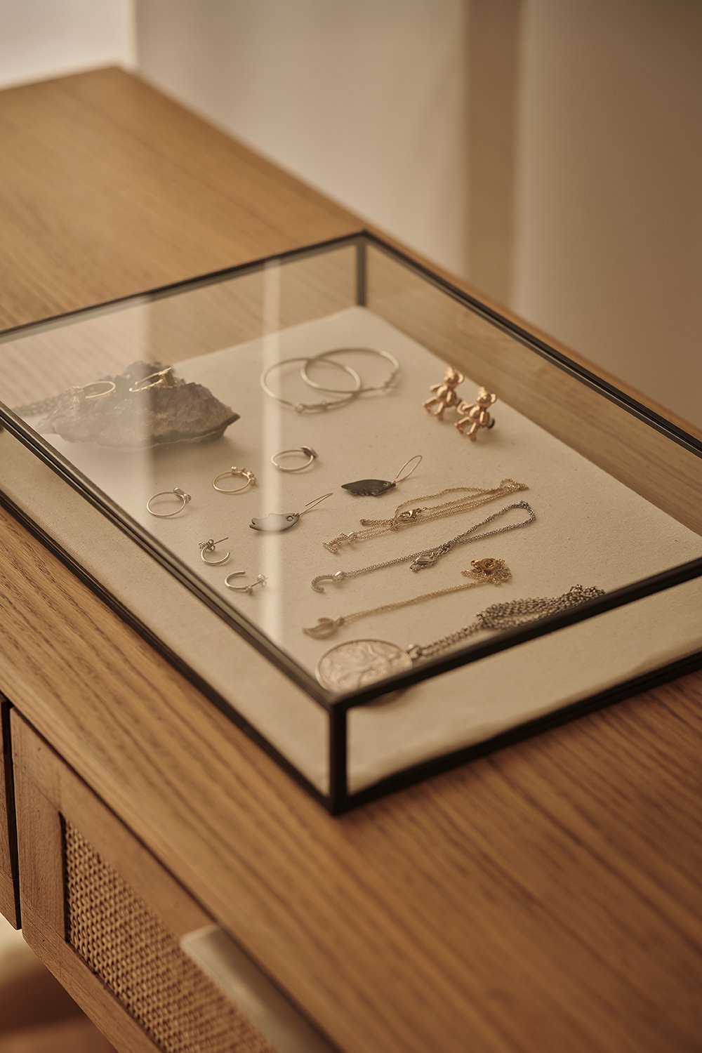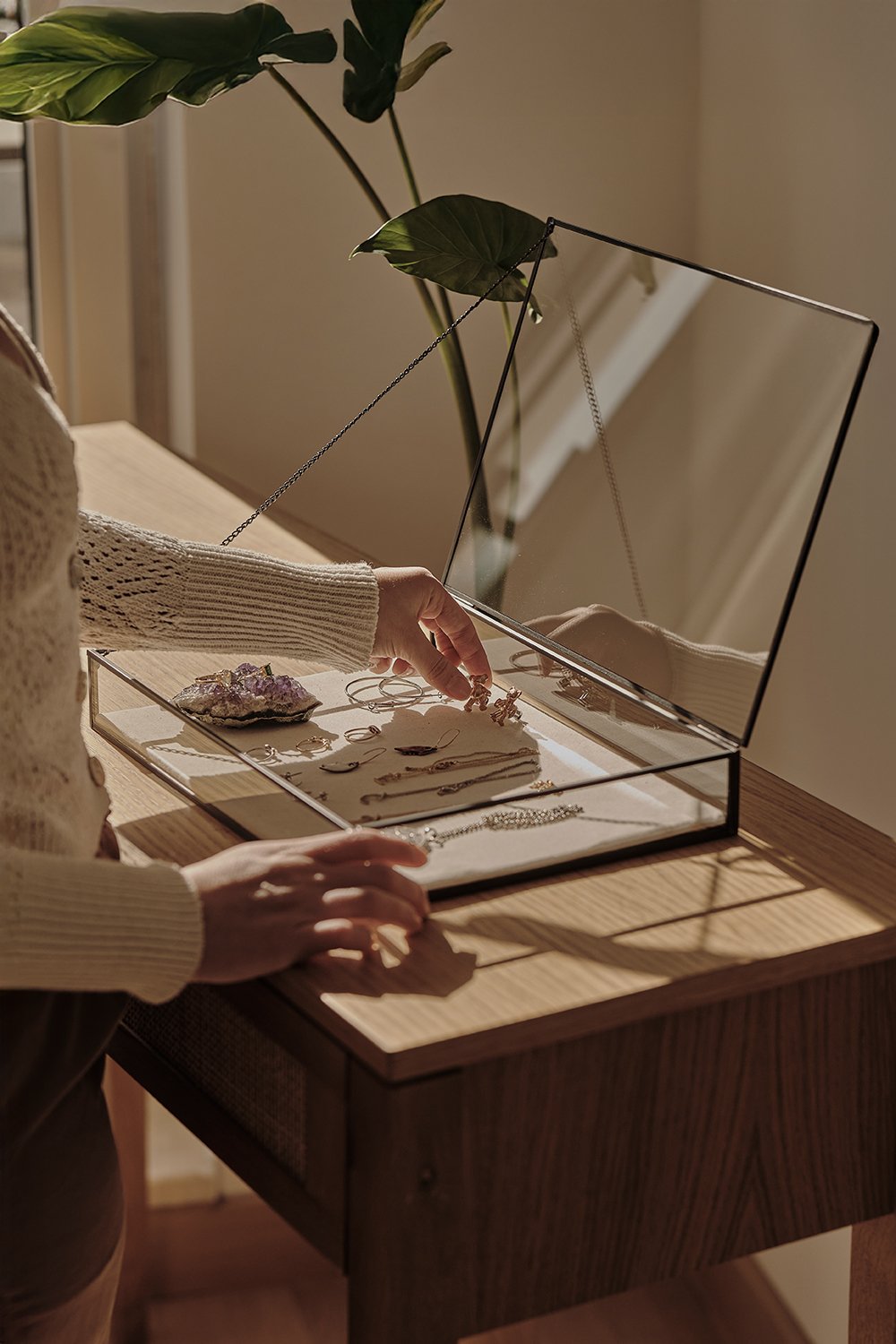 Cam Takı Ve Aksesuar Kutusu | Keten Tabanlı | Siyah | 35x25x5cm