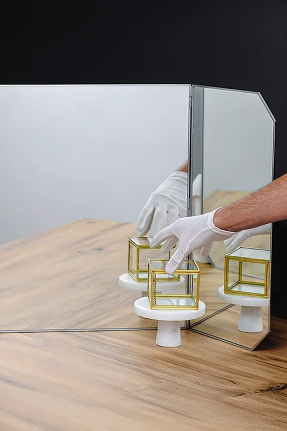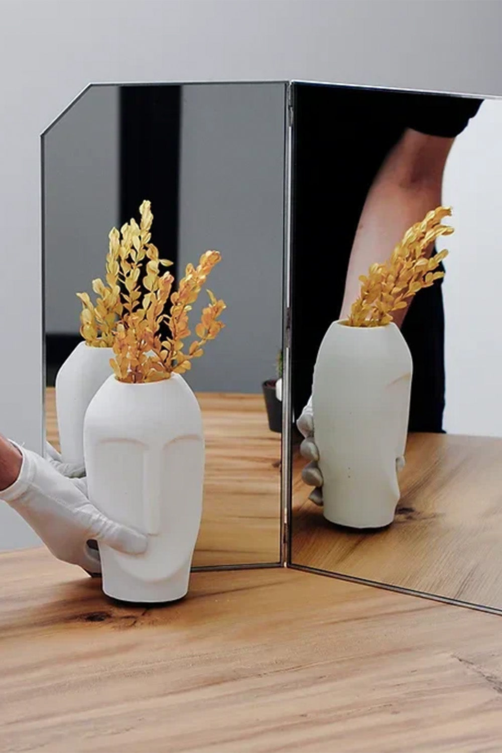 Makyaj Aynası | Masaüstü | Büyük | 100x45 Cm | Gümüş