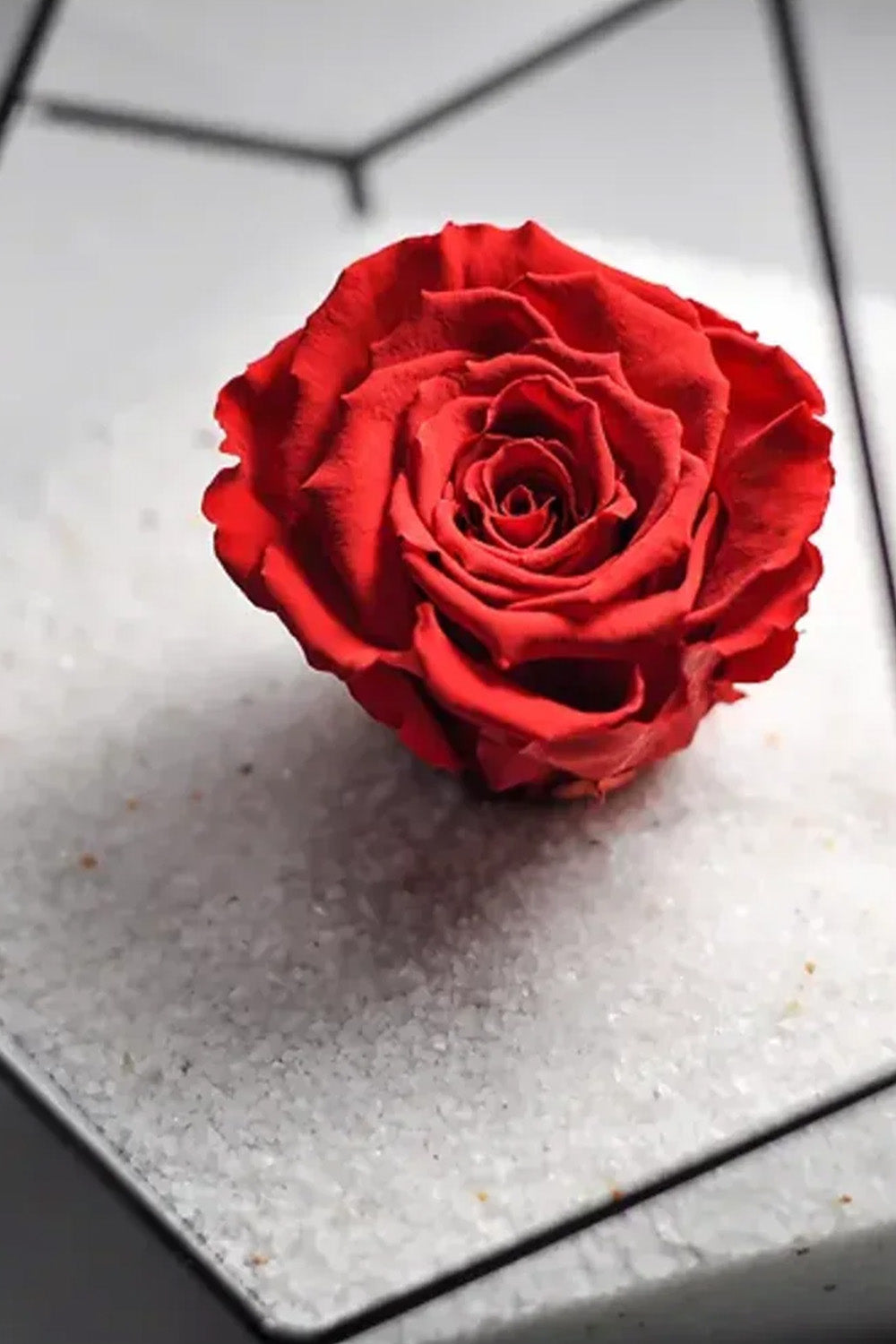 Geometrik teraryum fanus, 3 yıl boyunca aynı şekilde kalabilme özelliğine sahip solmayan kırmızı gül ve beyaz kum size ayrı ayrı paketlenerek teslim ediliyor. Fanusun içerisine kumu döktükten sonra solmayan gülü kumun içerisine yerleştirerek sunum yapabileceğiniz şekle getirebilirsiniz.