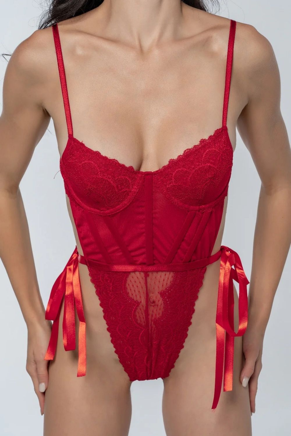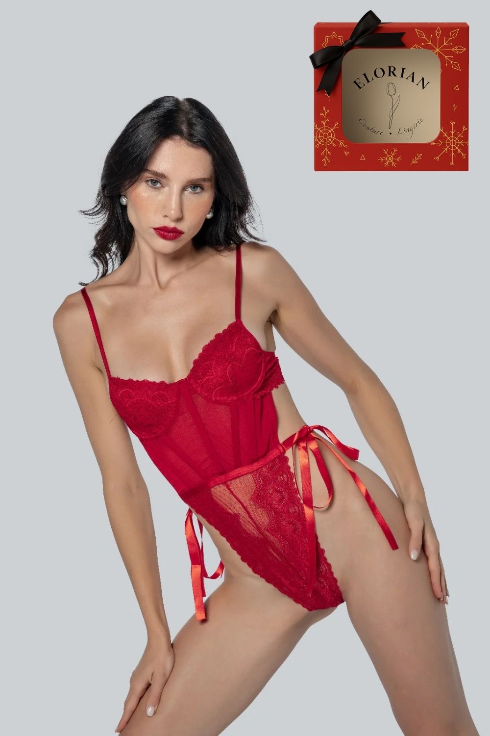 Christmas – Kırmızı Dantel Bağcıklı Bodysuit Yılbaşı Özel Koleksiyon