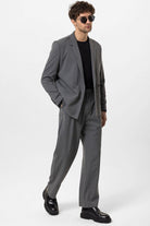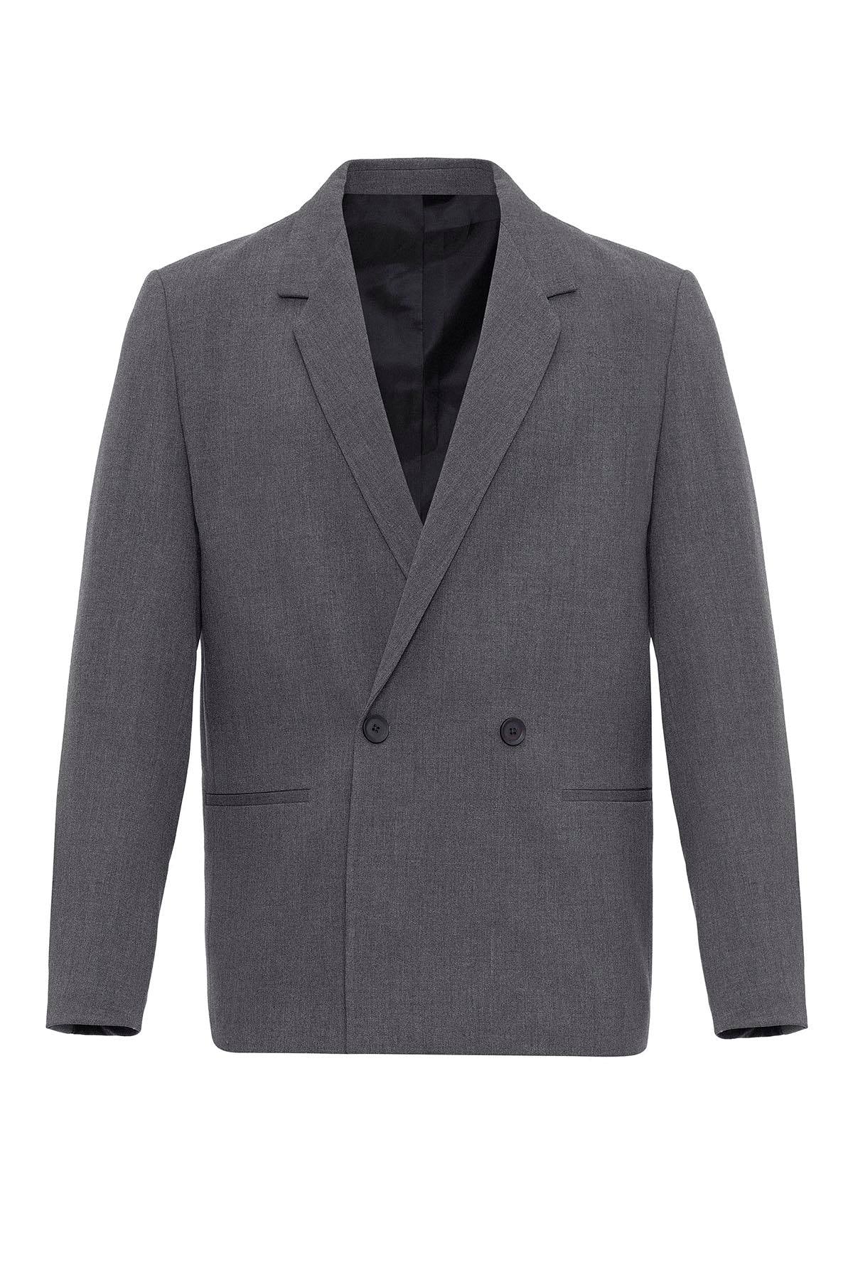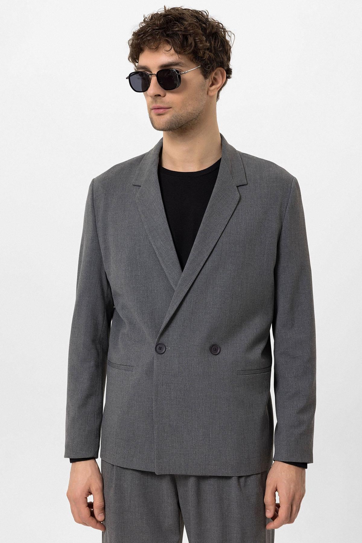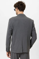 Gri Tek Düğme Kruvaze Kapama Erkek Blazer Ceket