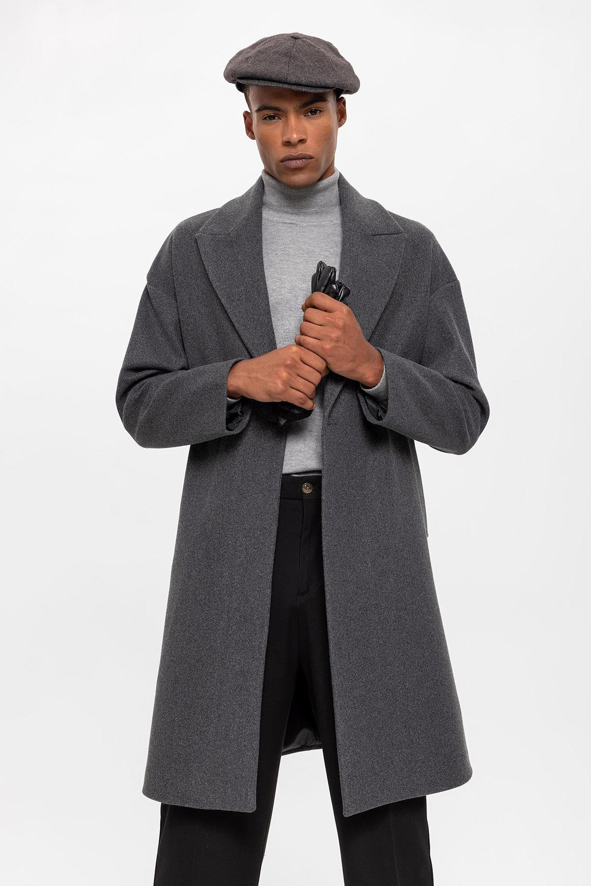 Antrasit Oversize Kruvaze Erkek Kaban