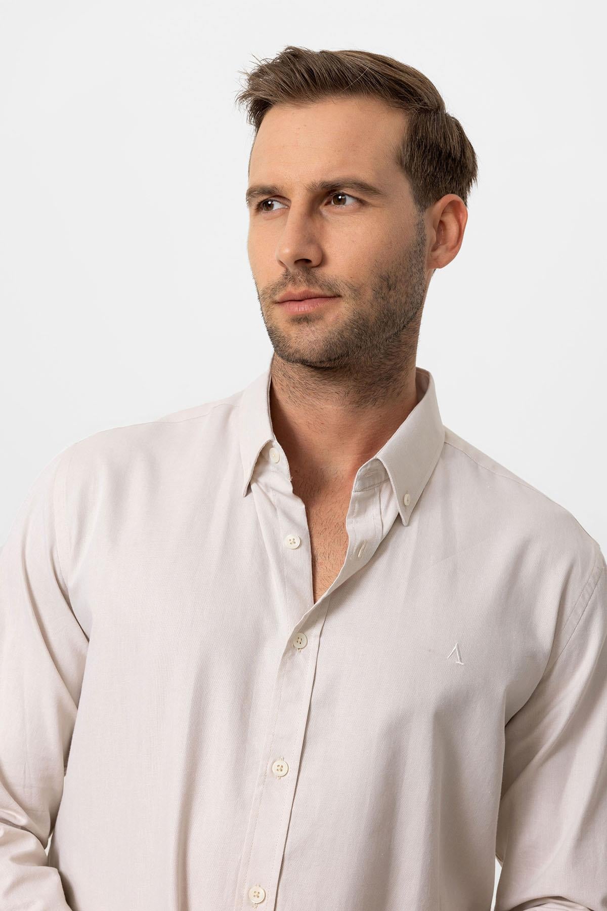 - Düğmeli Yaka Gömlek: Klasik görünümü tamamlayan yaka detayıyla hem resmi hem yarı resmi kombinlerde kullanılır.