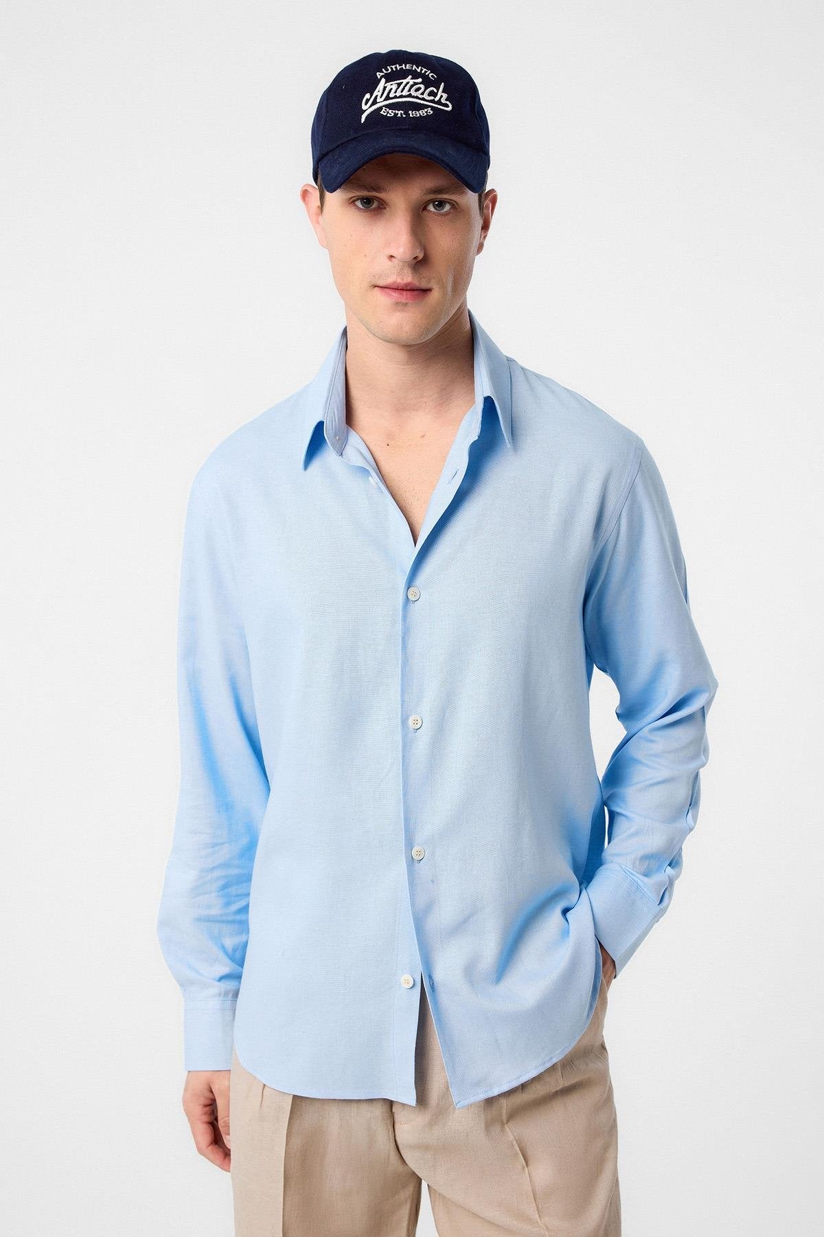 Mavi Relax Fit Keten Karışımlı Erkek Gömlek