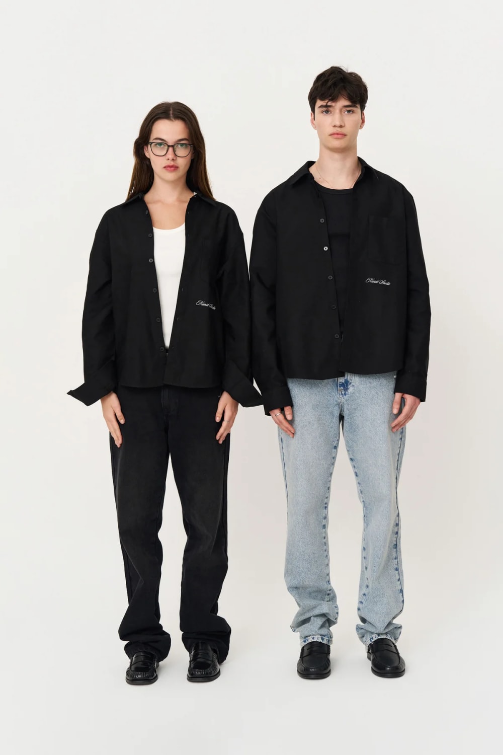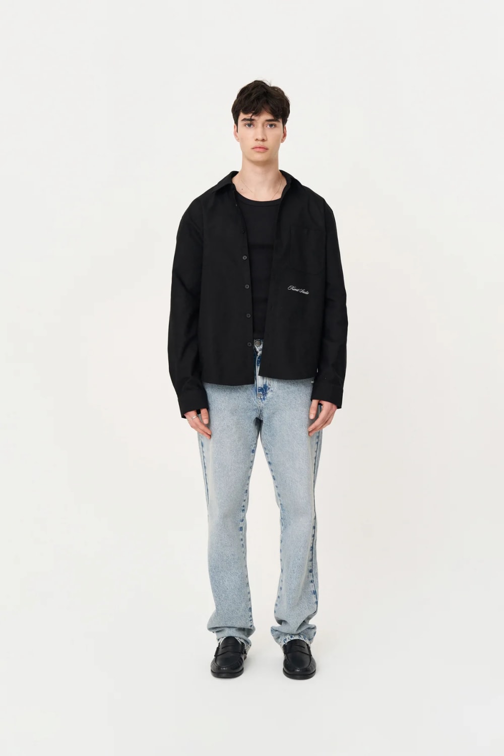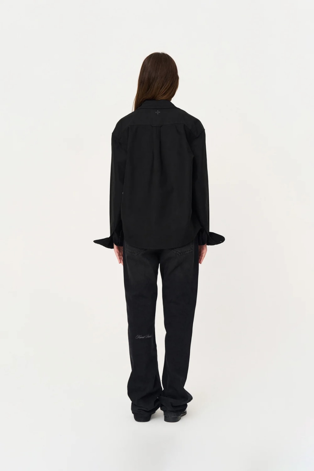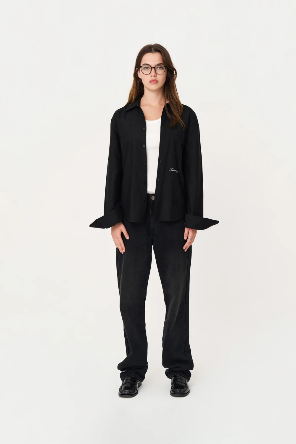 Box Fit Nakışlı Siyah Gömlek