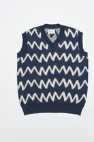 Far Afield Pinto Chaleco Punto Zig Cuello En V Patrón Zigzag Suéter De Punto Para Hombre Azul Marino