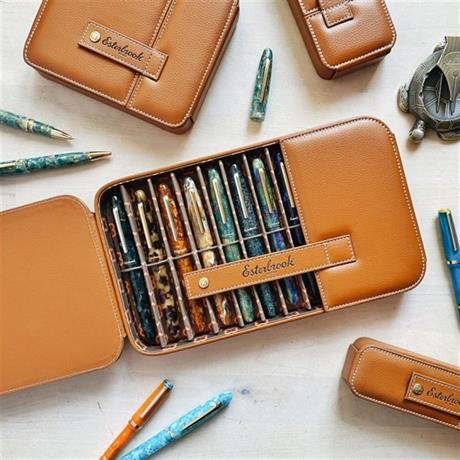 Bu yeni seri British Tan rengi ile klasik otomobillerin iç mekanınında esinlenilmiştir ve ofis, yolculuk veya pen showlar için mükemmel bir arkadaştır. Kalemleriniz için bir harika bir taşıyıcıdır.Kontrast beyaz dikiş, altın renkli donanım, Esterbrook Eternity logolu çıtçıt ile birleşmiş ve iç kısmı kahverengi ve turuncu Esterbrook Eternity sembolüyle kaplıdır. Her bir çanta, bireysel, yastıklı bölümlere yerleştirilmiş ve güvenlik için elastik ile sabitlenmiş koleksiyonunuzu ortaya çıkarmak için kolayca kapanan ve açılan bir kapağa sahiptir.İki, üç, altı veya on iki kalem için bir British Tan Nook vardır.