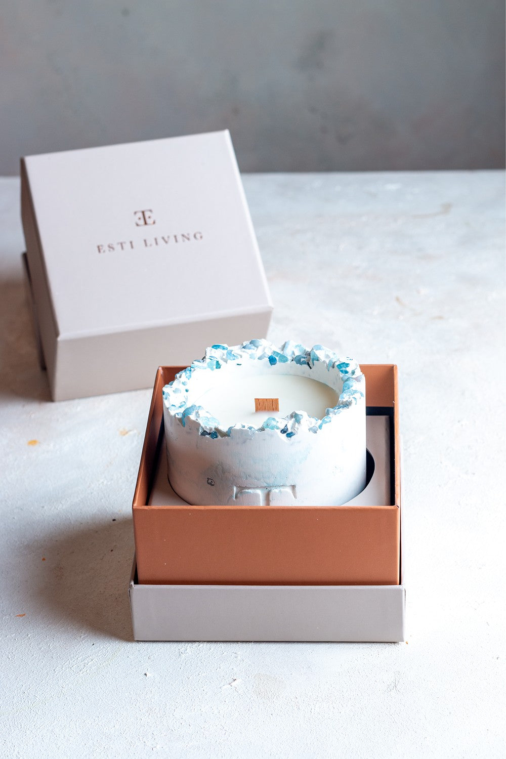 İçinde akuamarin taşı bulunan Ocean Wave sadece bir mum değil; bir mücevher, ince işçiliğin sembolü ve huzurun sembolüdür.