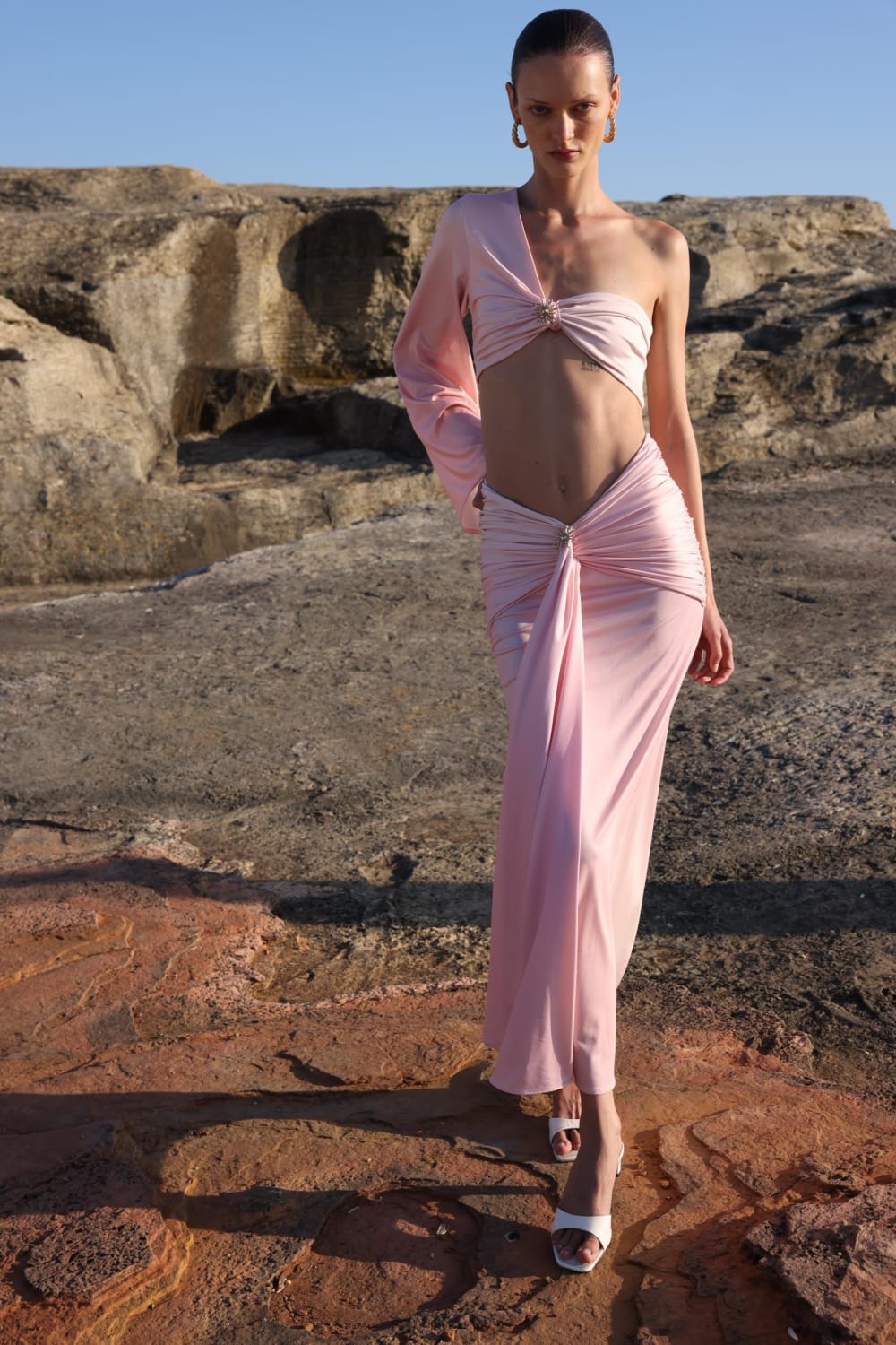 Likralı Önü Aksesuarlı Renk Geçişli Drapeli Etek