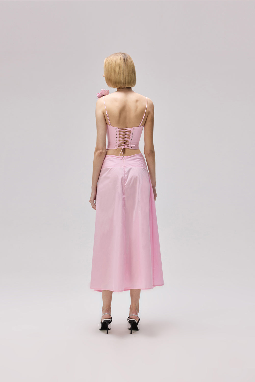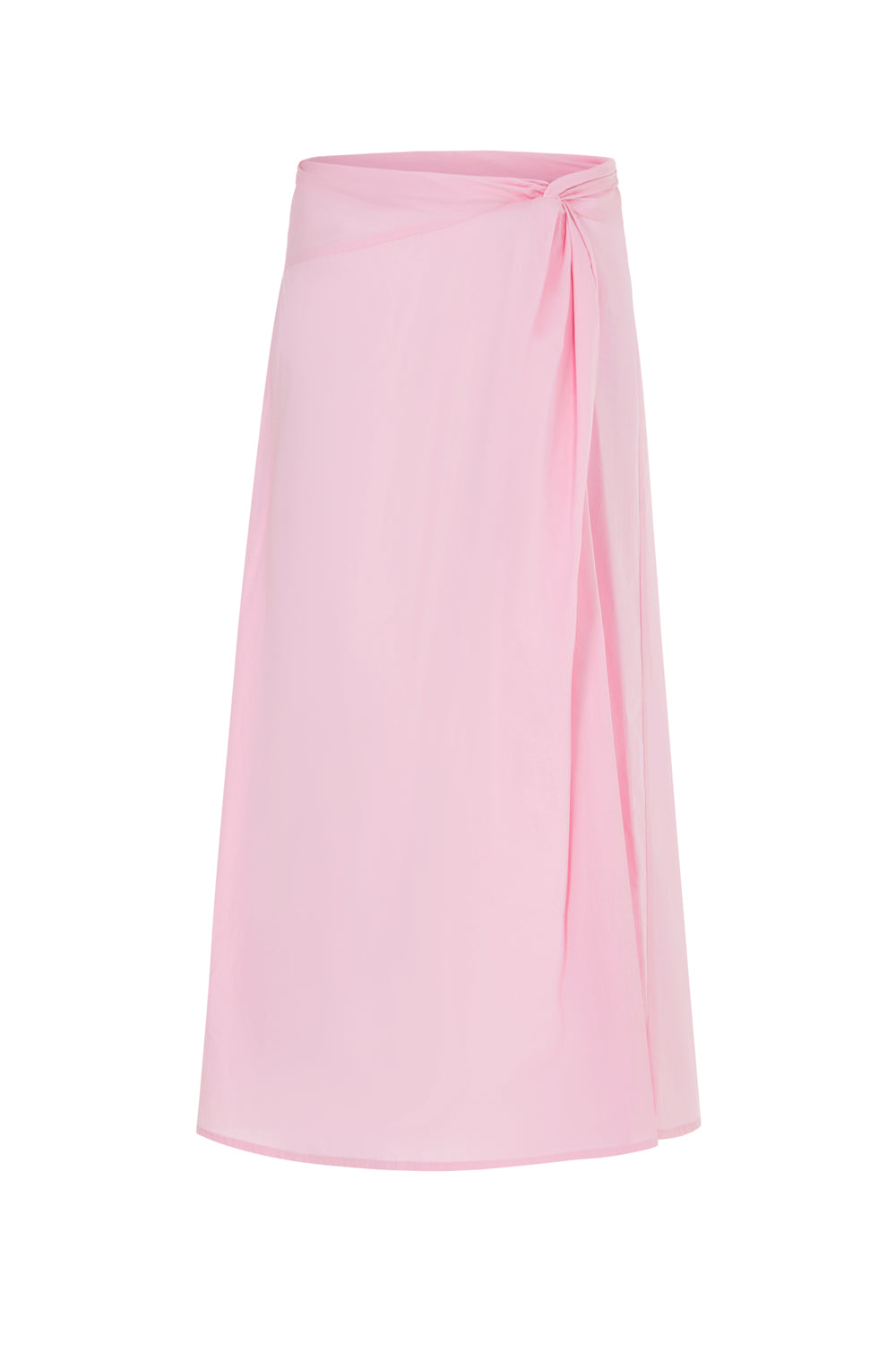 %100 pamuk poplin kumaştan üretilmiş bu uzun etek, beli düğüm detayıyla şık ve modern bir görünüm sunar. Astarsız tasarımıyla hafif ve rahat bir kullanım sağlar; gündüzden geceye kolayca kombinlenebilir.