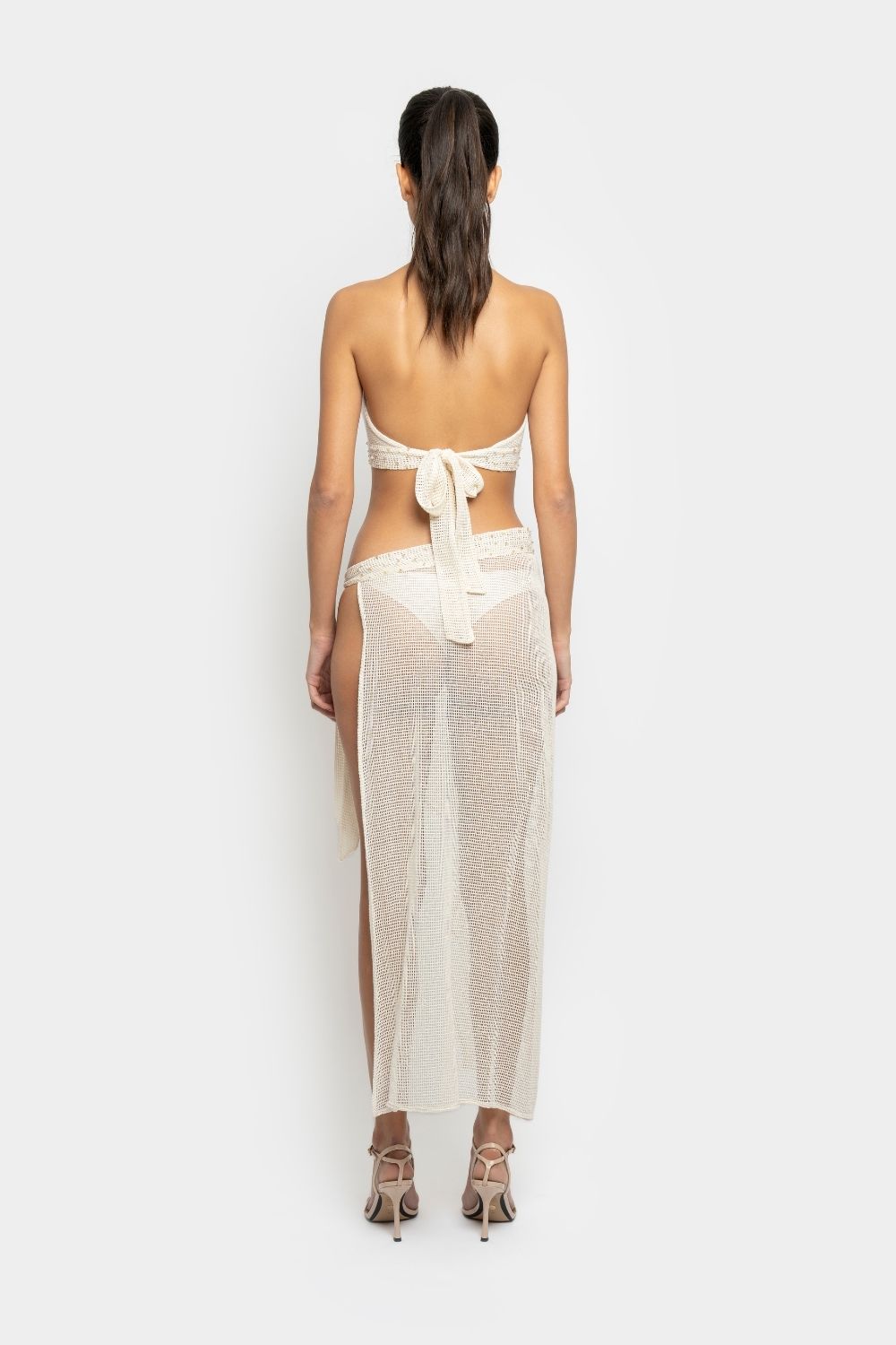 Bu göz alıcı pareo etek, doğal örme (file) dokusuyla plaj modasına yeni bir soluk getiriyor.