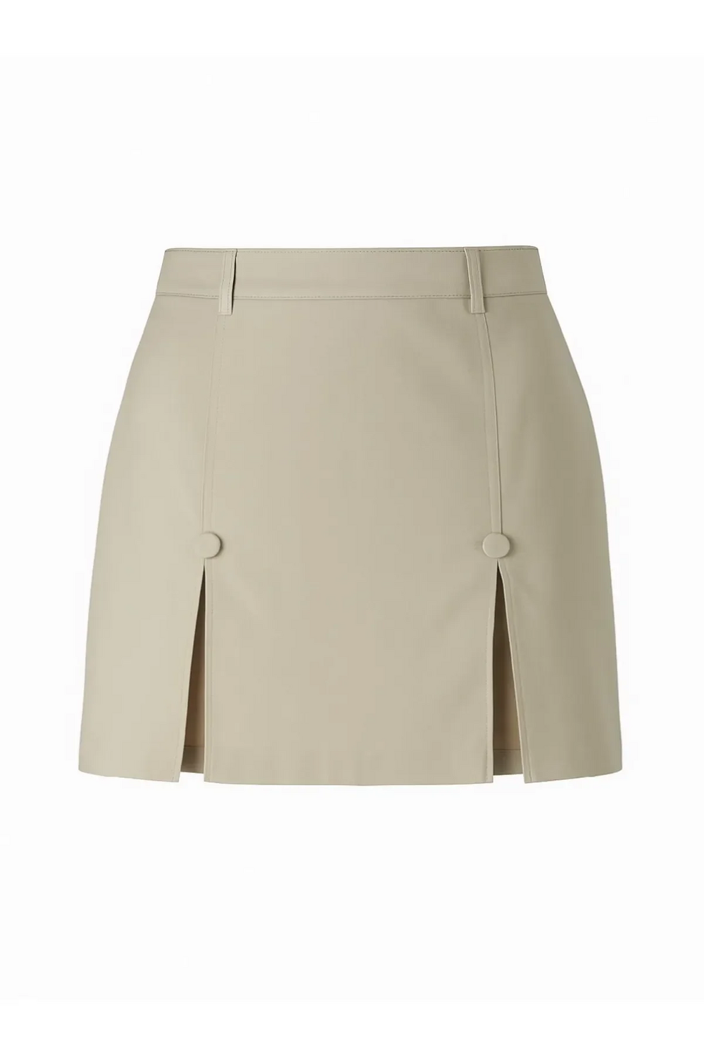 Çift Yırtmaçlı Yüksek Bel Bej Mini Etek