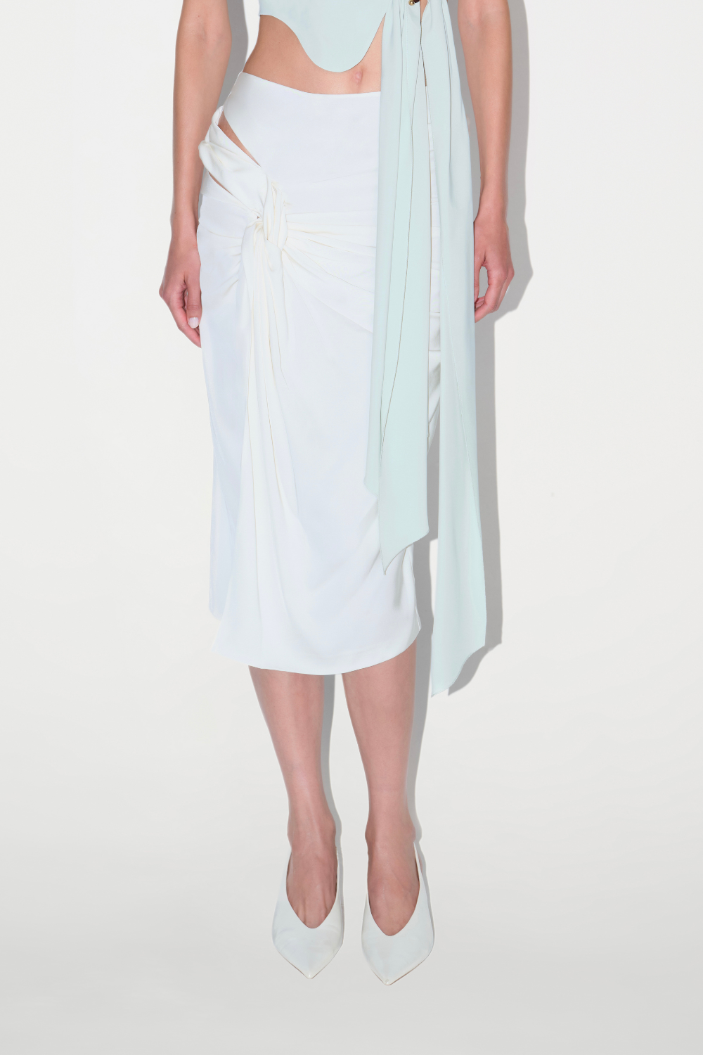 Jackie Etek, gül hissi veren sarmal detayları ve zarif kesikleriyle şıklık sunan midi boy bir etek.