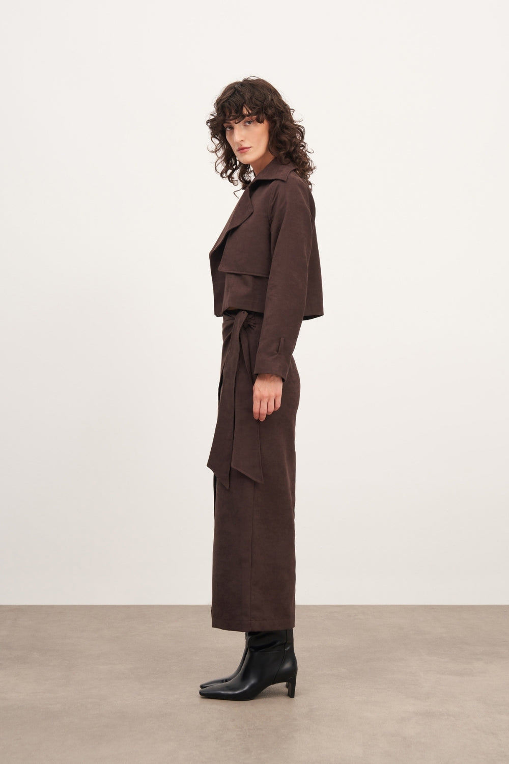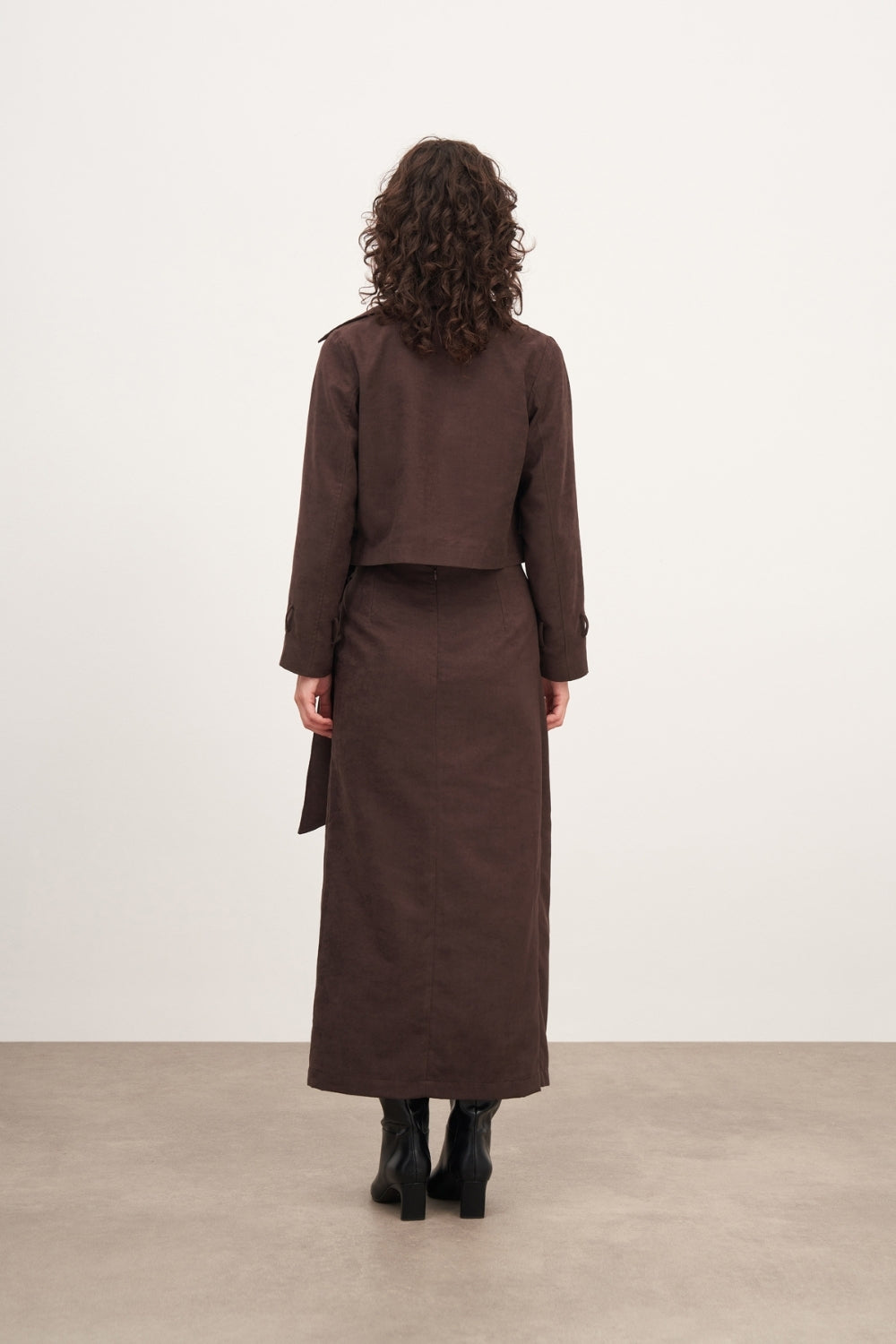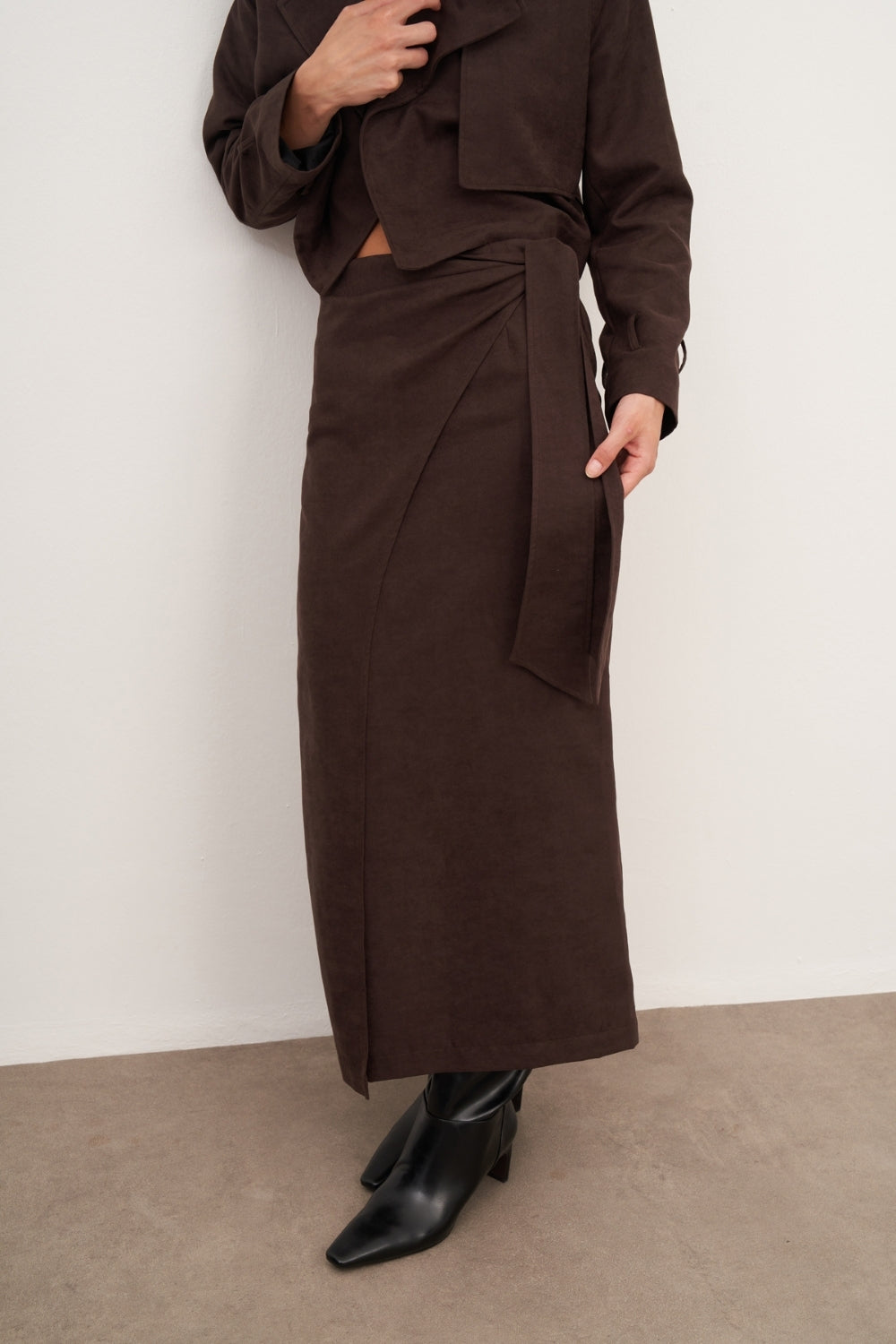WINGCOTT Acı Kahve Süet Bağlama Detaylı Uzun Etek